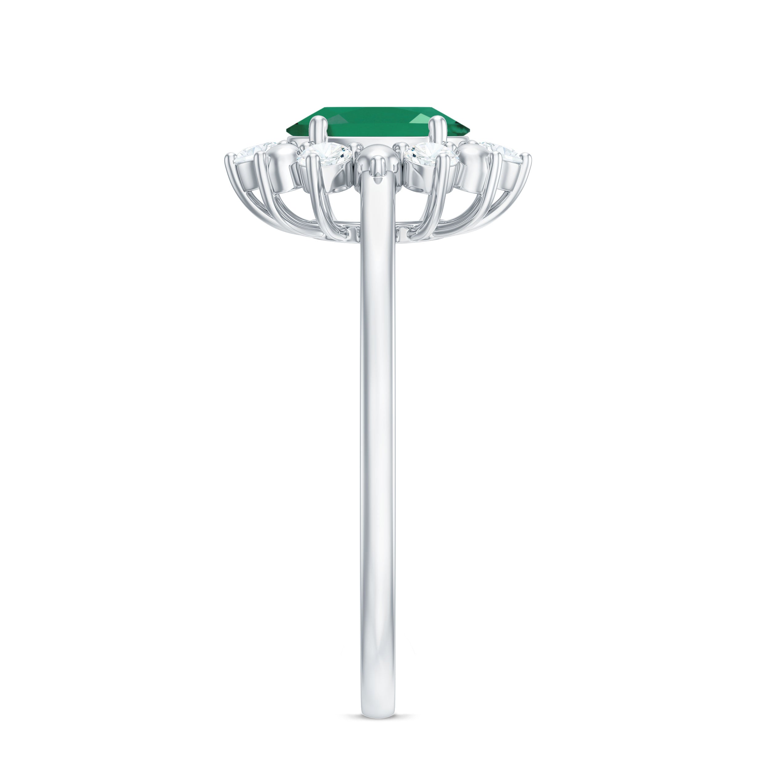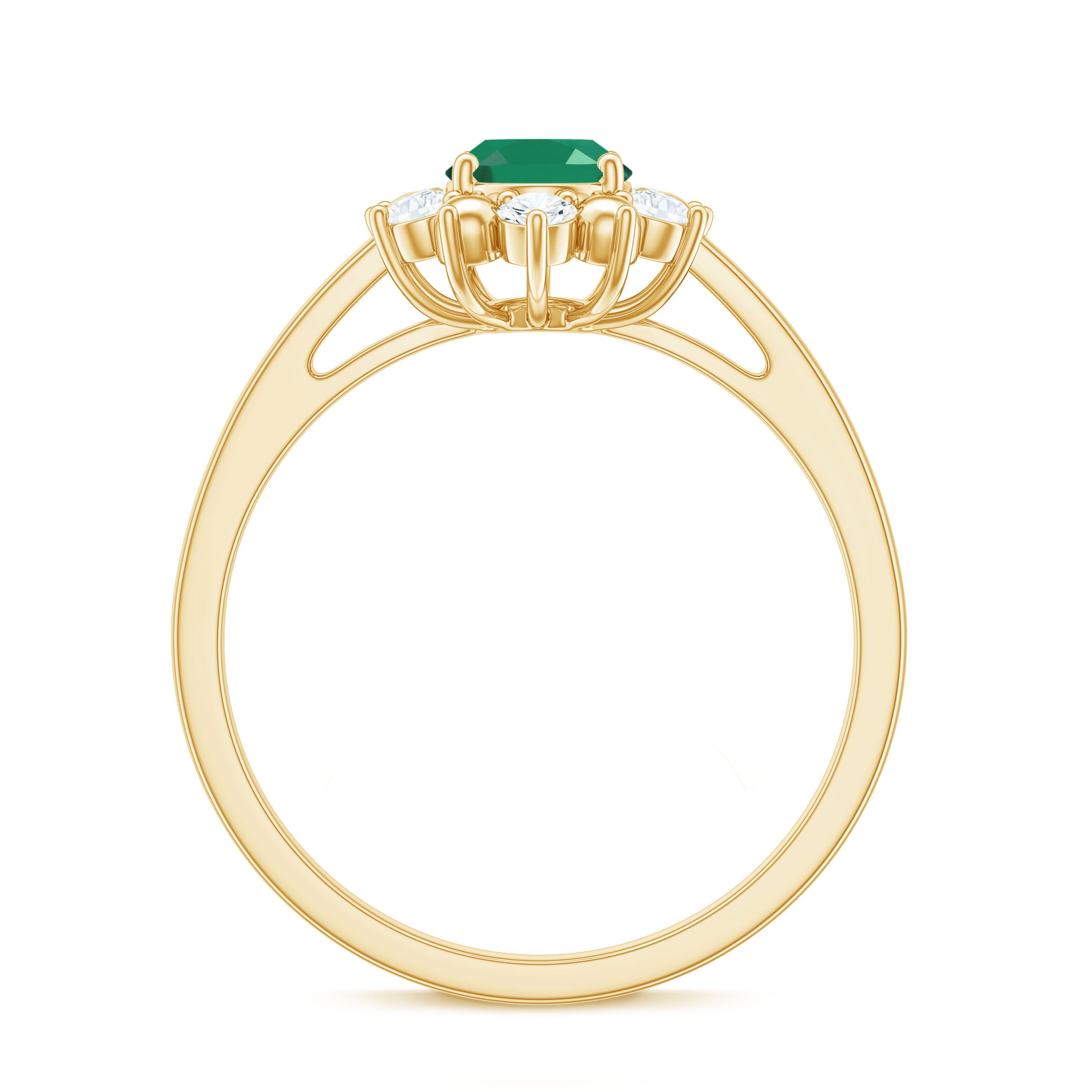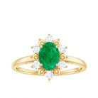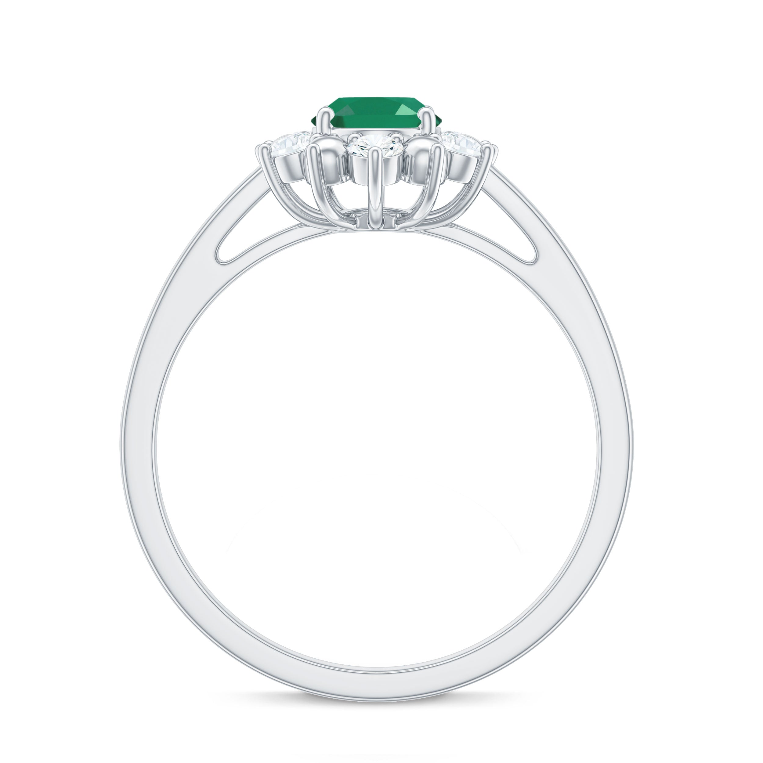 Natural 5X7mm Oval Emerald Engagement Ring with Diamond Halo