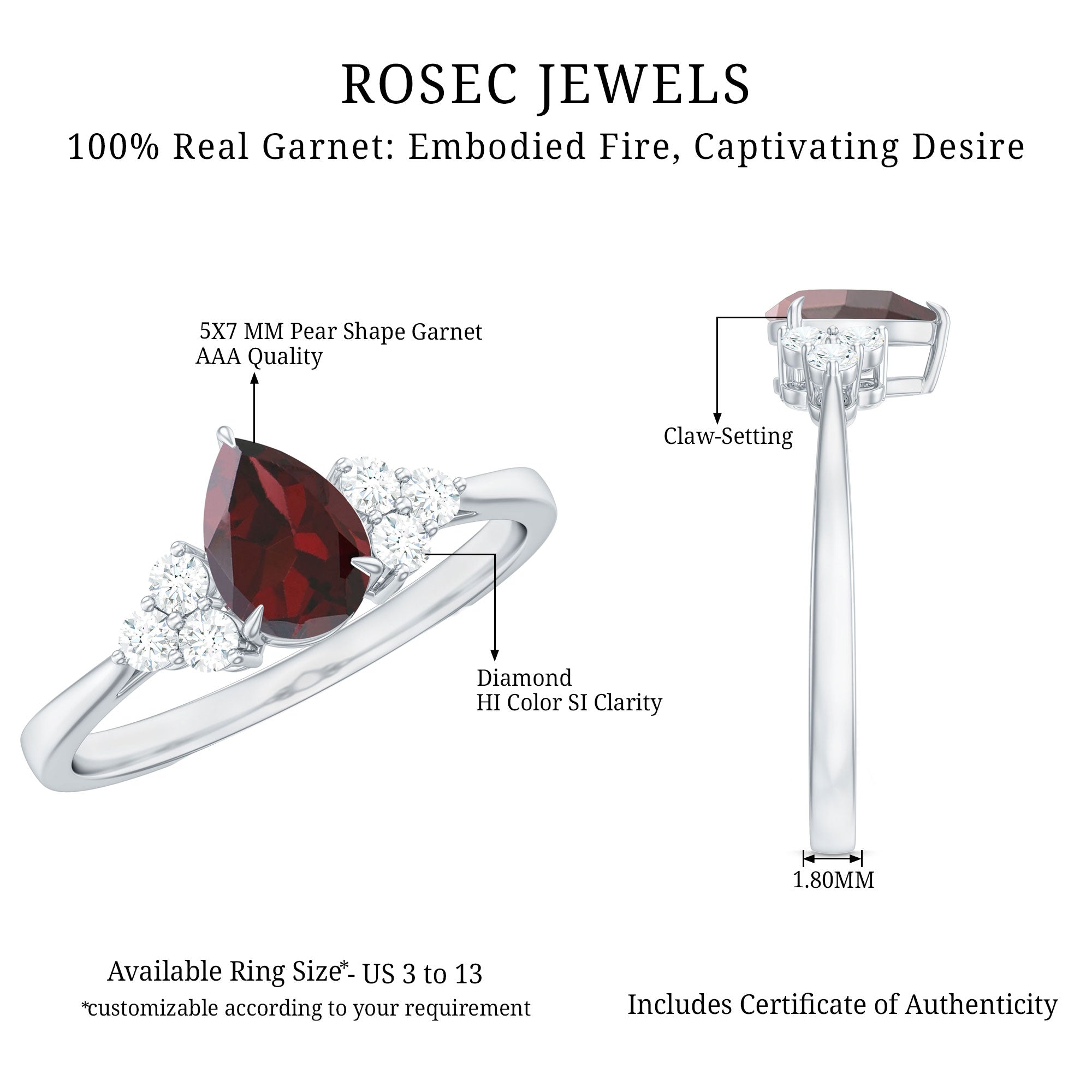 Natural 5X7mm Pear Shape Garnet Engagement Ring with Diamond