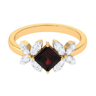 Natural 6mm Garnet Princess Cut Engagement Ring with Diamond Flower