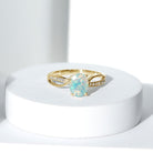 Natural 6X8 mm Oval Opalescent Diamond Engagement Ring with Split Shank