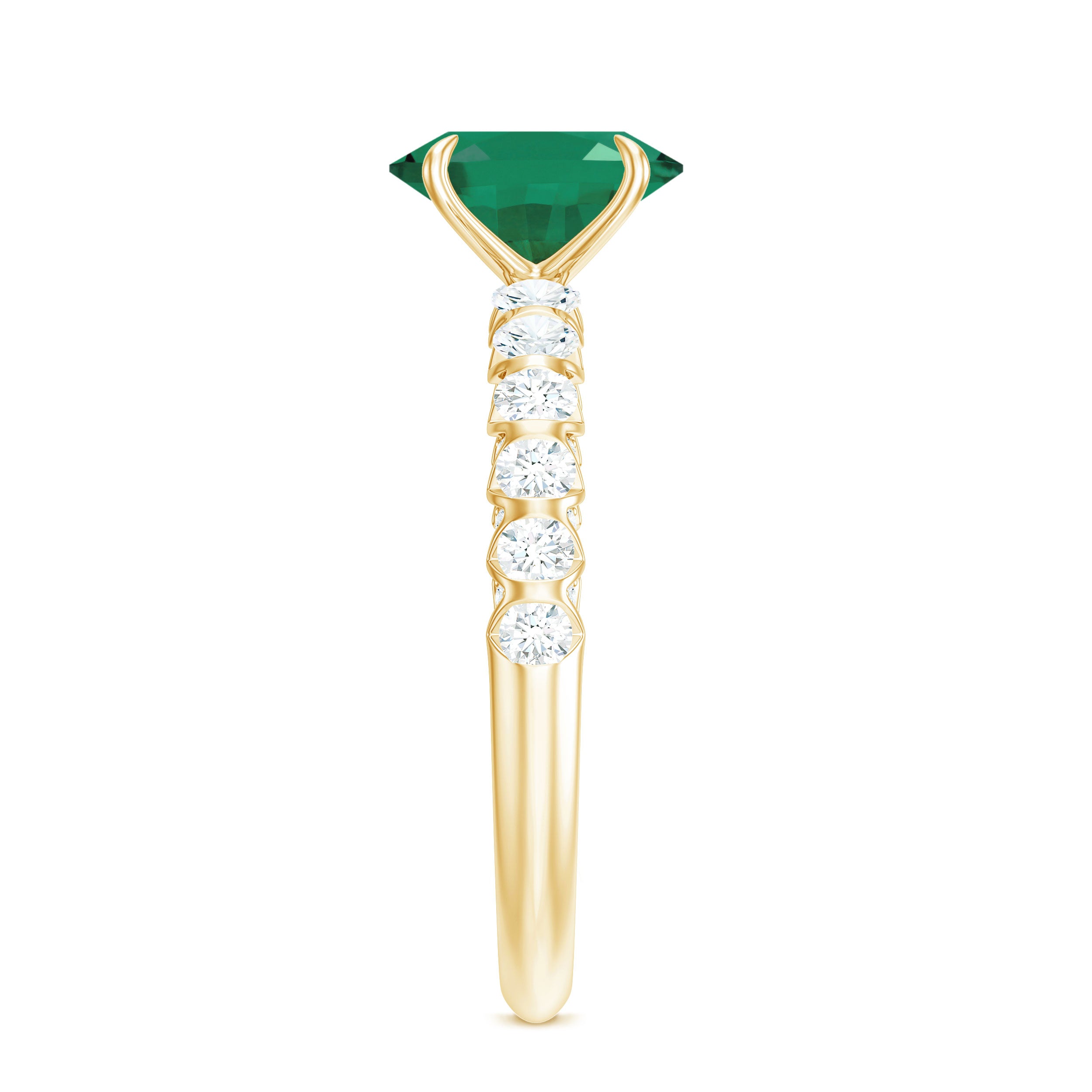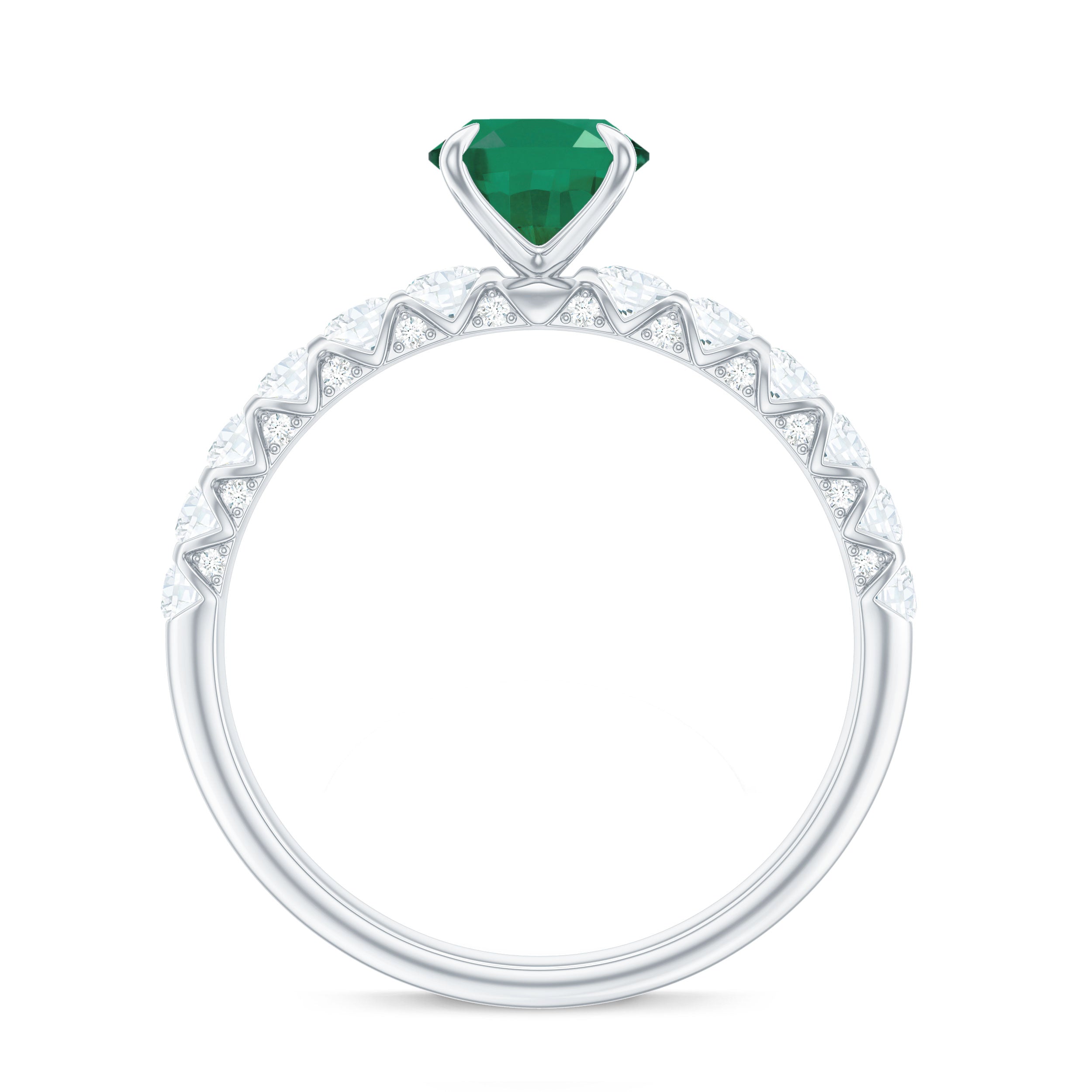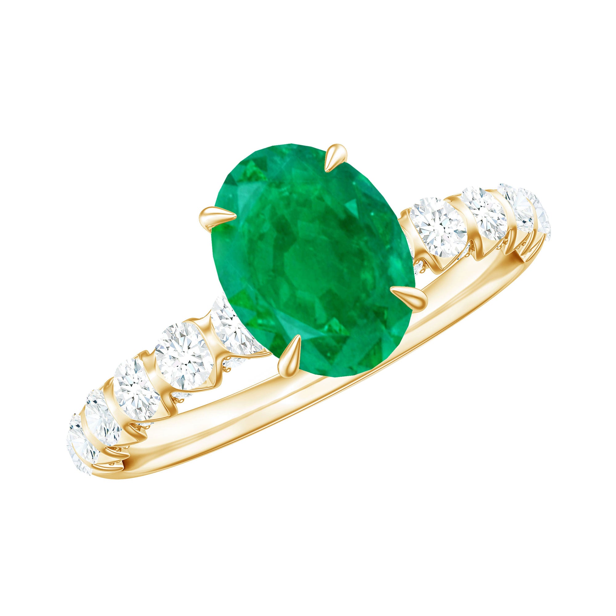 Natural 6X8mm Emerald Oval Engagement Ring with Diamond Side Stones