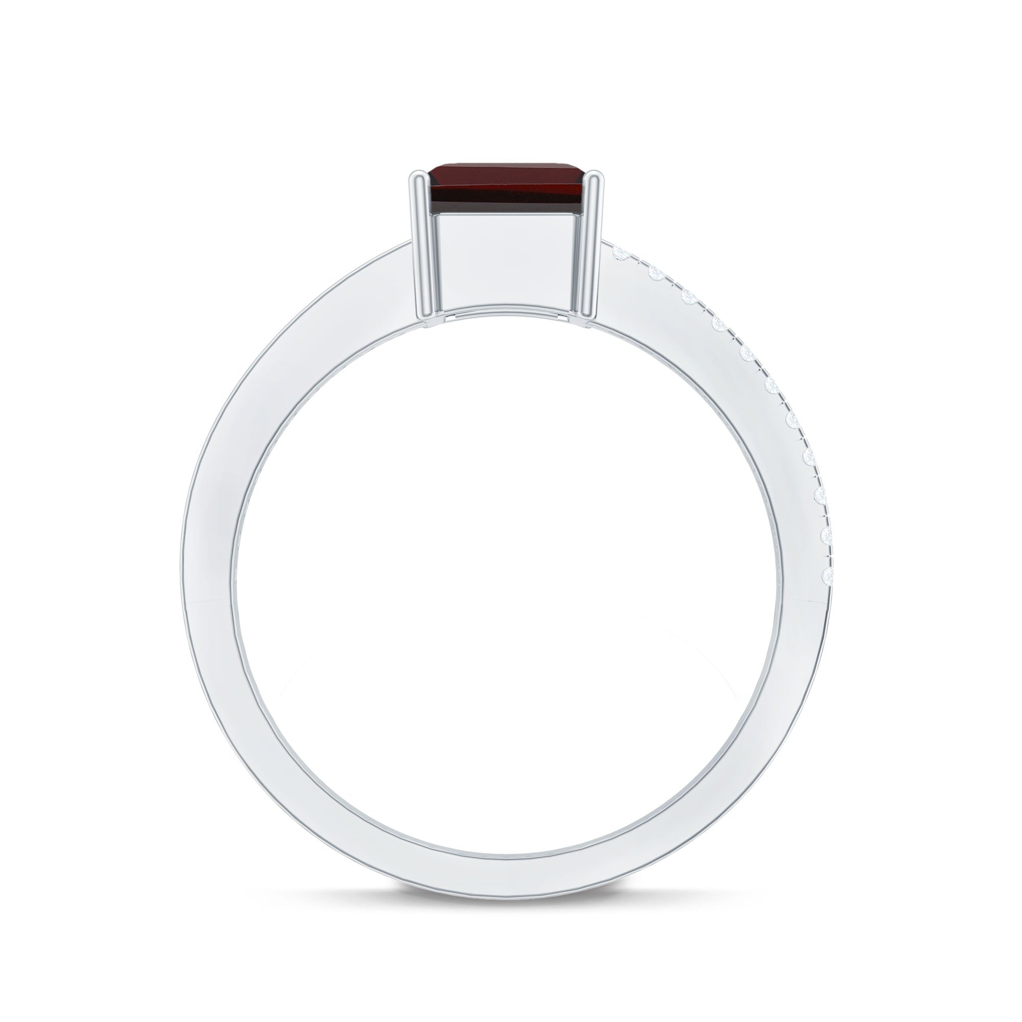 Natural 6X8mm Garnet Emerald Cut Engagement Ring with Diamond