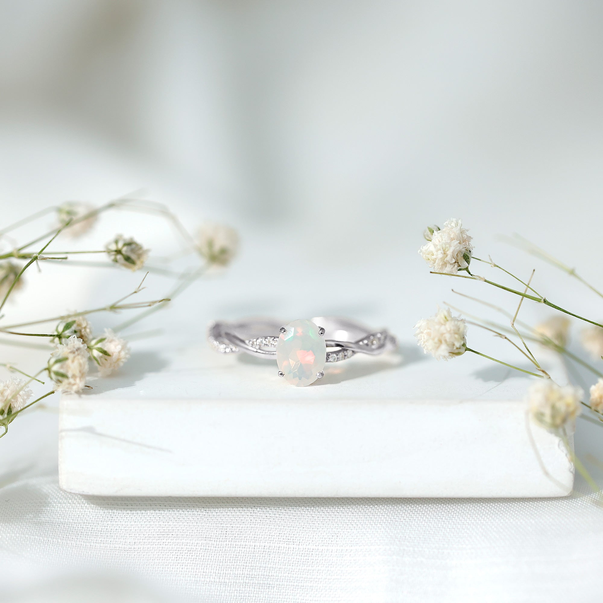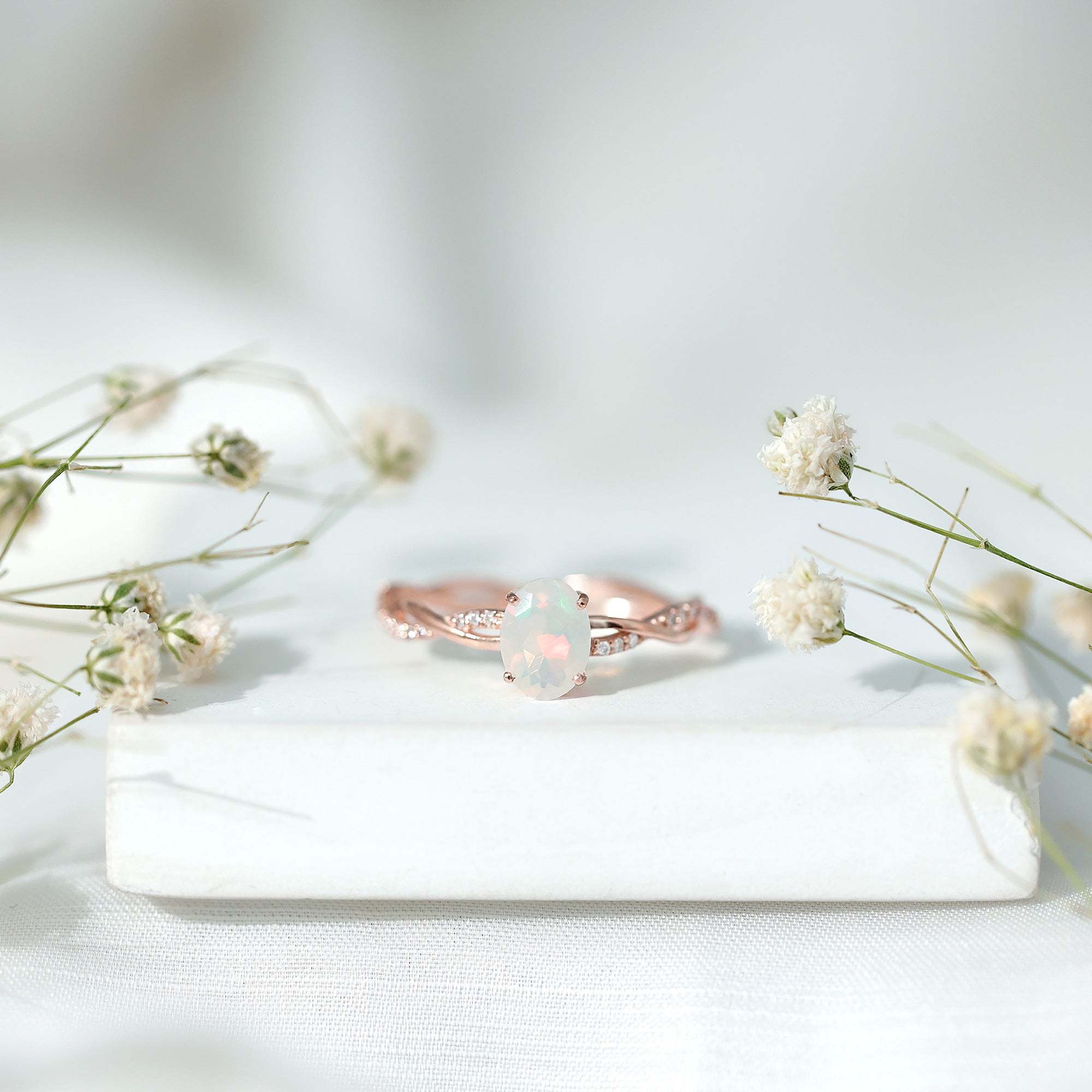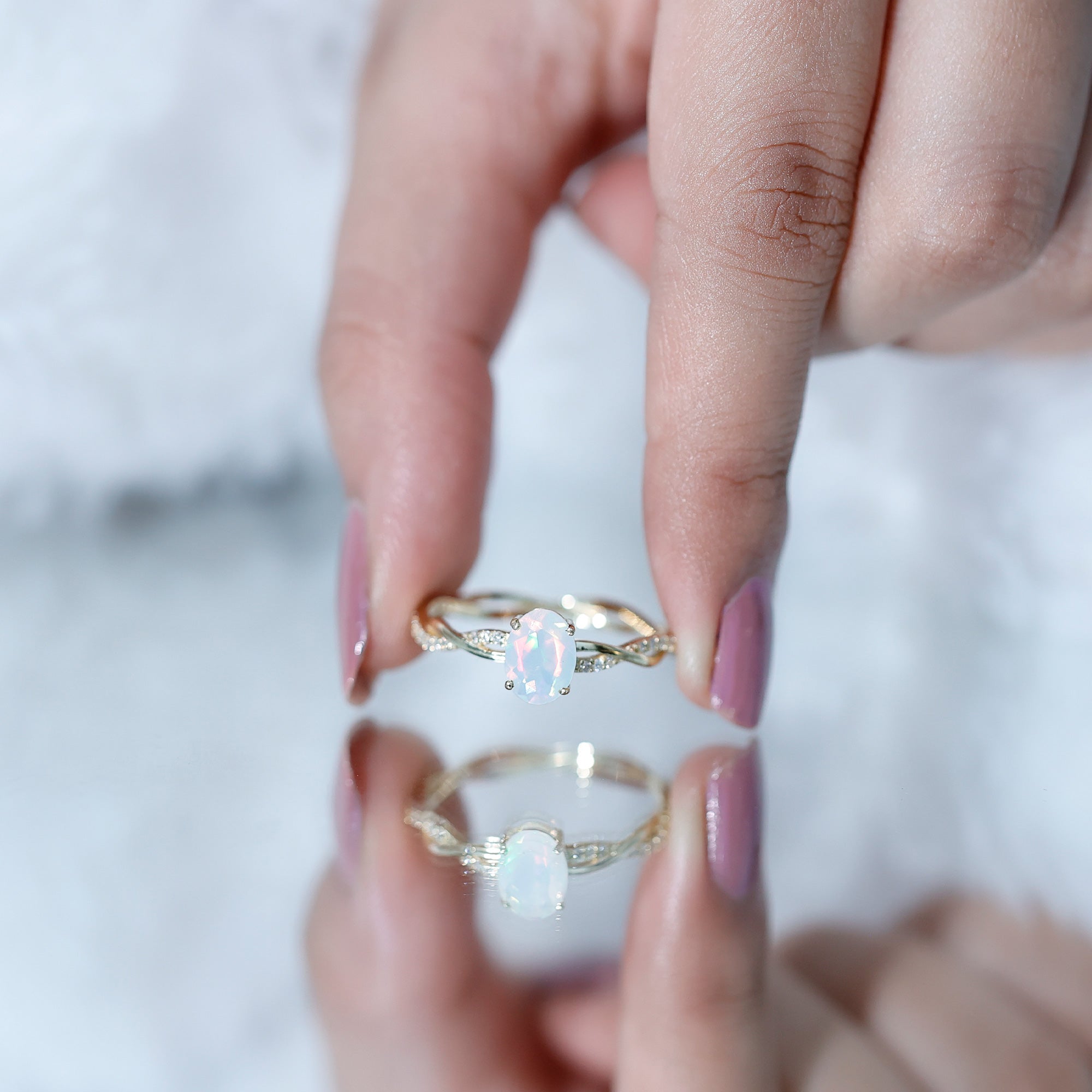 Let your love story shimmer with something truly extraordinary. This Ethiopian Opal Engagement Ring is where timeless romance meets beauty. At the center of this Solitaire Engagement Ring is a luminous 6X8 mm Oval Shape Ethiopian Opal set in Prong Setting, glowing with ethereal flashes of color that shift from soft pastels to fiery brilliance depending on the light, a perfect symbol of a love that is always evolving, yet forever constant. Framing this dreamy gem is a Diamond studded Braided Band, intertwining like two lives woven together in harmony. The braided detail adds a romantic, handcrafted feel while the dazzling Diamond stones bring just the right touch of sparkle to elevate every moment. Whether you are proposing or celebrating a forever bond, this Oval Engagement Ring makes a statement that is both elegant and personal. Thoughtfully packaged in a beautiful jewelry box and available in multiple ring sizes, this Opal Diamond Engagement Ring is ready to become an unforgettable part of your journey. Ideal for anyone drawn to the mystical charm of opal, this Braided Engagement Ring is a promise and a lifetime of love wrapped into one unforgettable design.