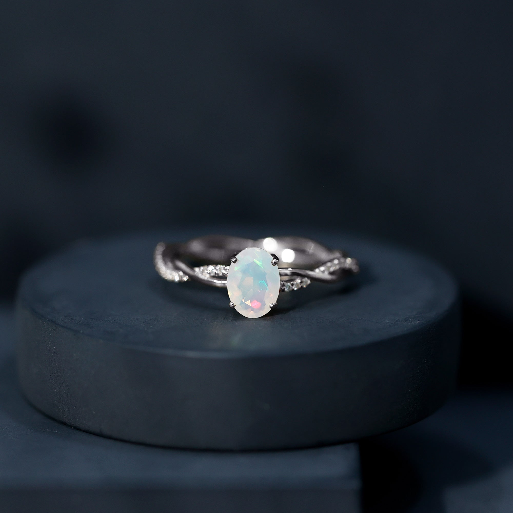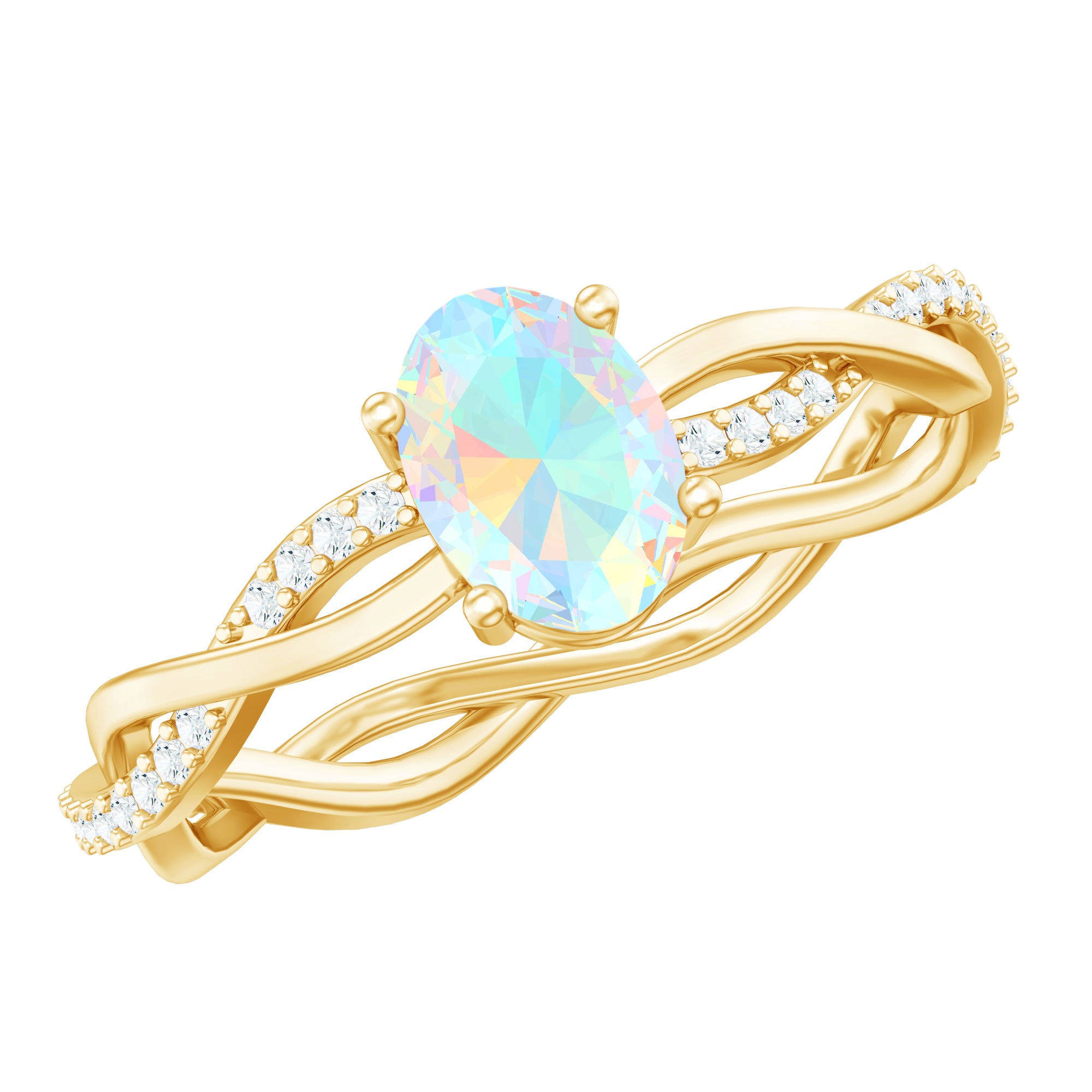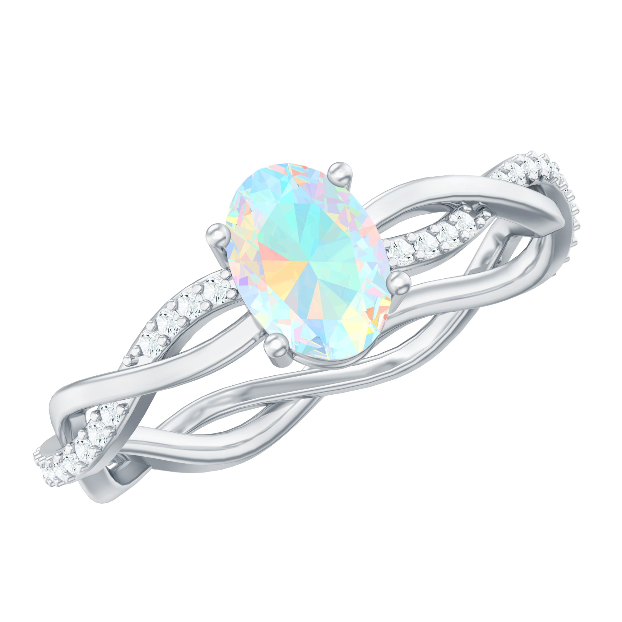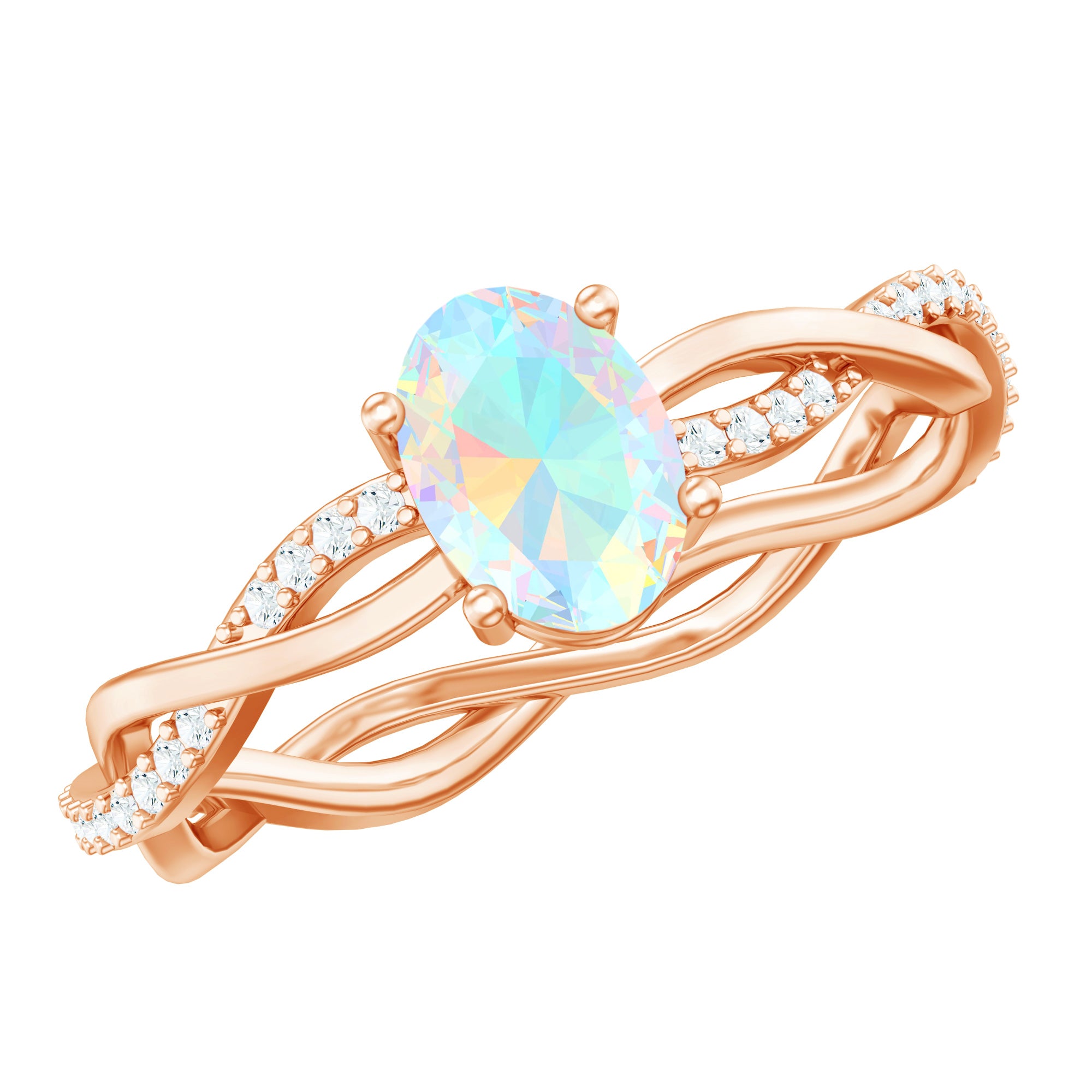 Natural 6X8mm Opalescent Oval Engagement Ring with Diamond Braided Shank