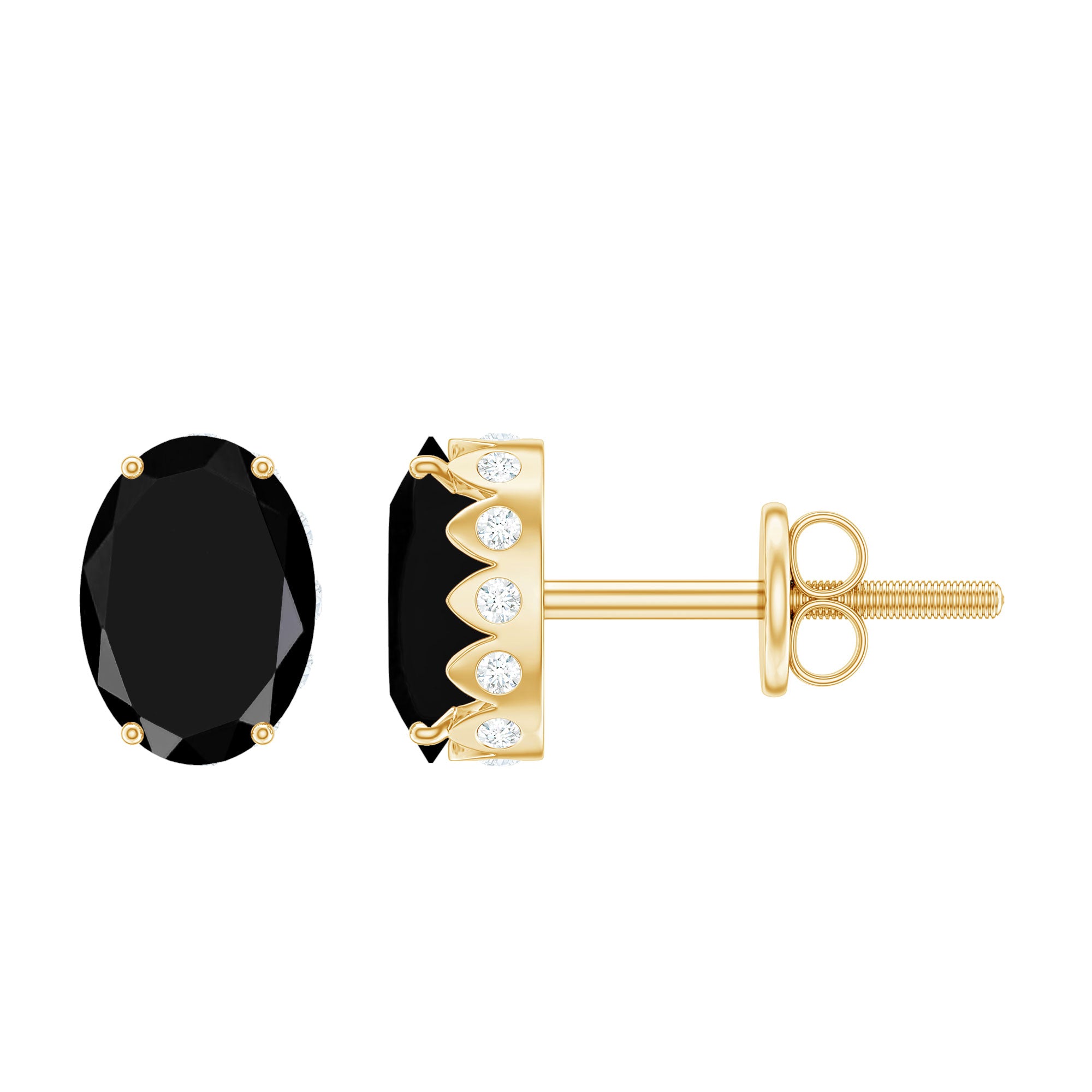 A stunning choice for anyone who loves elegance with a touch of sparkle, these Black Onyx Earrings are the perfect way to elevate your style. The 6X8 mm Oval Shape Black Onyx gemstones set in Prong Setting are complemented by a delicate Diamond stones that add a soft, brilliant shimmer. Together, the AAA Quality Black Onyx and HI-SI Diamond stones create a timeless look that is both chic and sophisticated. The Screw Back Closure ensures a secure fit, so you can wear them with confidence, whether you are heading to a special event or just adding a touch of glamour to your everyday ensemble. These Black Onyx Diamond Earrings are versatile enough to pair with anything, from an office outfit to a flowing evening gown, making them a must-have accessory for any wardrobe. Presented in a chic jewelry box, these Black Onyx Ear Studs are ready to be gifted for a birthday, anniversary or any occasion that calls for something special. Simple, stylish and effortlessly eye-catching, these Oval Stud Earrings will quickly become your go-to for adding that perfect touch of luxury and class to any look.
