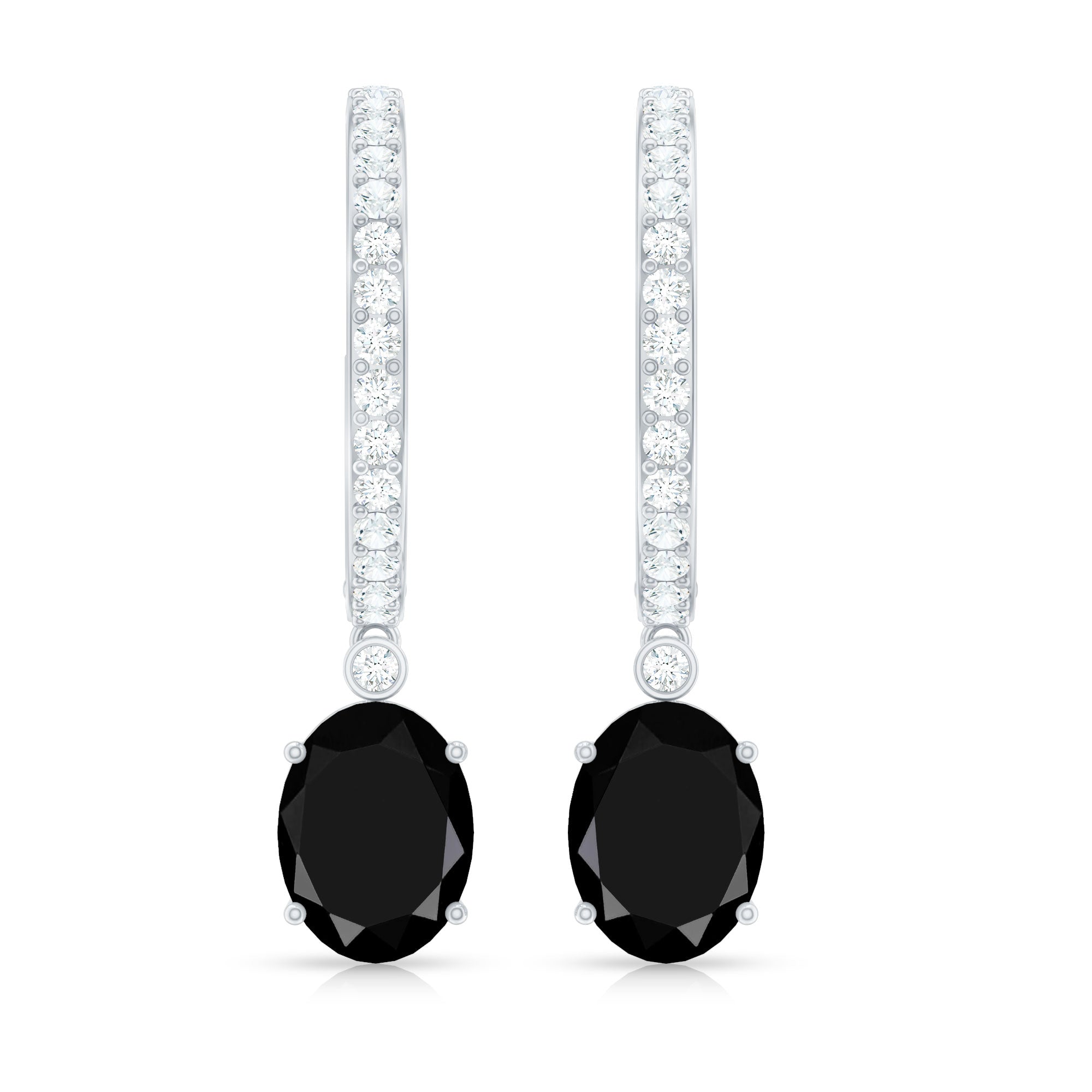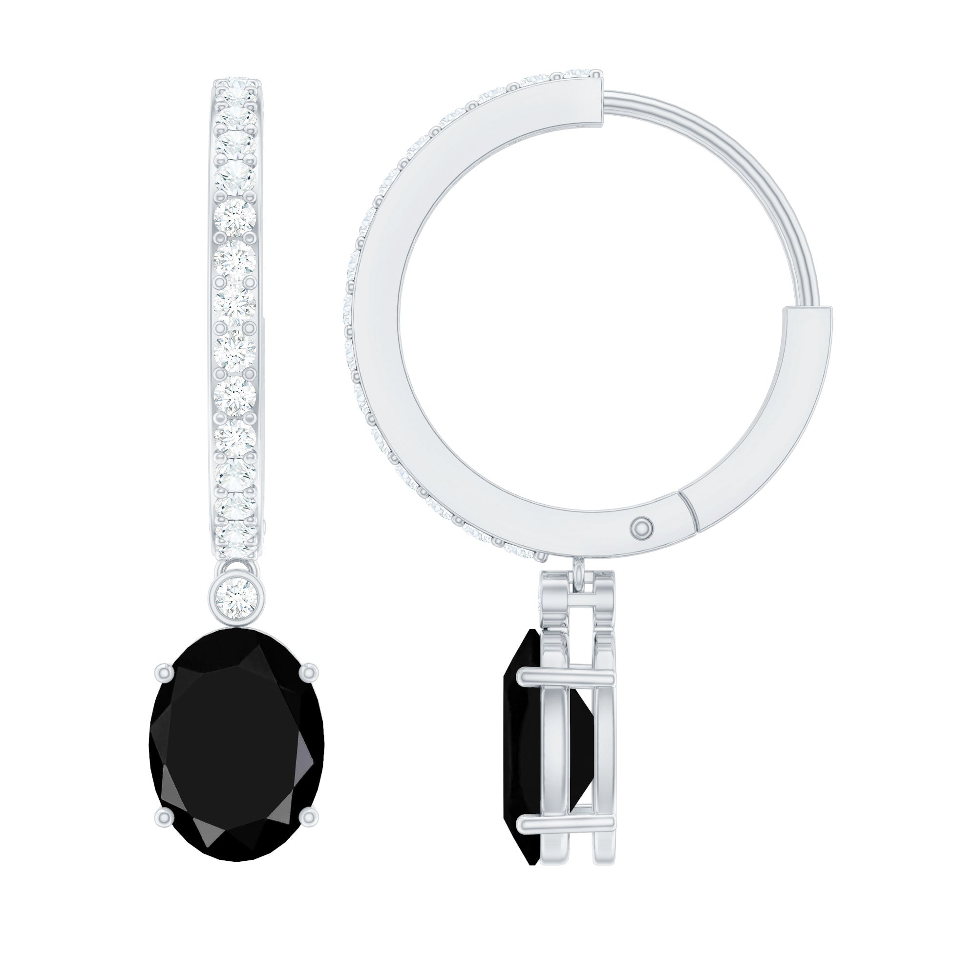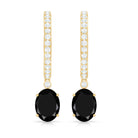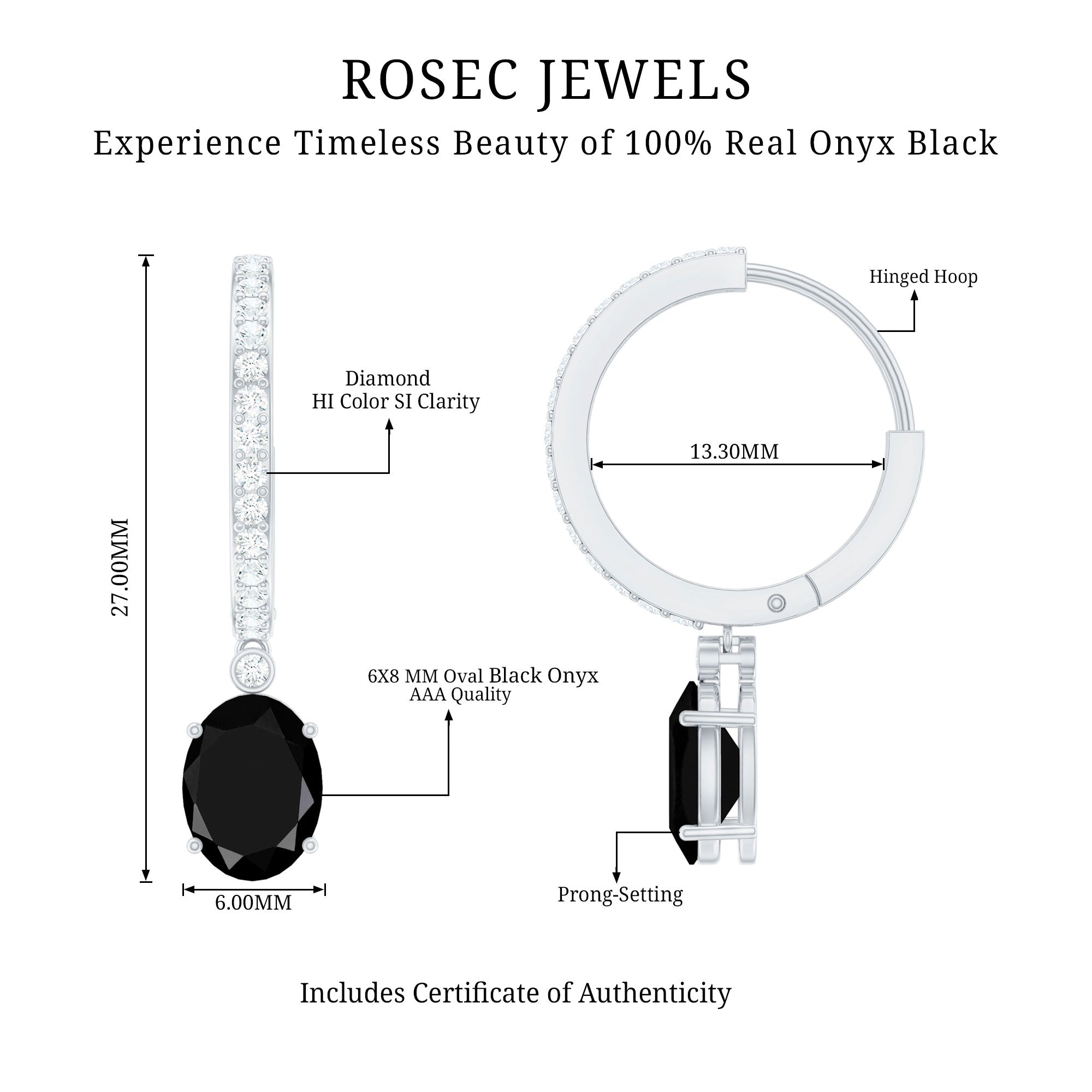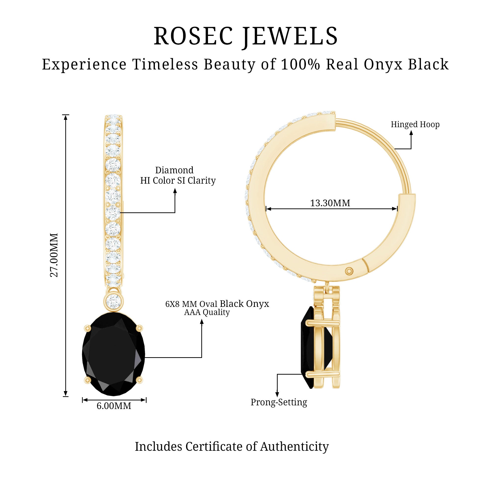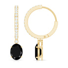 Natural 6X8mm Oval Black Onyx Hoop Drop Earrings with Diamond