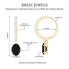 Elevate your style with the timeless elegance of these Black Onyx Drop Earrings. Crafted to perfection, each earring showcases a 6X8 mm Oval Shape Black Onyx gemstone set in Prong Setting that shimmers with a deep, captivating luster. The AAA Quality Black Onyx hangs gracefully from Diamond studded Hoop, adding just the right amount of sparkle and sophistication to your look. The stunning contrast between the Black Onyx and the dazzling Diamond stones creates an effortlessly chic design that transitions beautifully from day to night. Comfortable and easy to wear, these Hinged Hoop Earrings are perfect for adding a touch of refinement to any outfit, whether you are dressing up for a special occasion or adding polish to your everyday style. Presented in an elegant jewelry box, these Black Onyx Diamond Earrings arrive ready to gift, making them an ideal choice for birthdays, anniversaries or simply as a thoughtful surprise. Classic yet contemporary, these Black Onyx Earrings are a true expression of beauty and grace, designed for the woman who loves to shine with sophistication.