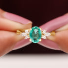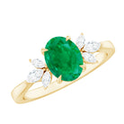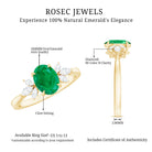 Natural 6X8MM Oval Emerald Engagement Ring with Diamond Trio