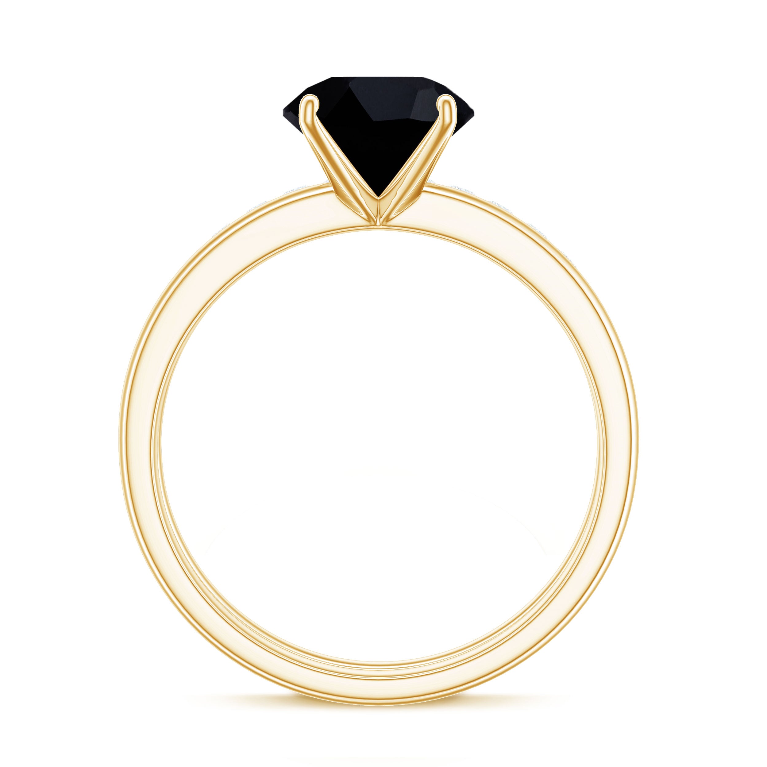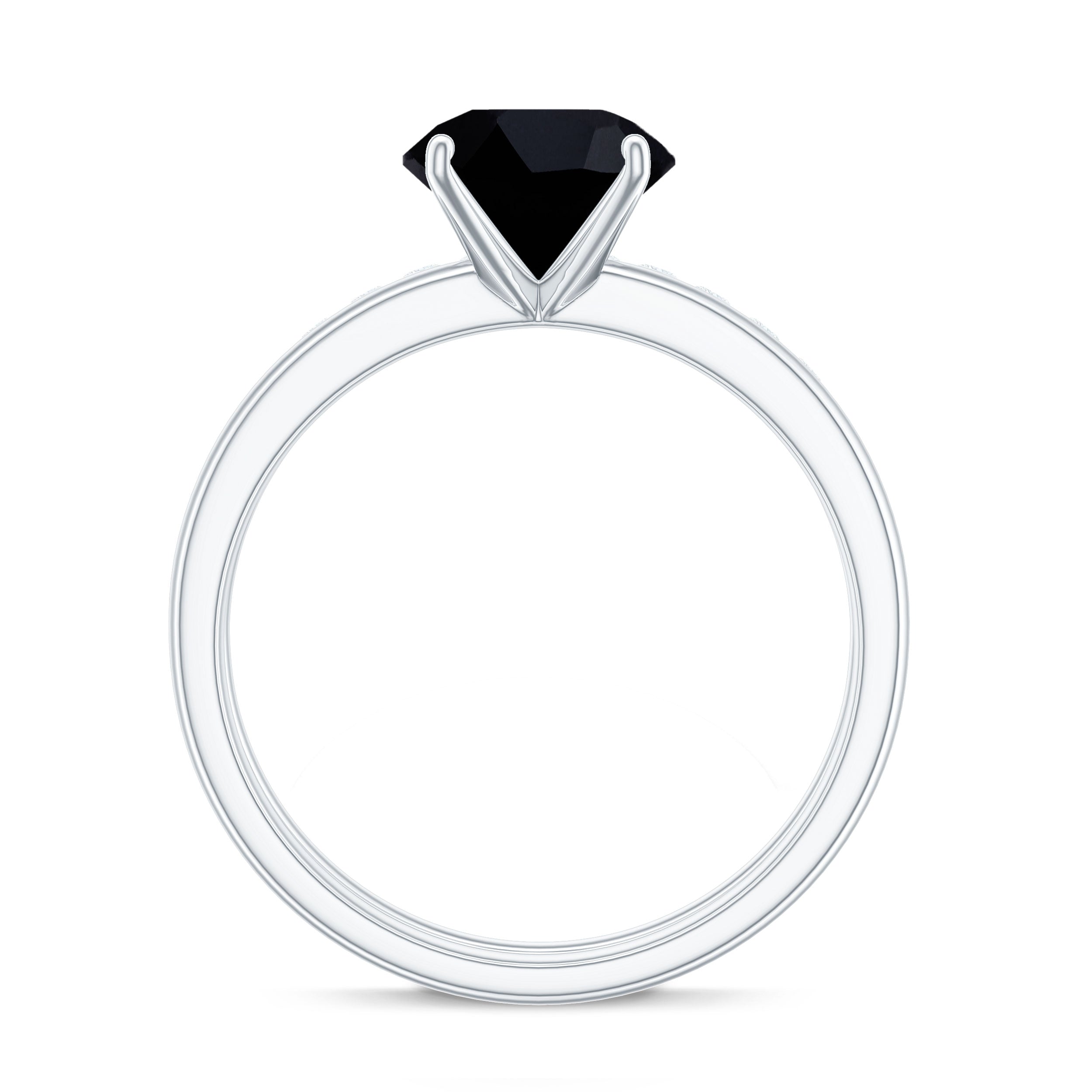 Natural 8mm Black Onyx Solitaire Engagement Rings with Diamond Enhancer