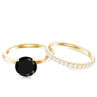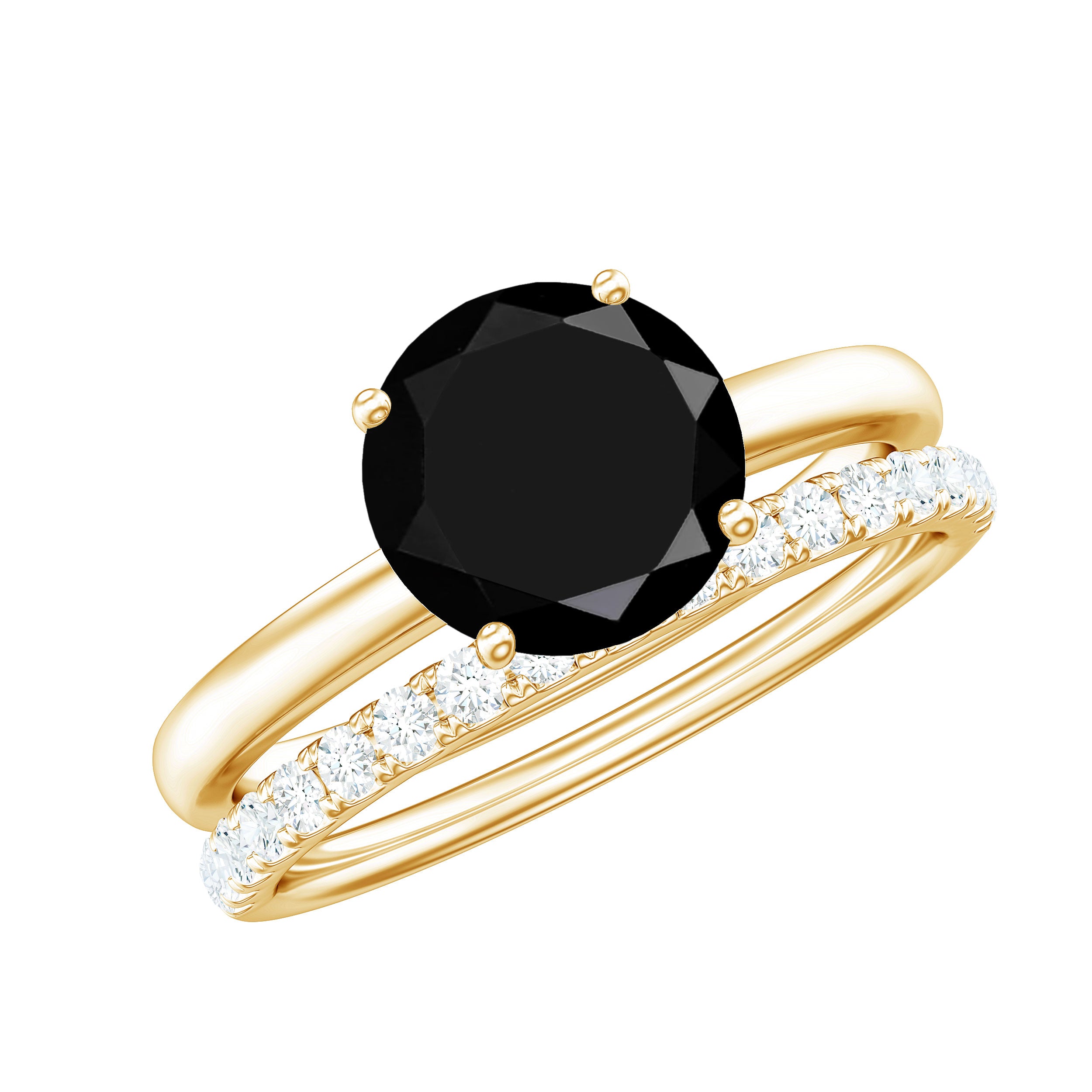 Mark the beginning of eternity with a ring that shines as brightly as your love. This exquisite Onyx Bridal Set is crafted to serve as a timeless emblem of your devotion. Meticulously handcrafted by Rosec Jewels, this 2 Piece Wedding Ring Set harmoniously combines traditional elegance with contemporary allure. At the center of the set lies a breathtaking 8 MM round shape Black Onyx, rated AAA quality for its remarkable clarity and brilliance. Set in a prong setting on a sleek, polished band, the solitaire radiates with every glance. Accompanying the engagement ring is a refined half eternity wedding band, which adds an extra touch of sparkle to the bridal ensemble. The enhancer band features delicate round diamond stones, having HI Color SI Clarity. Together, they form a complete Solitaire Bridal Ring Set that is sophisticated, significant, and effortlessly chic. Whether worn together on your wedding day or styled separately for everyday elegance, this Black Onyx Engagement Ring Set will forever remind you of the love, joy, and journey you have chosen to embark upon. It comes presented in a luxurious jewelry box along with a Gemstone Authenticity Certificate, enhancing the significance of your moment.