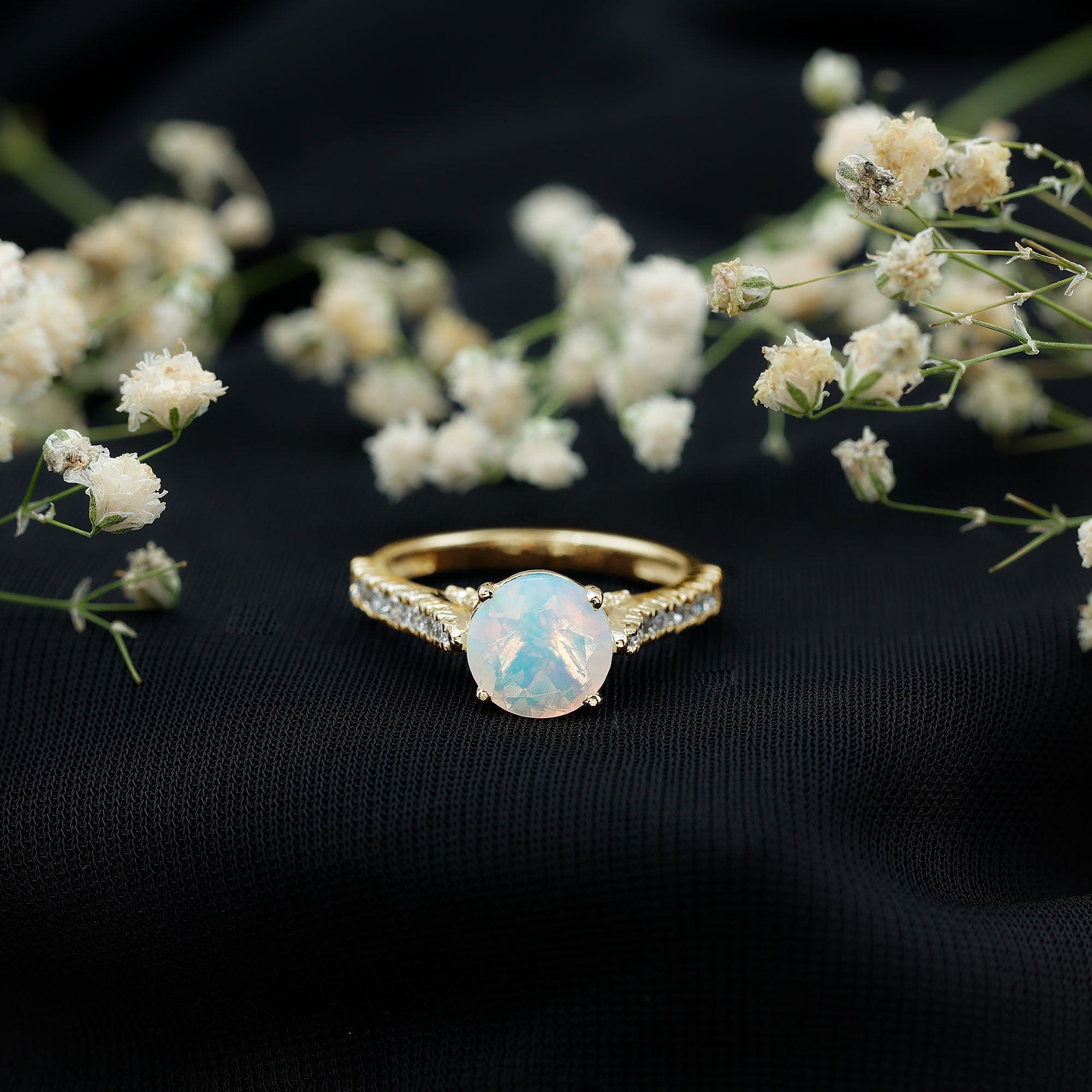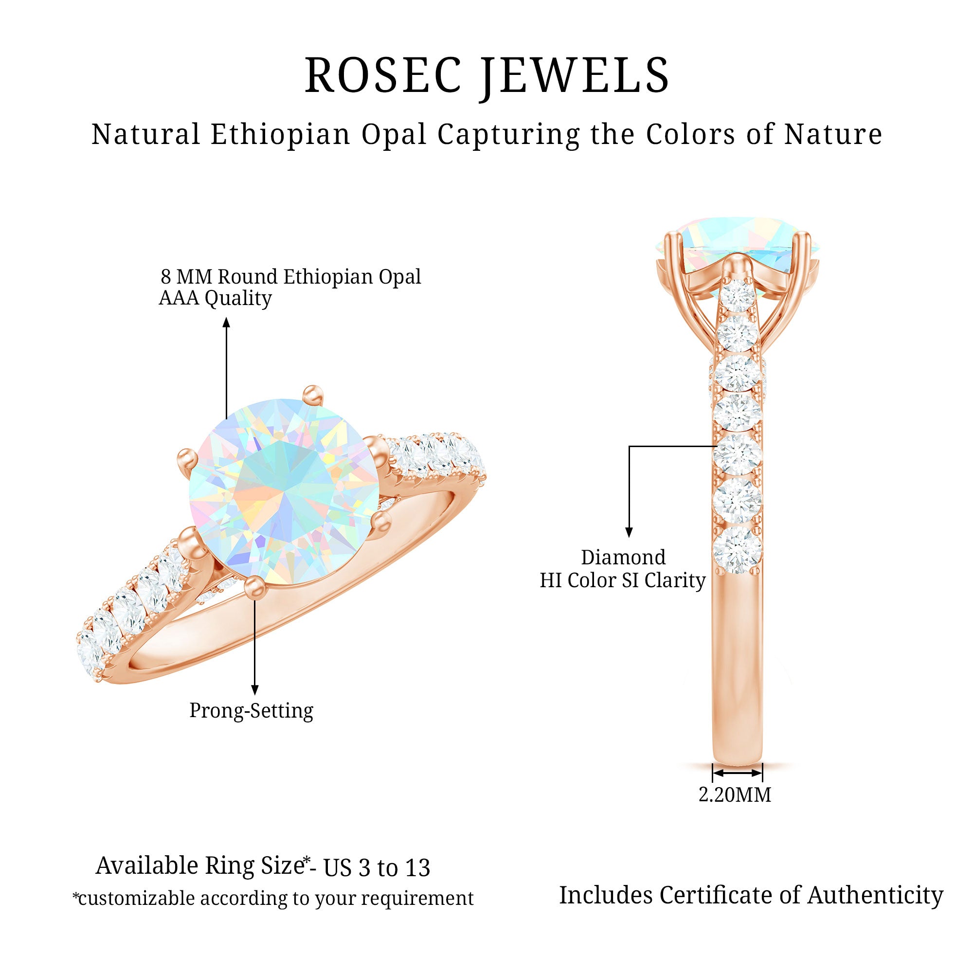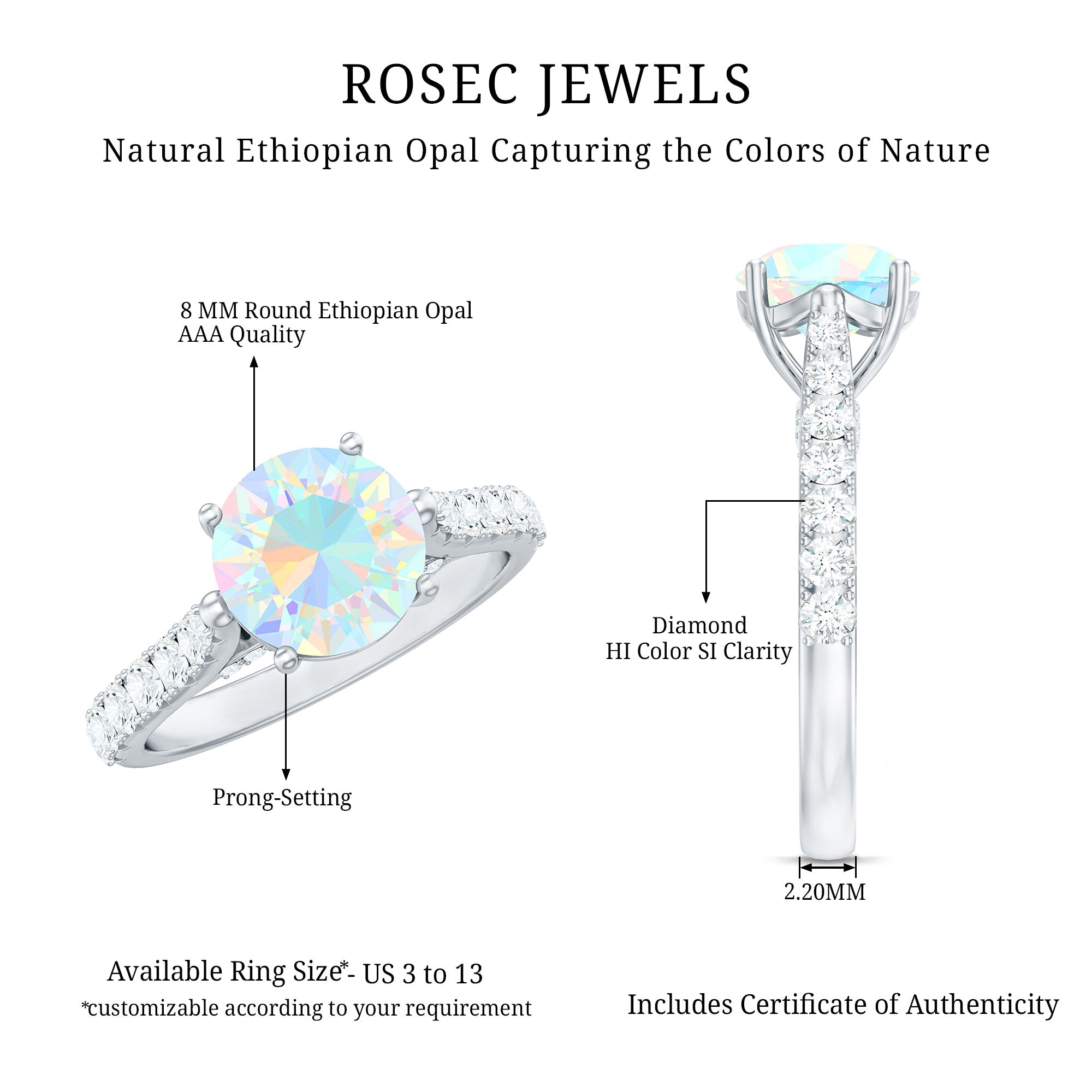 Natural 8mm Ethiopian Opal Diamond Engagement Ring with Side Stones