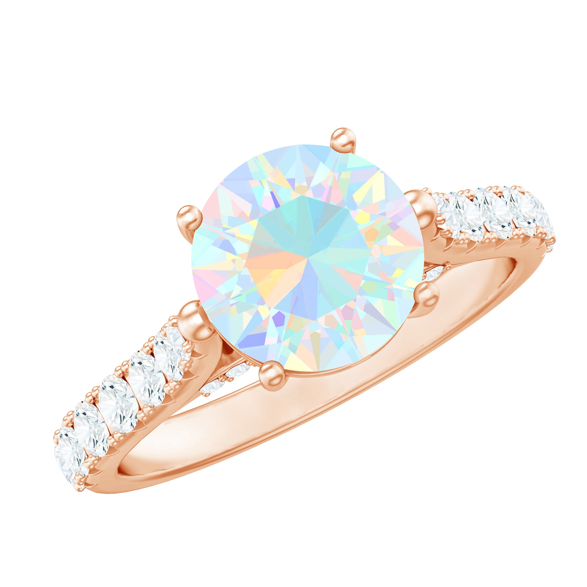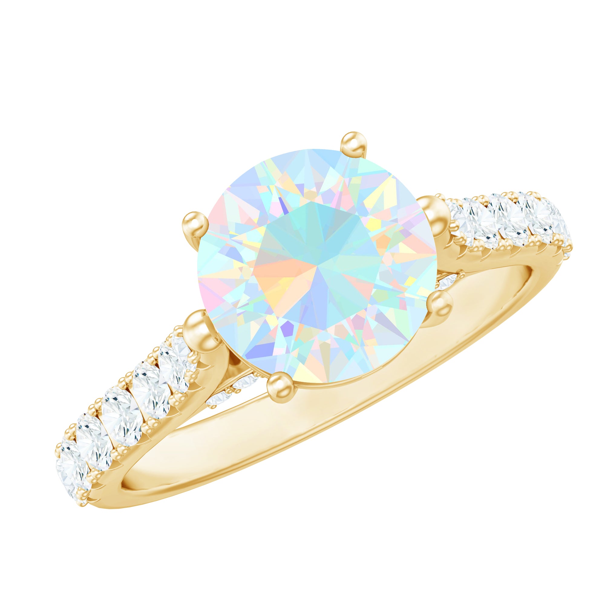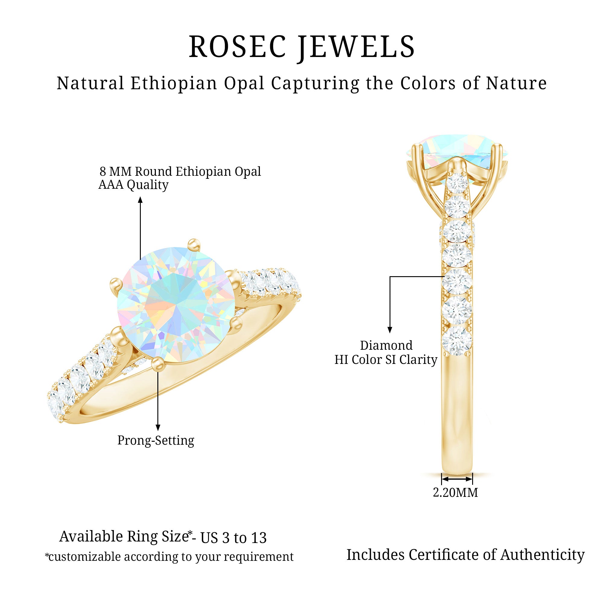 Natural 8mm Ethiopian Opal Diamond Engagement Ring with Side Stones