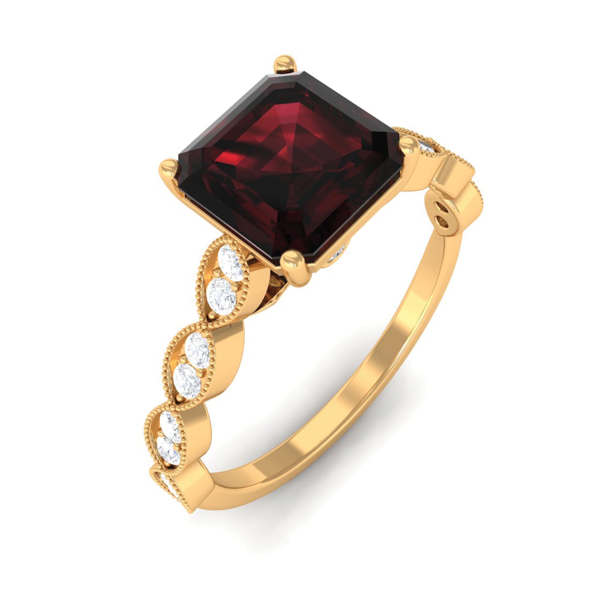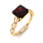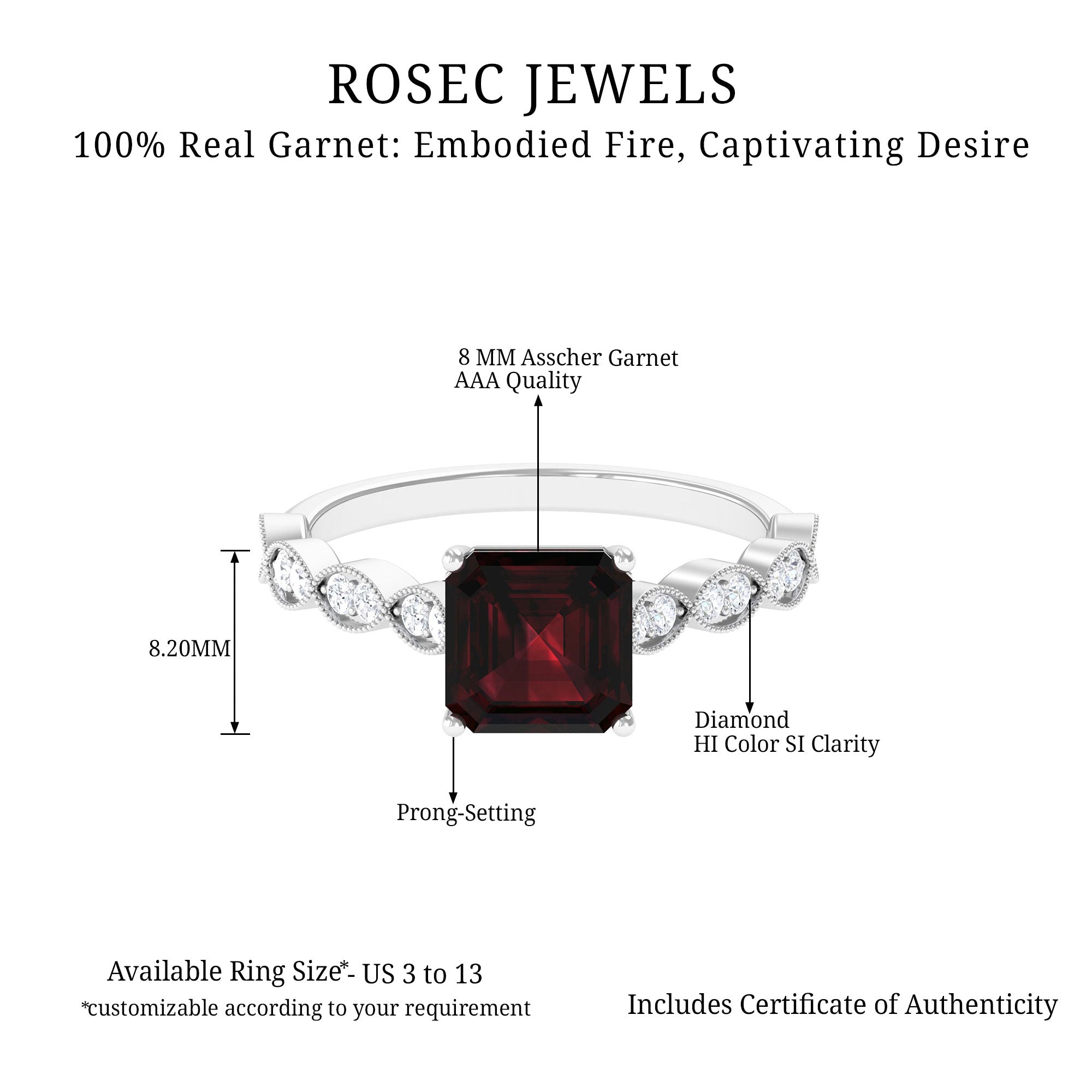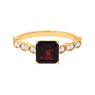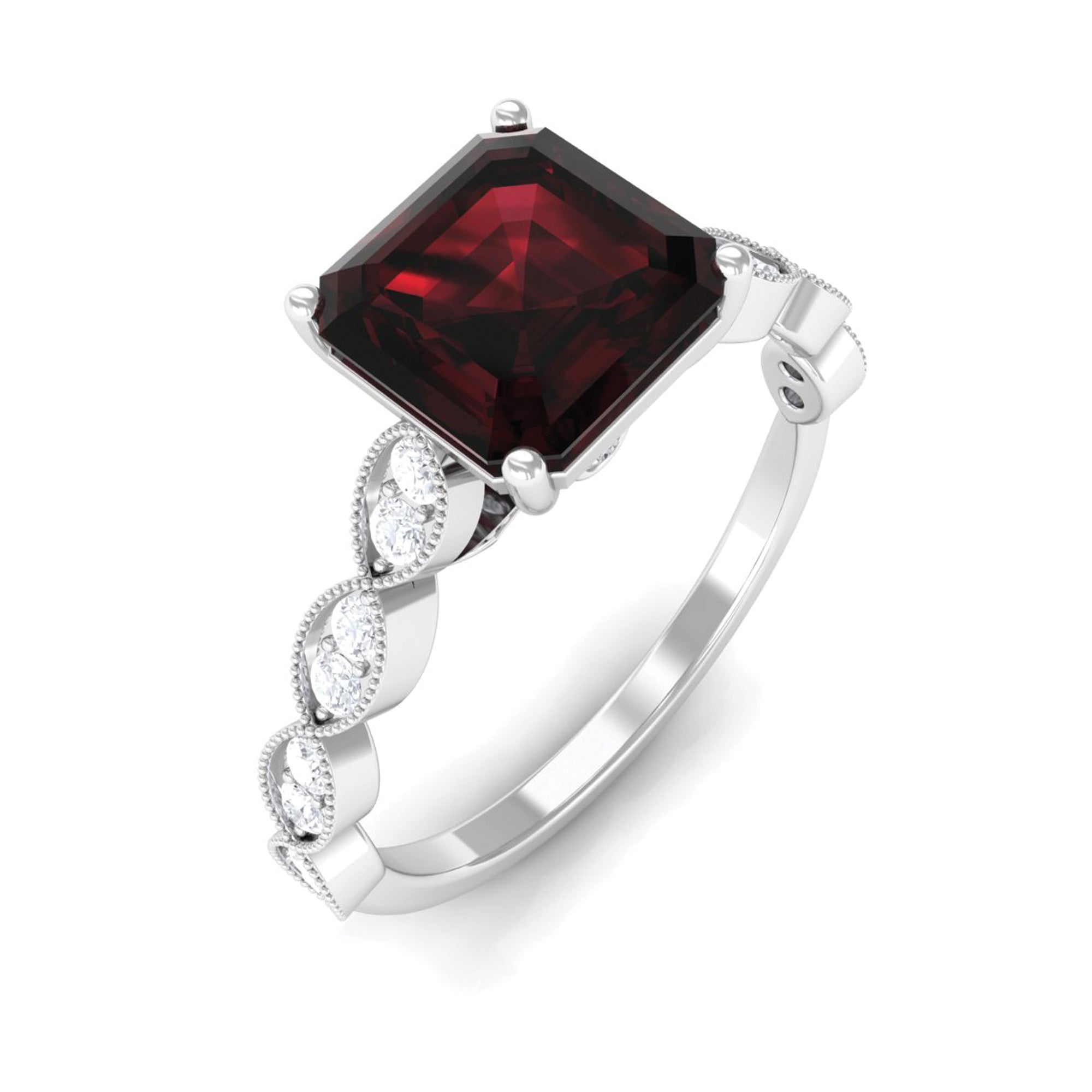 Natural 8mm Garnet Asscher Cut Engagement Ring with Diamond