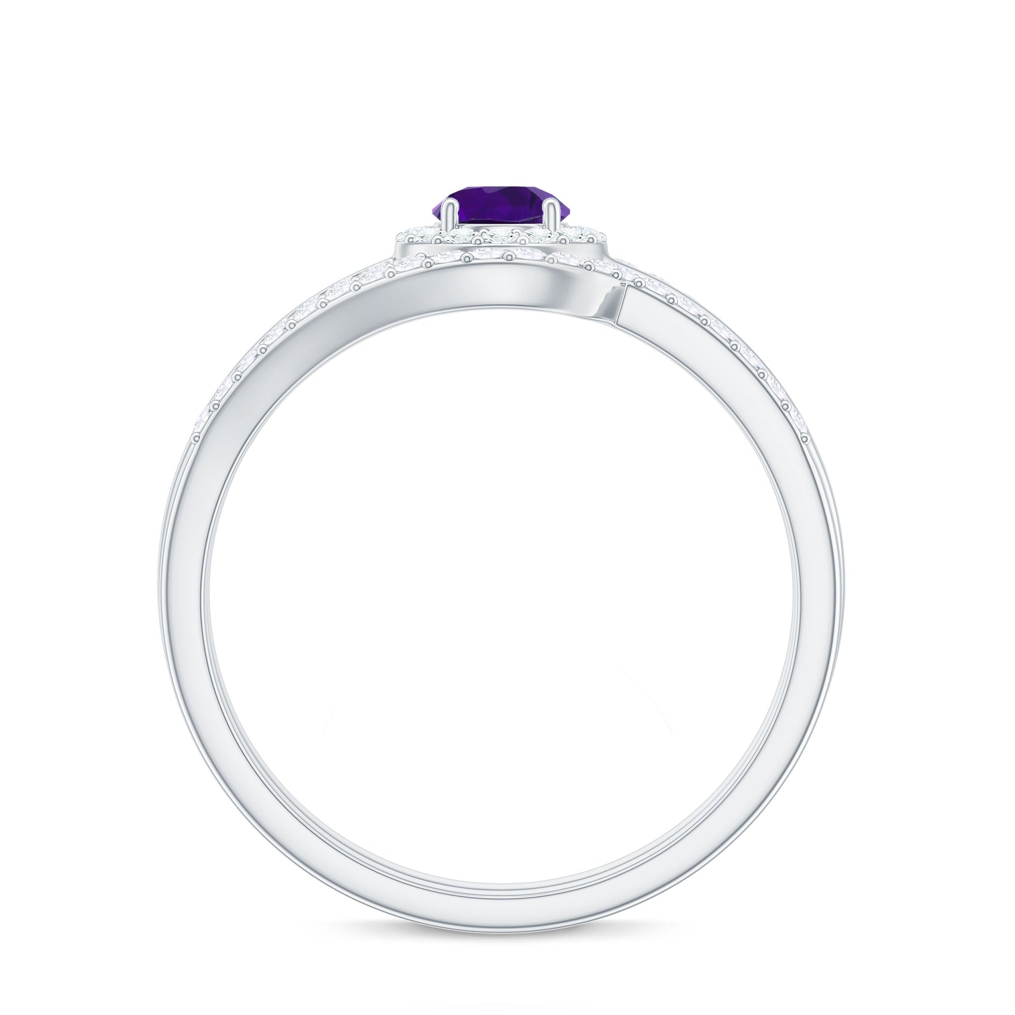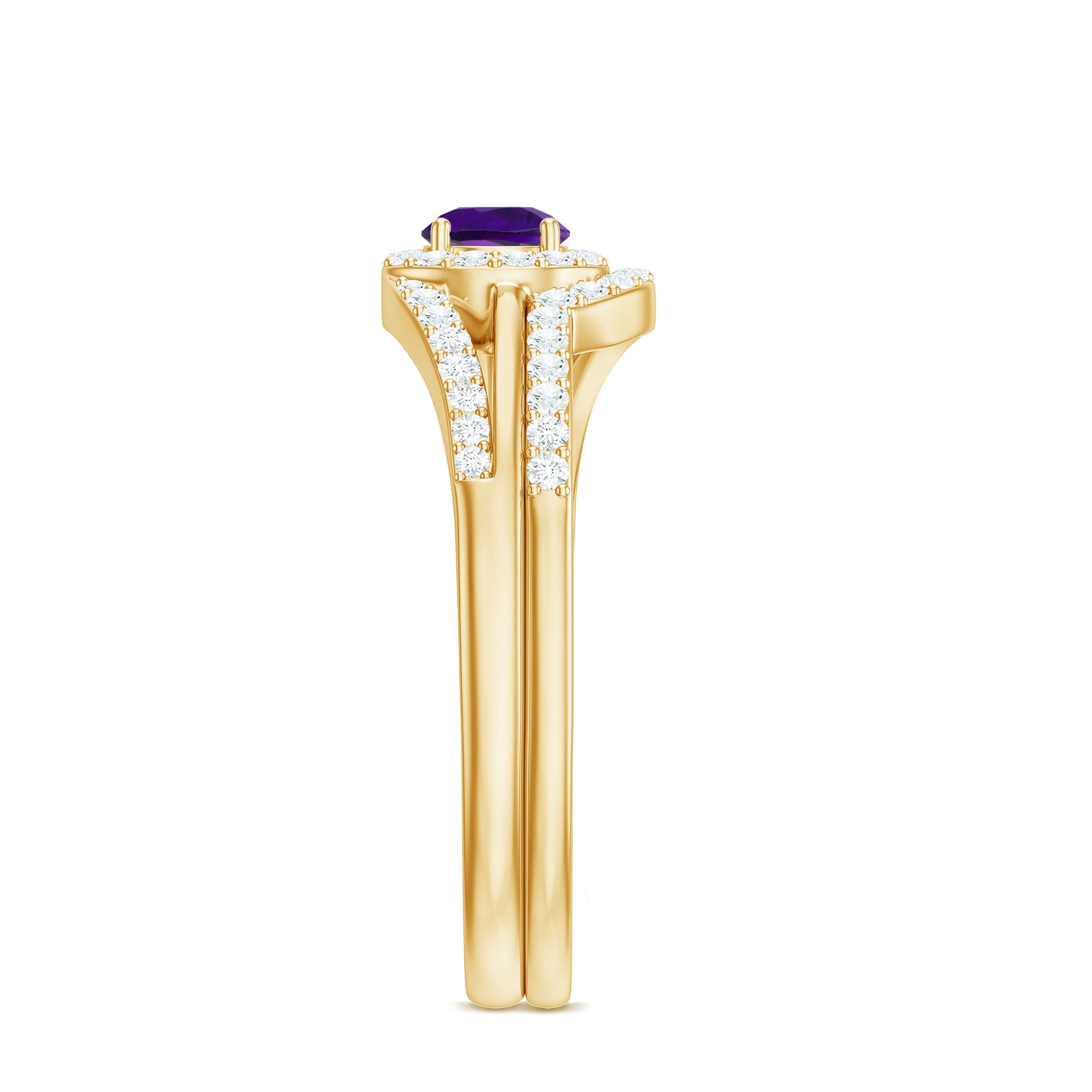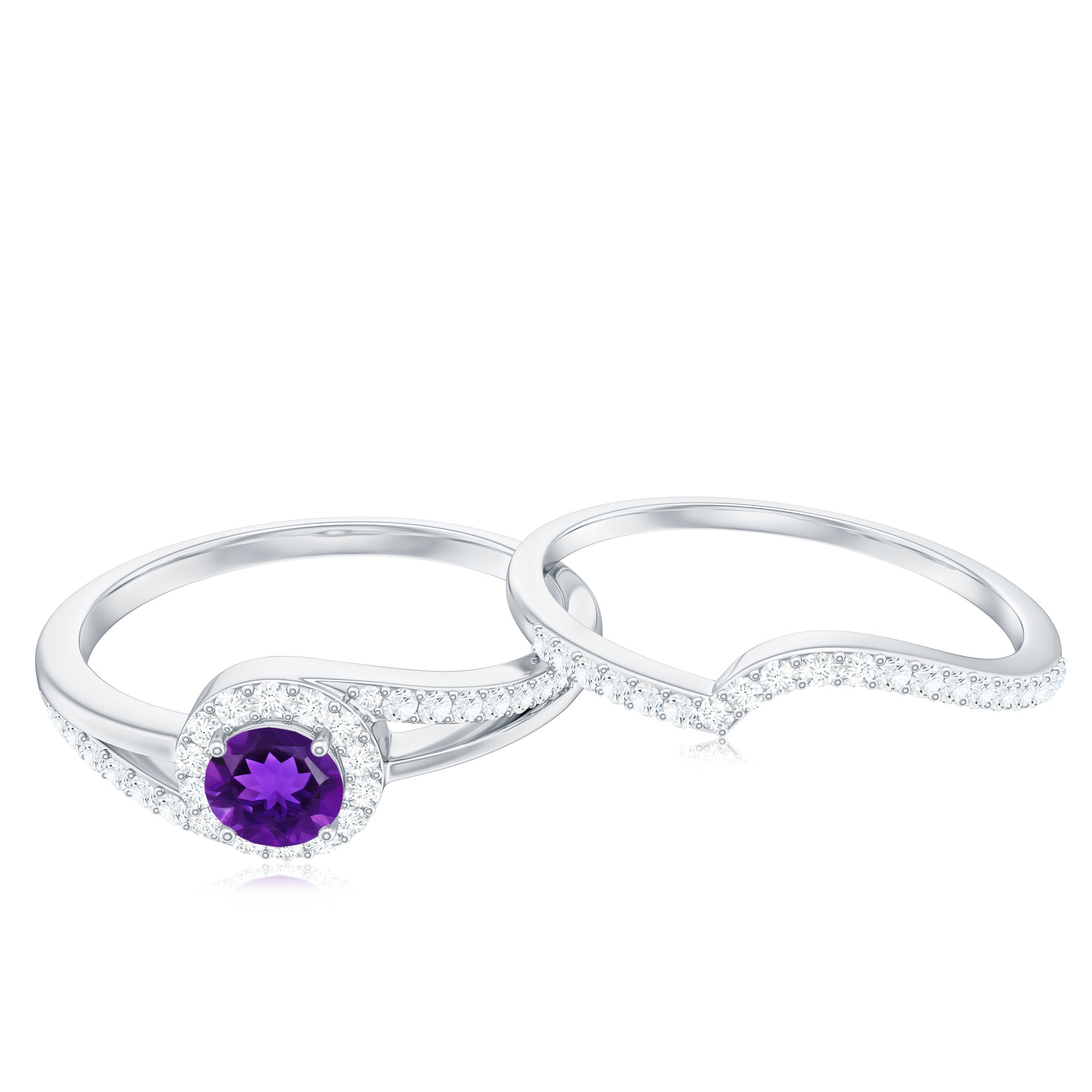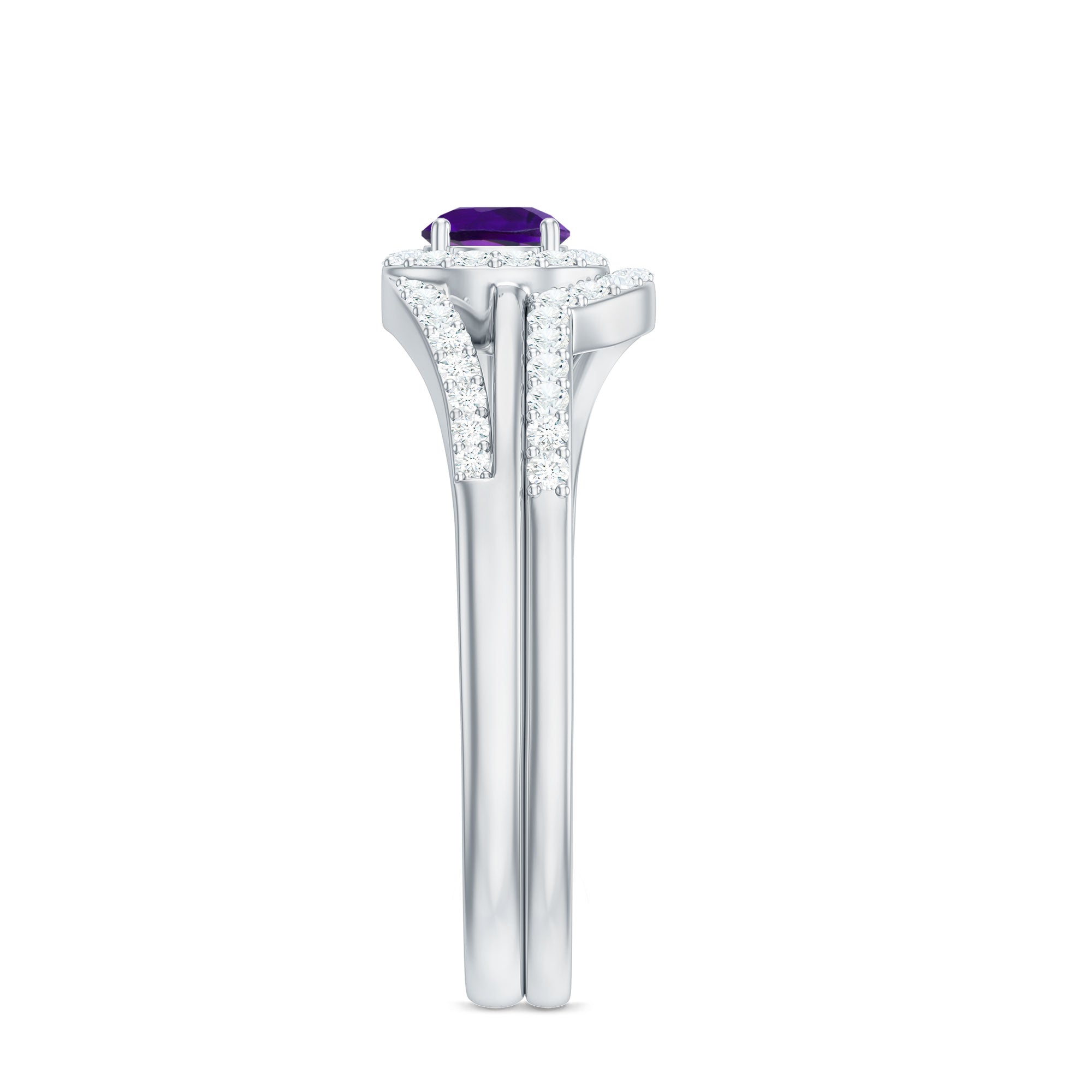 Natural Amethyst and Diamond Minimal Bridal Ring Set