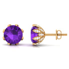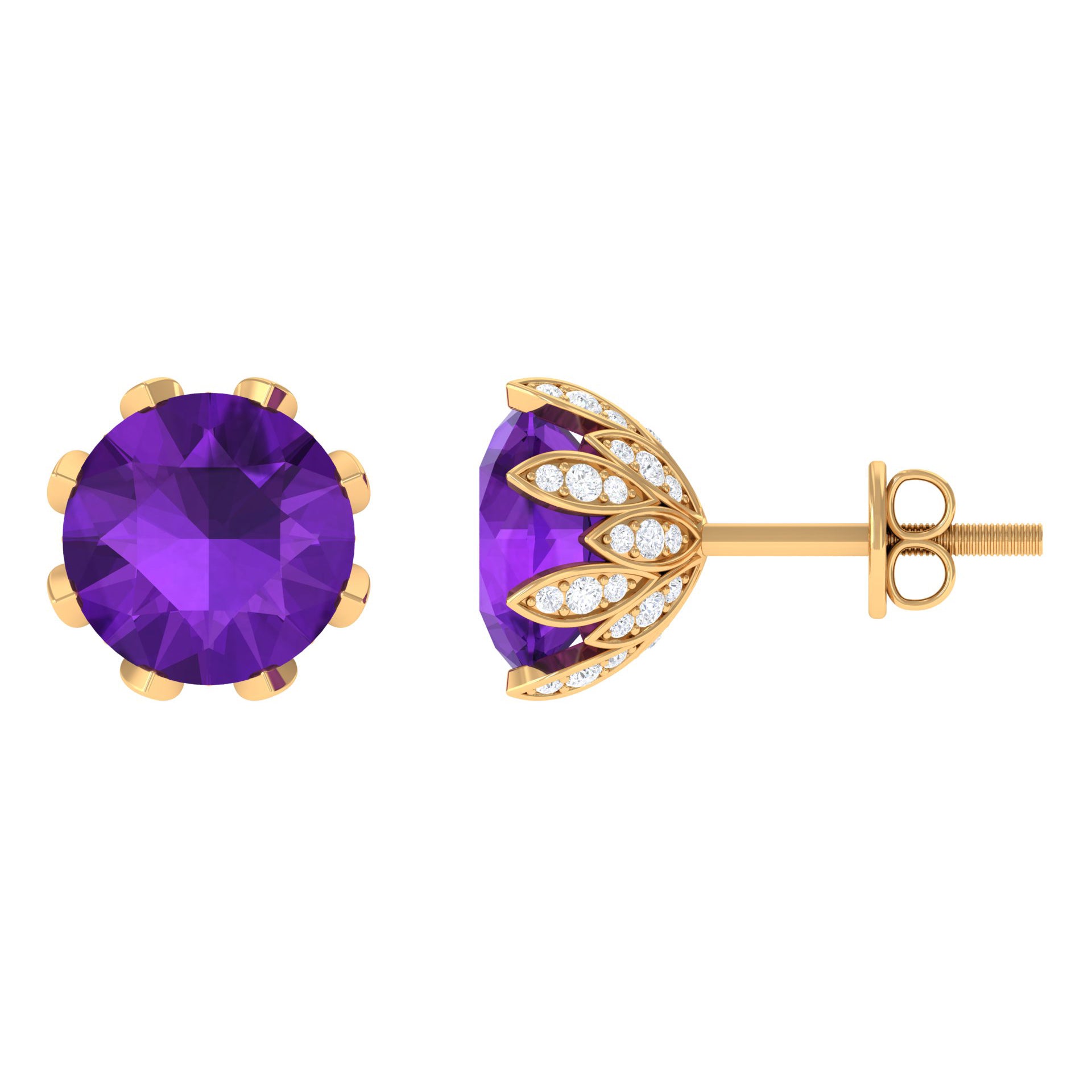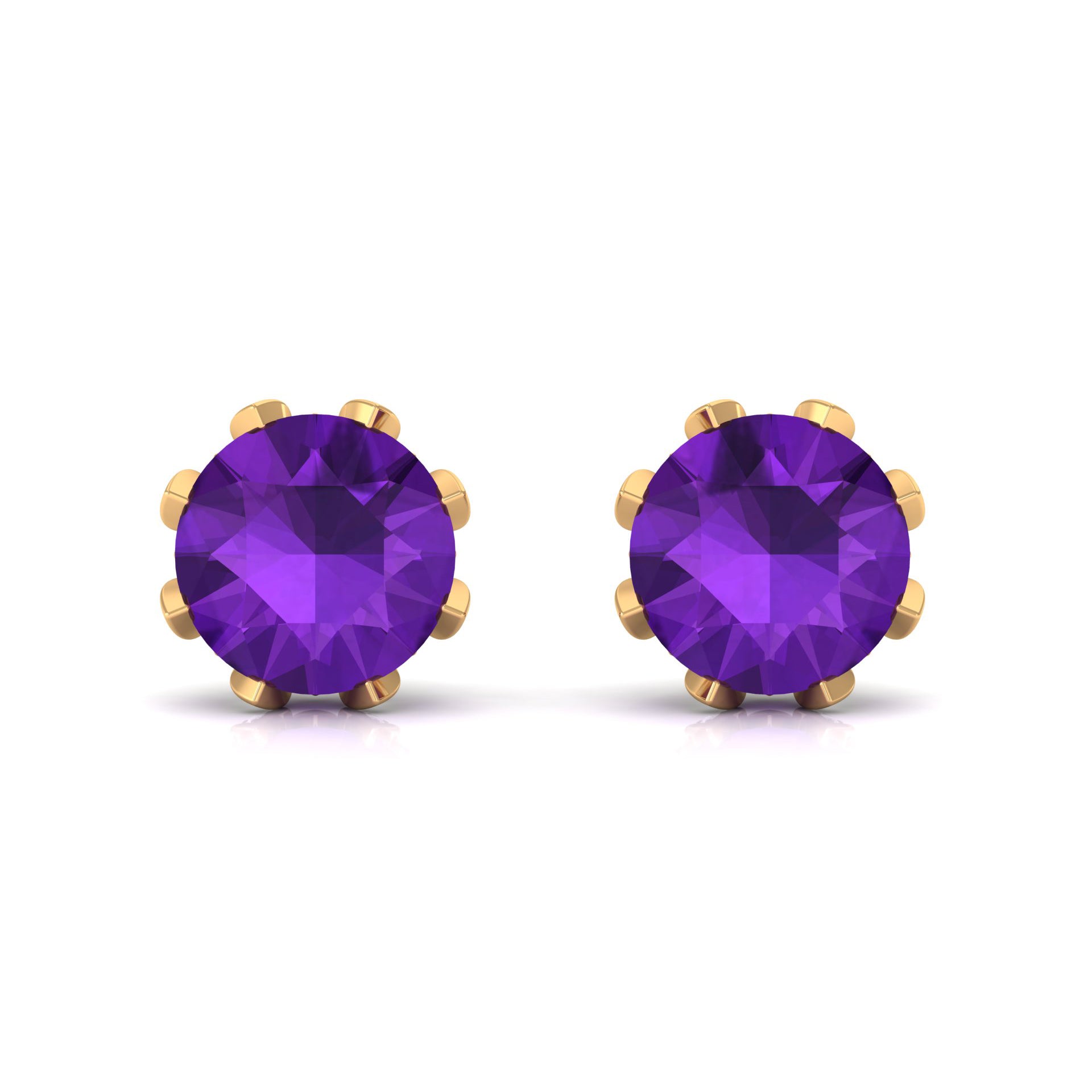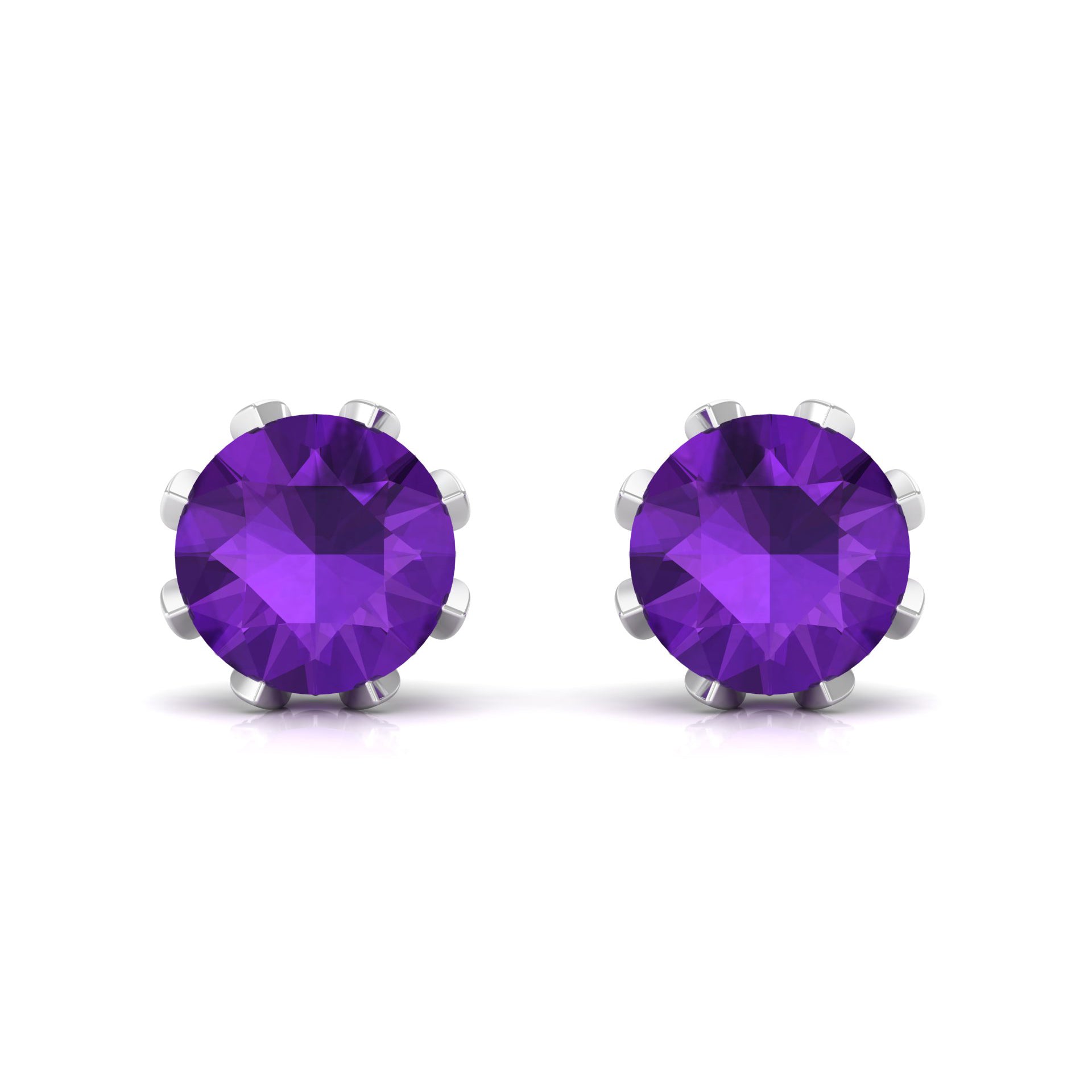Blossom into elegance with these enchanting Flower Earrings, a delicate celebration of beauty, love and craftsmanship. Each earring showcases a 7 mm Round Shape Amethyst set in a charming floral design, symbolizing grace, serenity and timeless romance. Surrounding the petals, sparkling Diamond stones add a subtle yet captivating shimmer, catching the light with every movement and giving the Amethyst Stud Earrings a luxurious and ethereal glow. Secured with Screw Back Closure, these Amethyst and Diamond Earrings combine comfort with sophistication, making them perfect for both everyday wear and special occasions. Whether paired with a romantic evening gown or a chic casual outfit, these Amethyst Ear Studs elevate any look with their sparkle and feminine charm. Perfect as a birthday gift, an anniversary surprise or a thoughtful expression of affection, they come beautifully presented in a signature jewelry box, ready to delight the wearer. These Amethyst Earrings are a graceful reminder that beauty blossoms in every moment shared with someone special.
