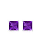Natural Amethyst Princess Cut Earrings with Screw Back