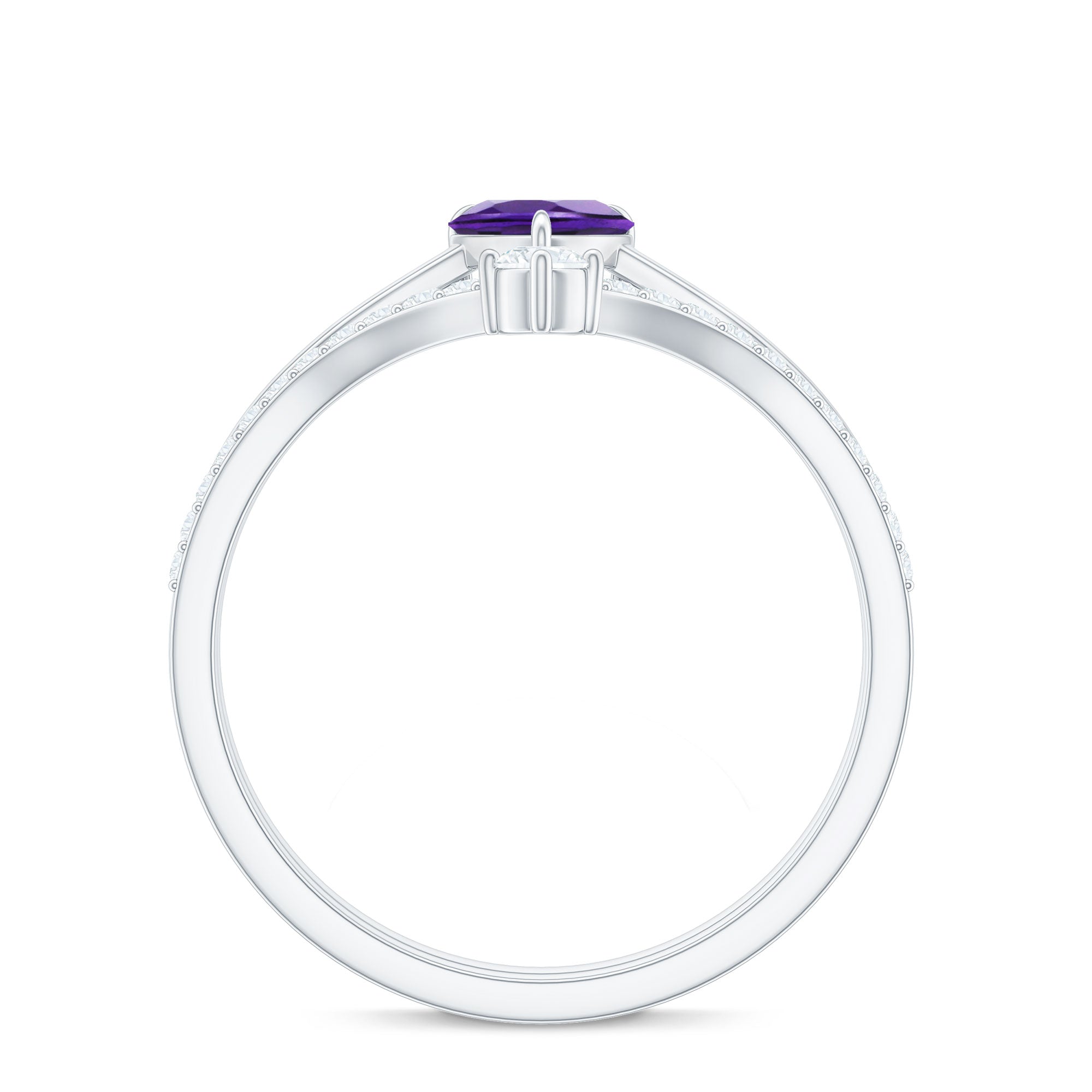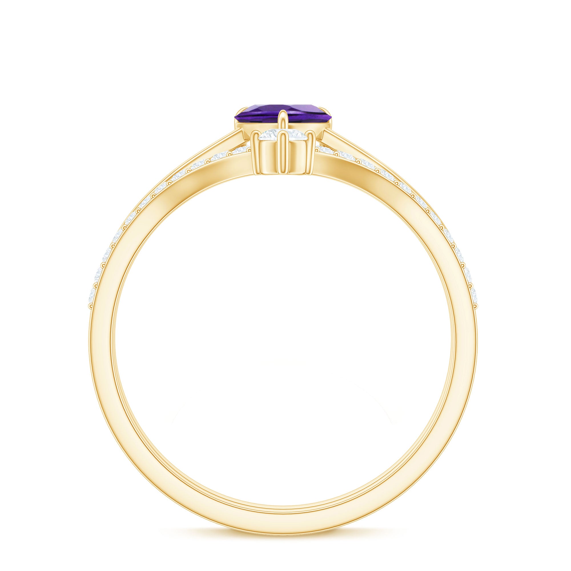 Natural Amethyst Solitaire Heart Ring Set with Diamond