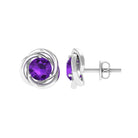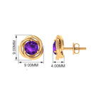 Natural Amethyst Solitaire Swirl Stud Earrings