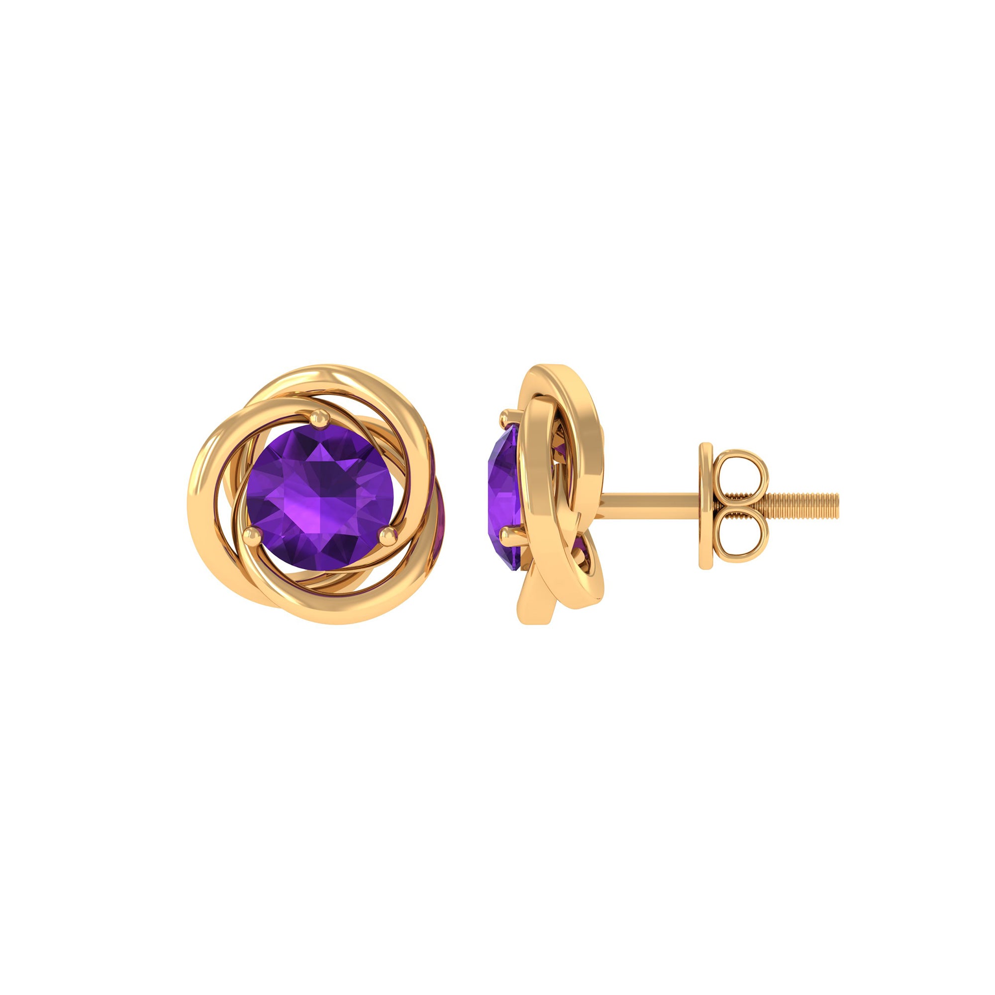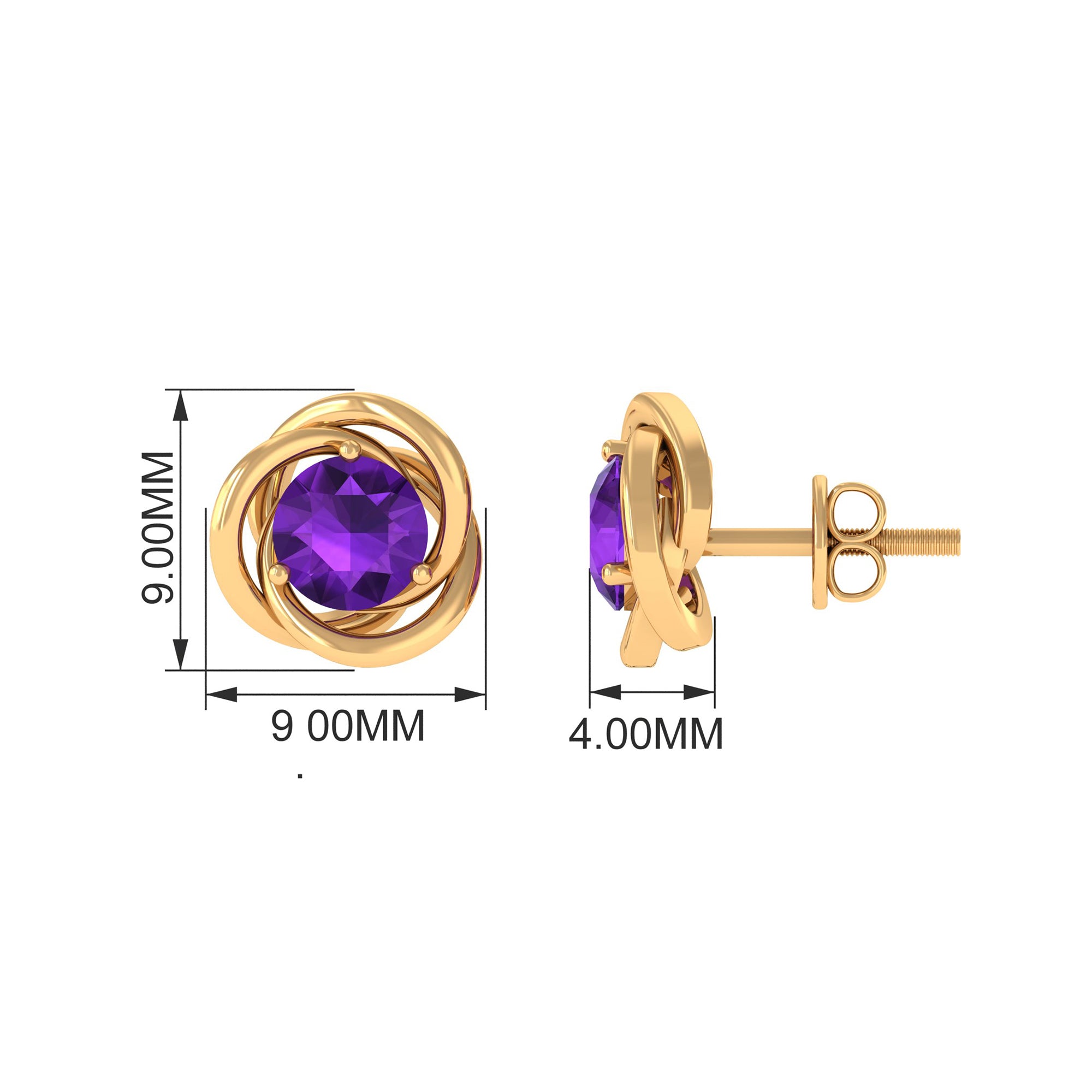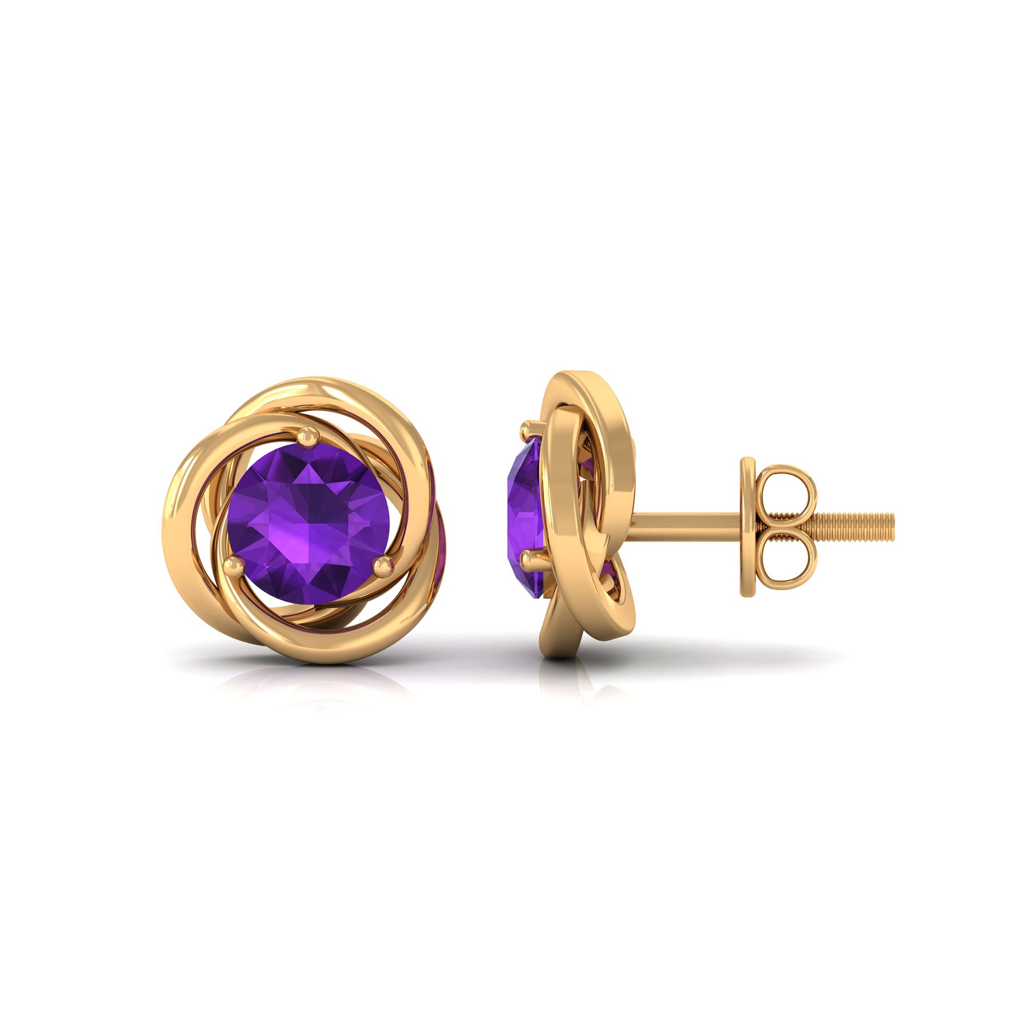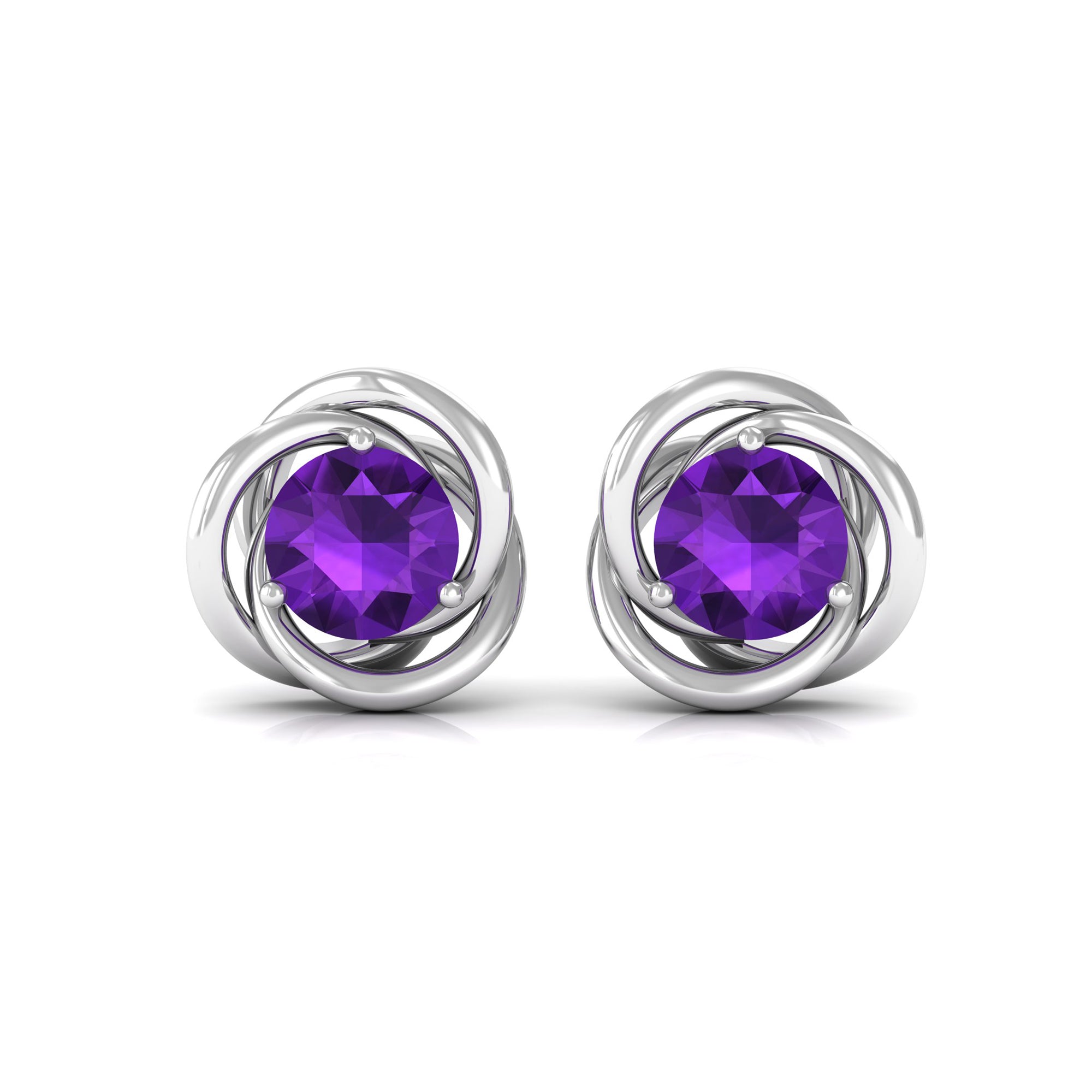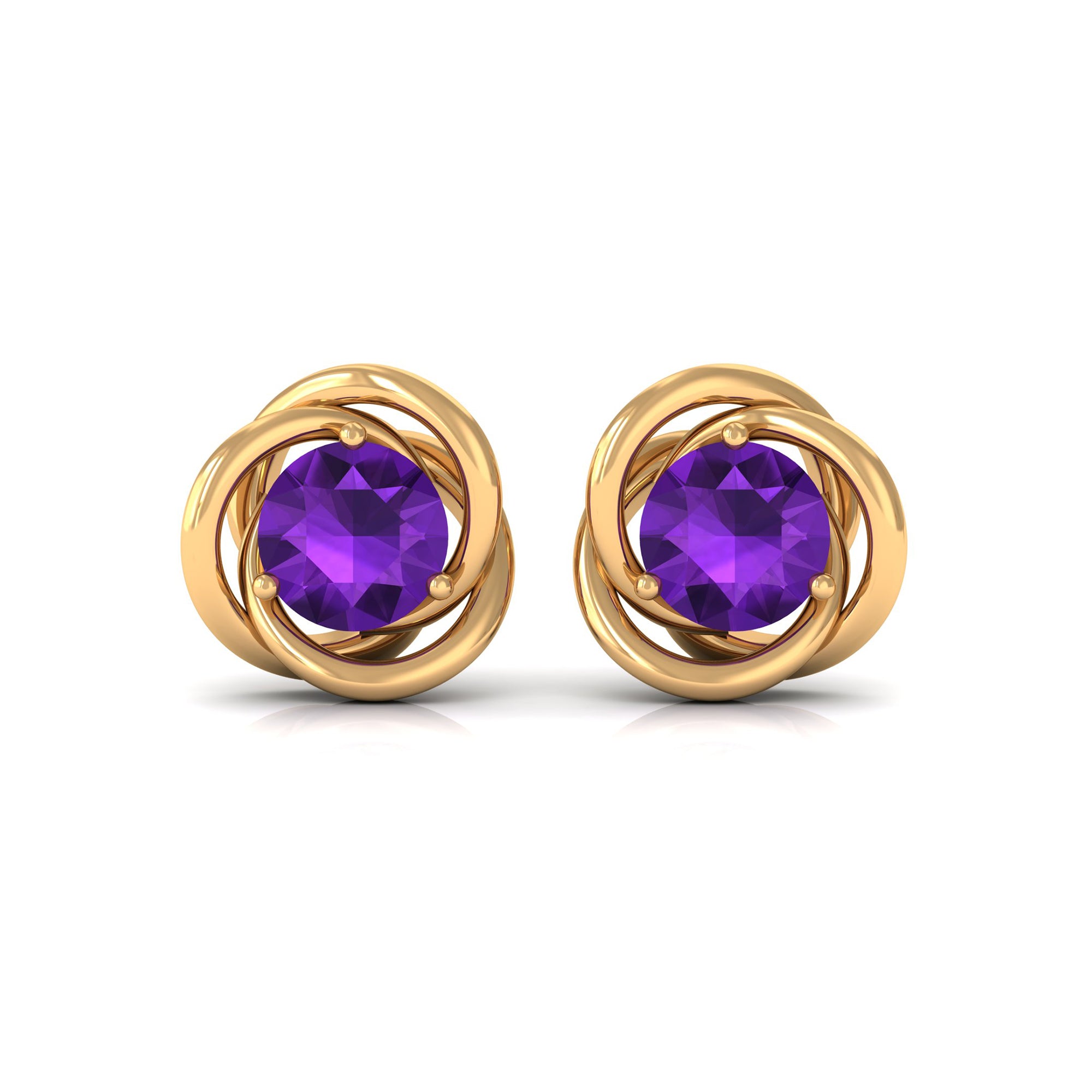 Add a pop of purple color to your ears with these elegant Swirl Stud Earrings featuring beautiful Amethyst gemstones set as a solitaire in 3 Prong Setting.