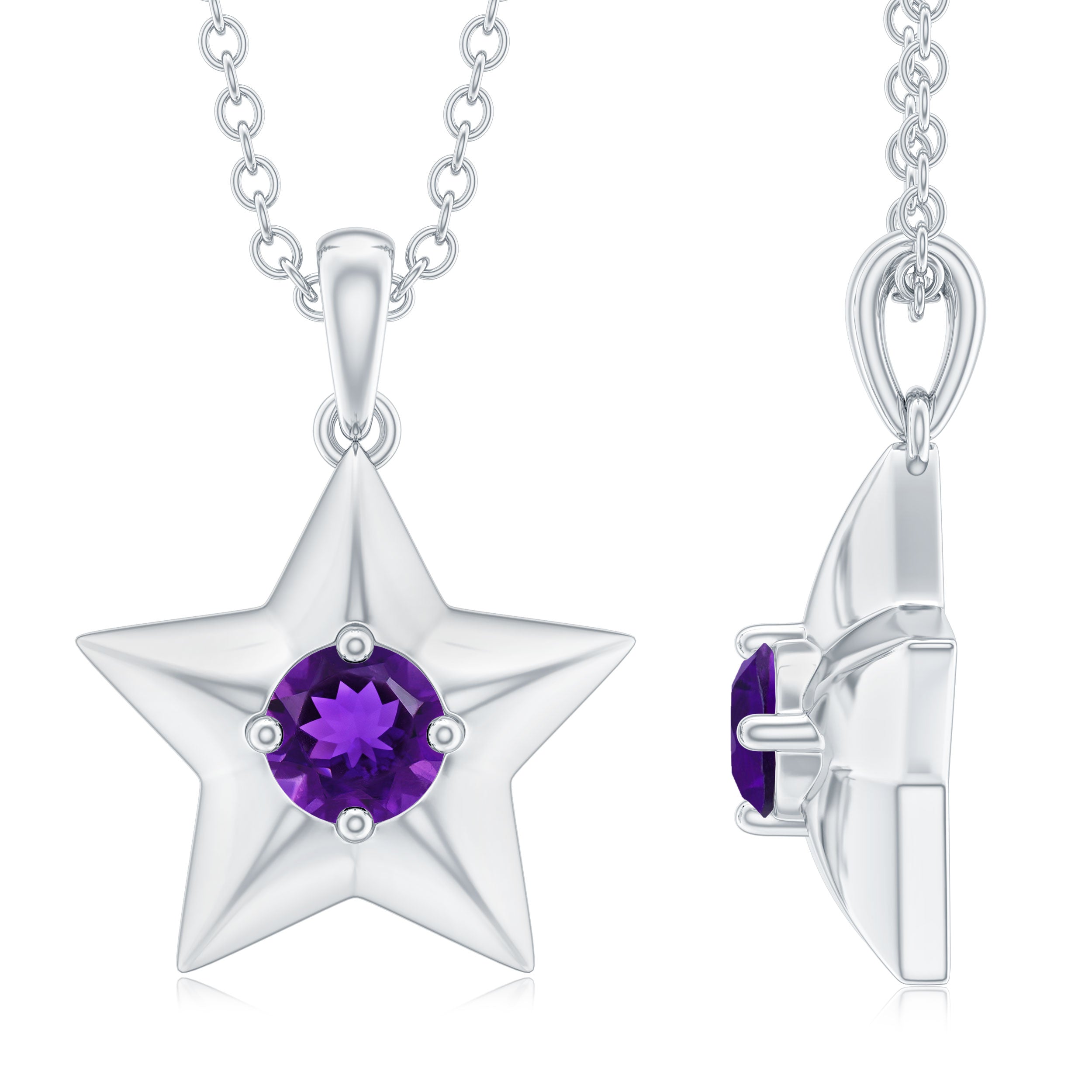 Illuminate your style with the celestial allure of this Star Pendant Necklace, featuring an Amethyst gemstone in a stunning star shape design.