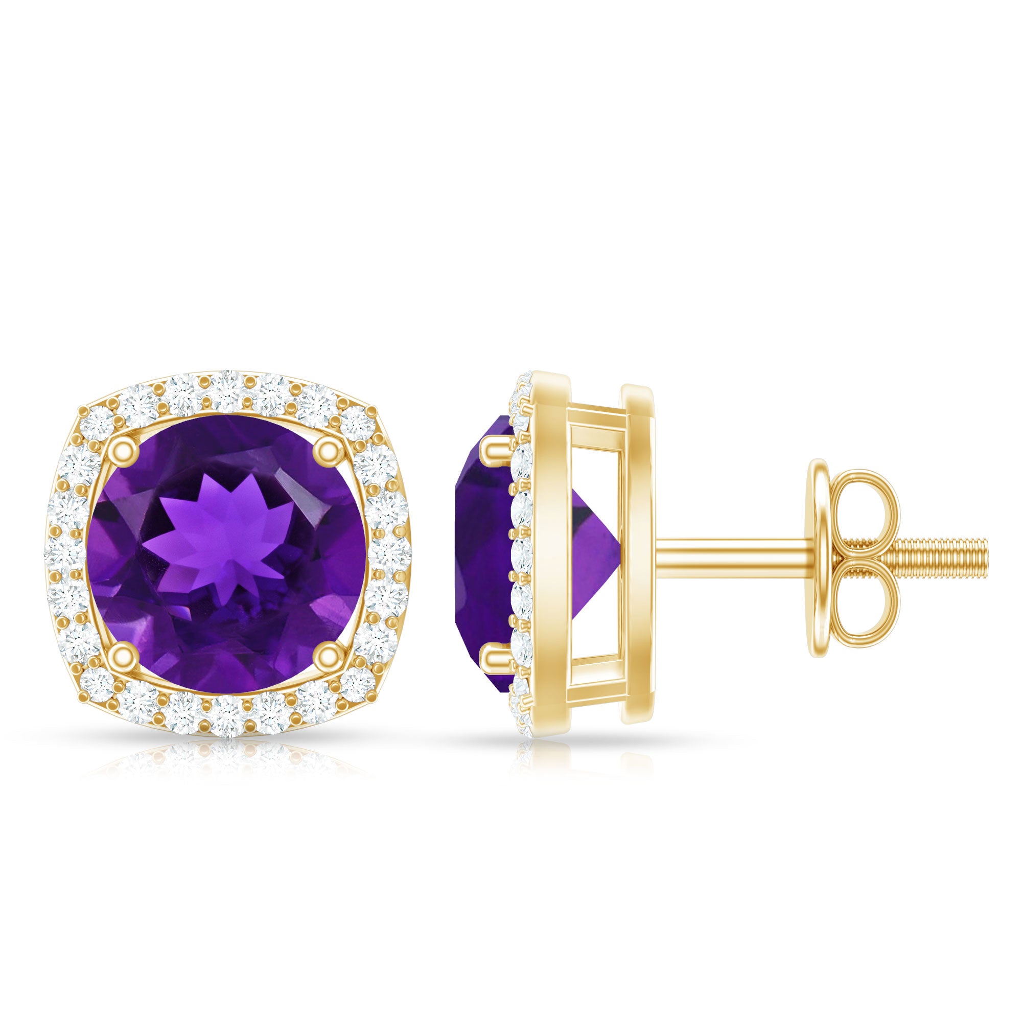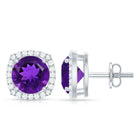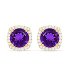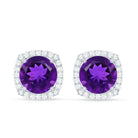 Natural Amethyst Stud Earrings with Diamond Halo