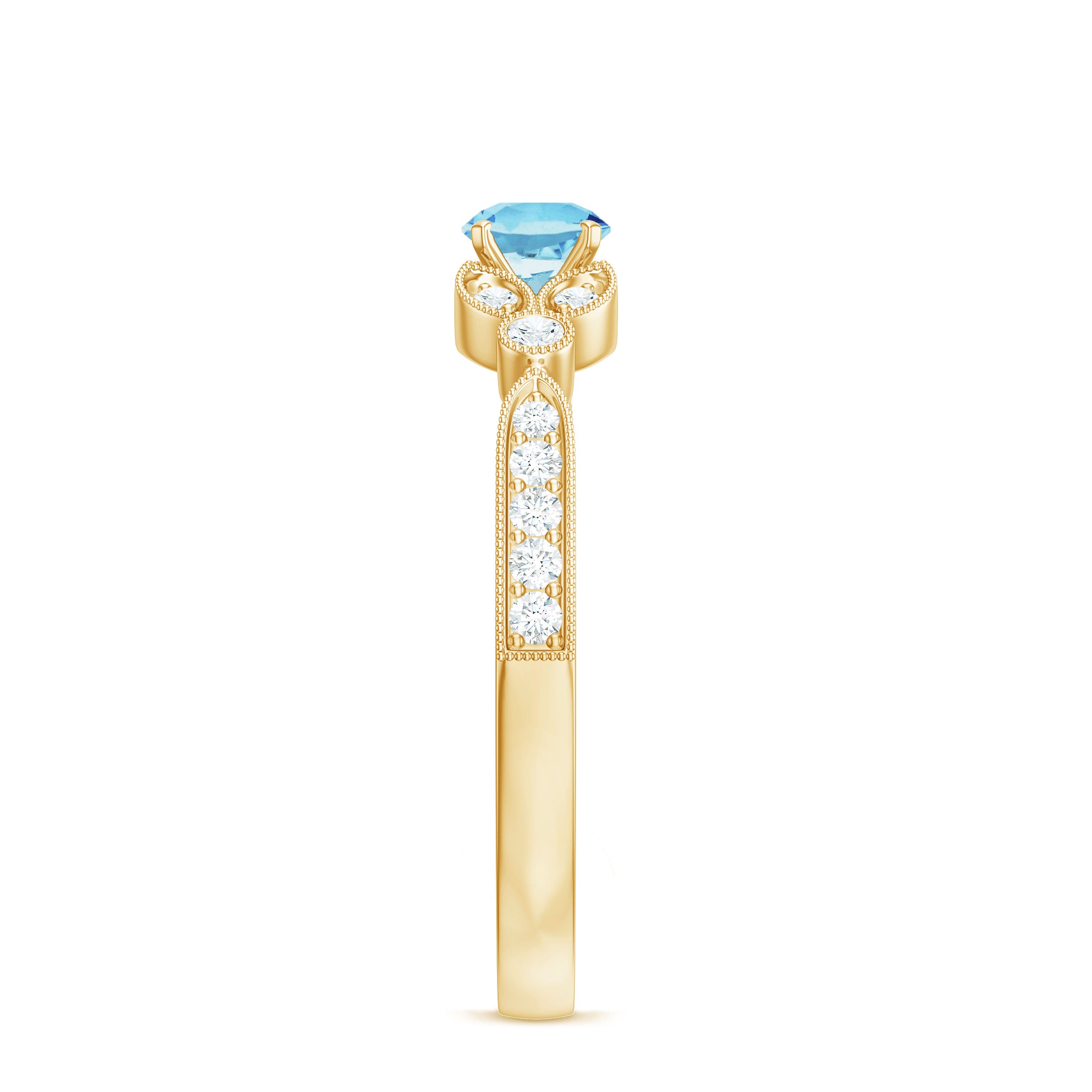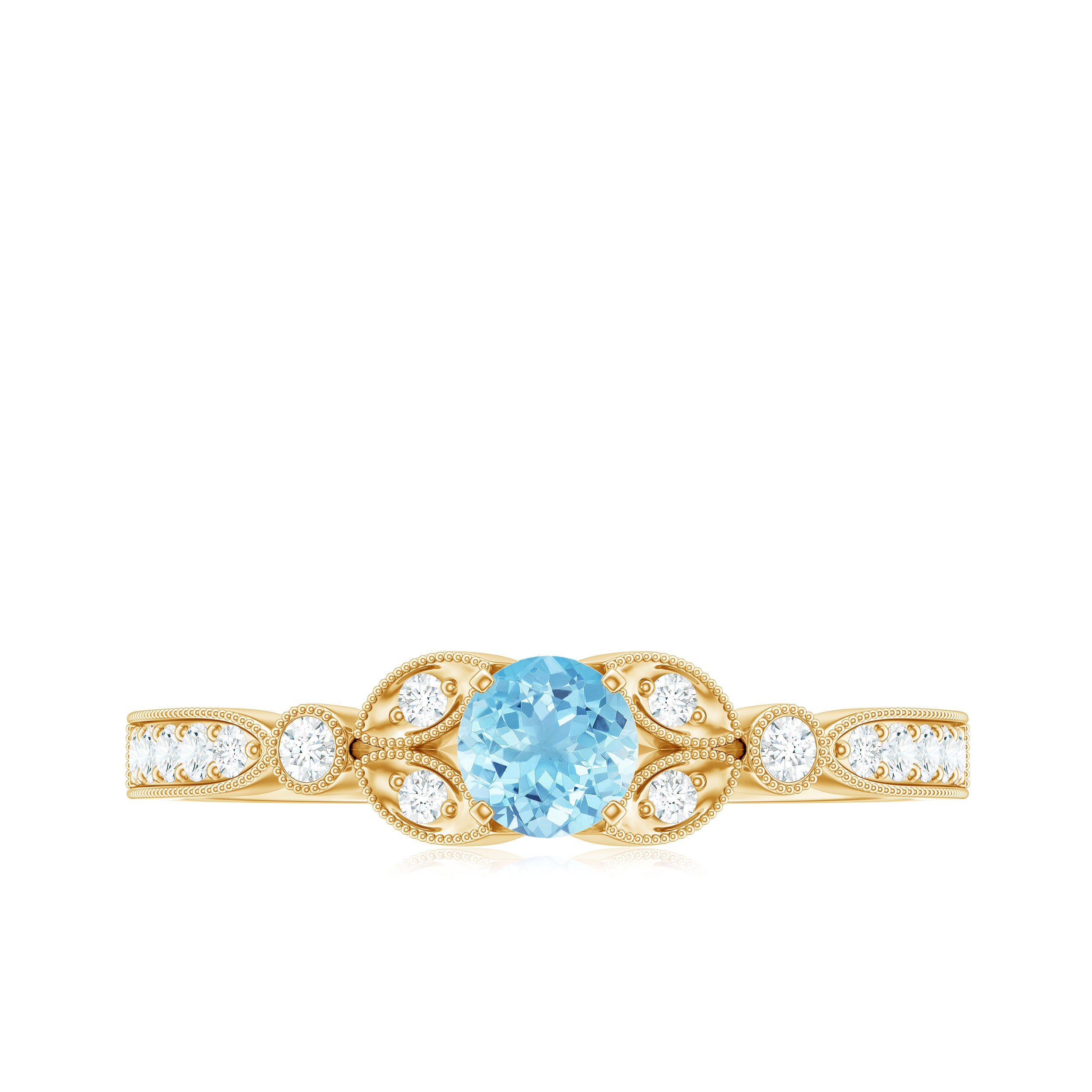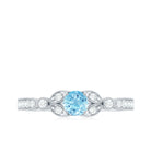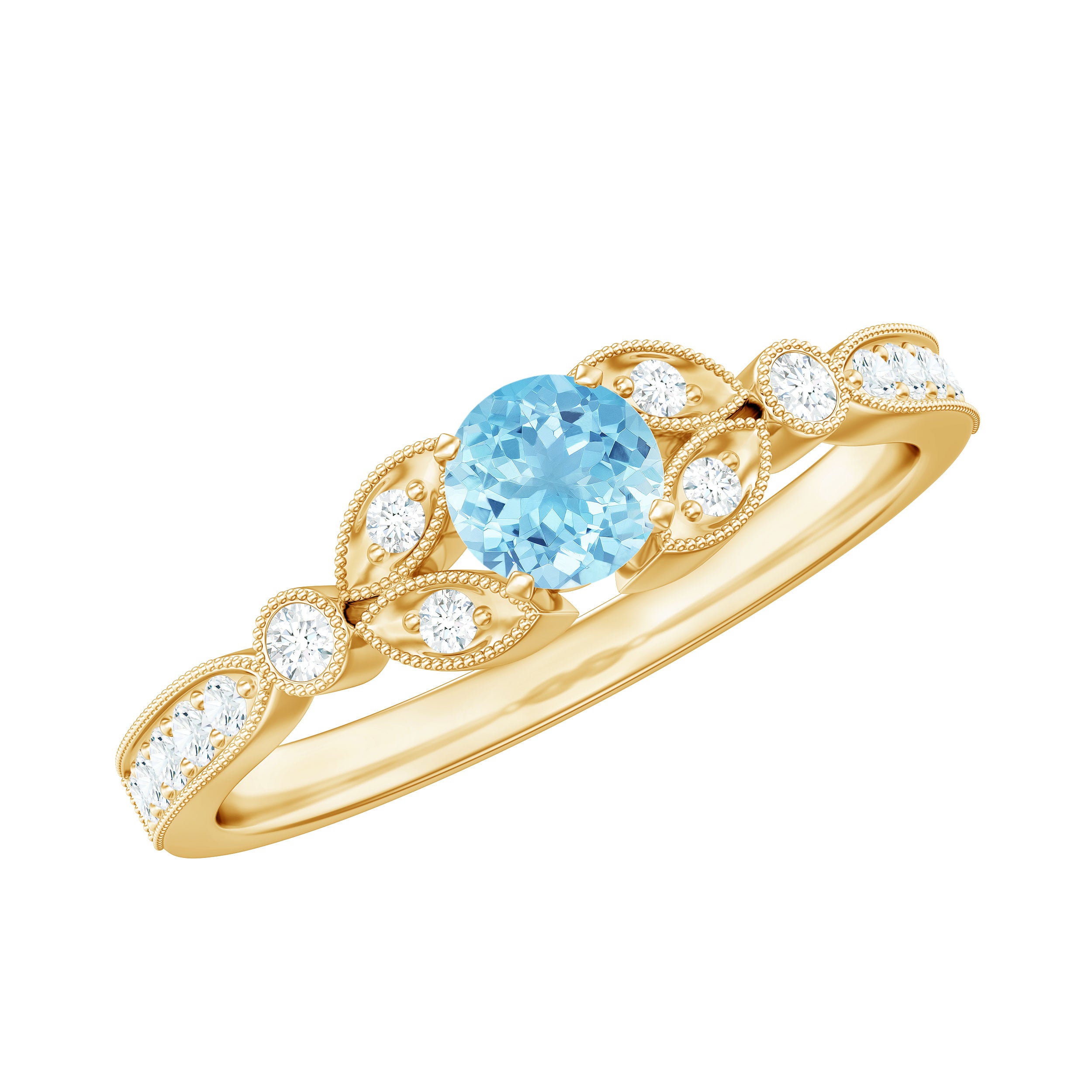 Symbolizing timeless romance and delicate artistry, this Vintage Looking Engagement Ring is a true celebration of enduring love. At its center rests a captivating 6 mm Round Shape Aquamarine gemstone set in Prong Setting, radiating an ocean-blue glow that evokes loyalty and the calm depth of heartfelt devotion. Flanked by sparkling Diamond Side Stones, this Aquamarine Solitaire Ring glimmers with understated elegance, while the intricate Beaded Detailing along the band adds a vintage inspired charm reminiscent of heirloom treasures. Every curve and facet is thoughtfully designed to highlight the natural brilliance of Aquamarine while reflecting a story of romance and timeless beauty. Available in various ring sizes and presented in a signature jewelry box, this Aquamarine Diamond Ring is perfect for proposals, anniversaries or marking any unforgettable moment in your love story. Romantic, graceful and filled with character, this Aquamarine Engagement Ring is a symbol of promise, a reflection of passion and a keepsake that captures the essence of eternal love in every delicate detail.