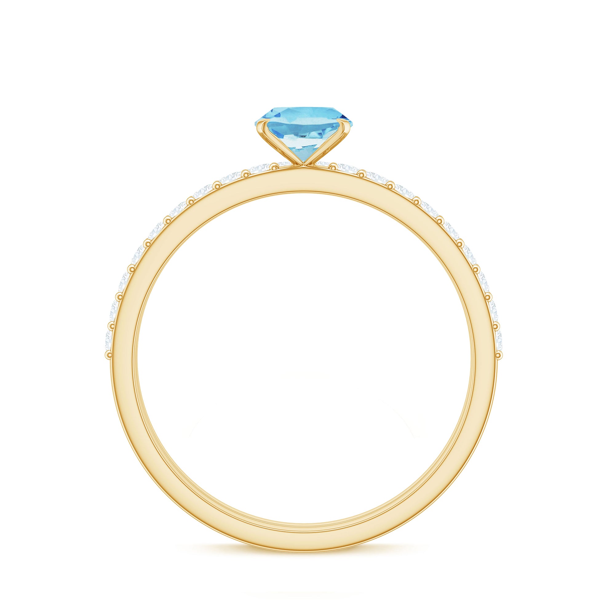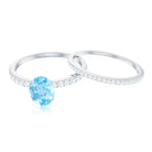 Natural Aquamarine Diamond Oval Engagement Ring with Wedding Band