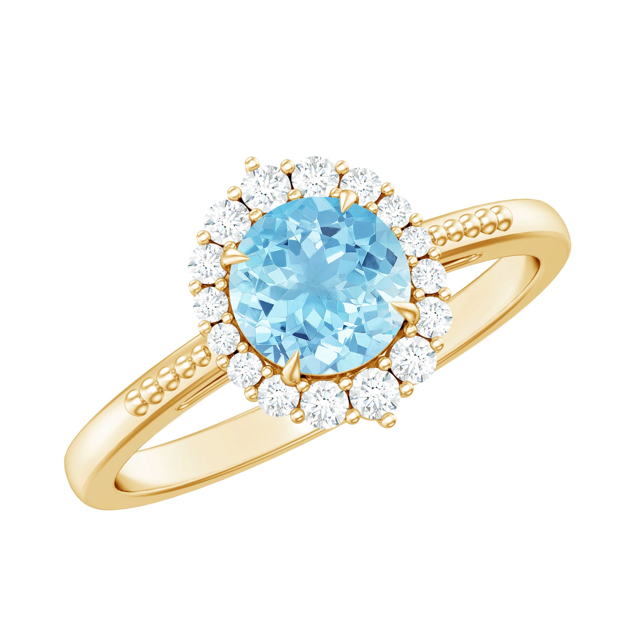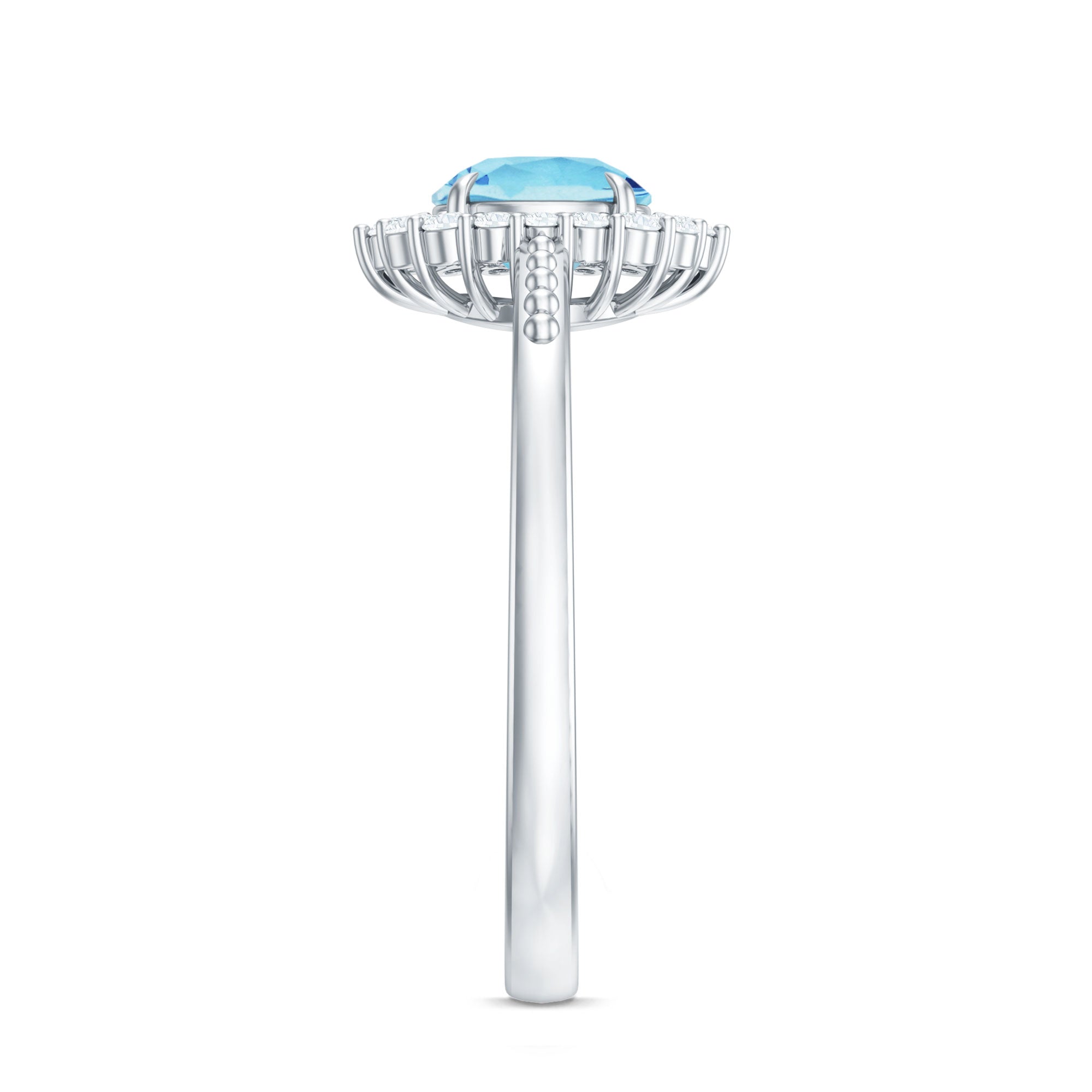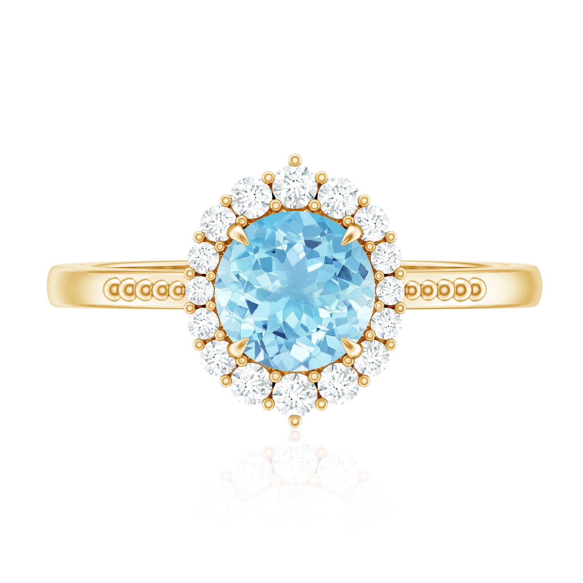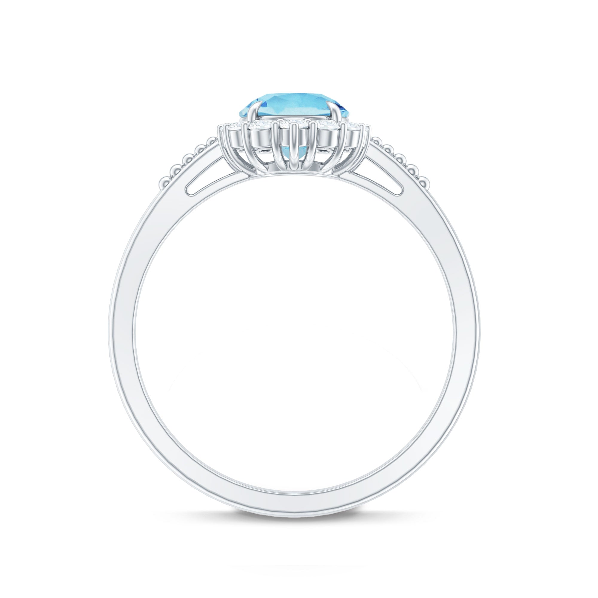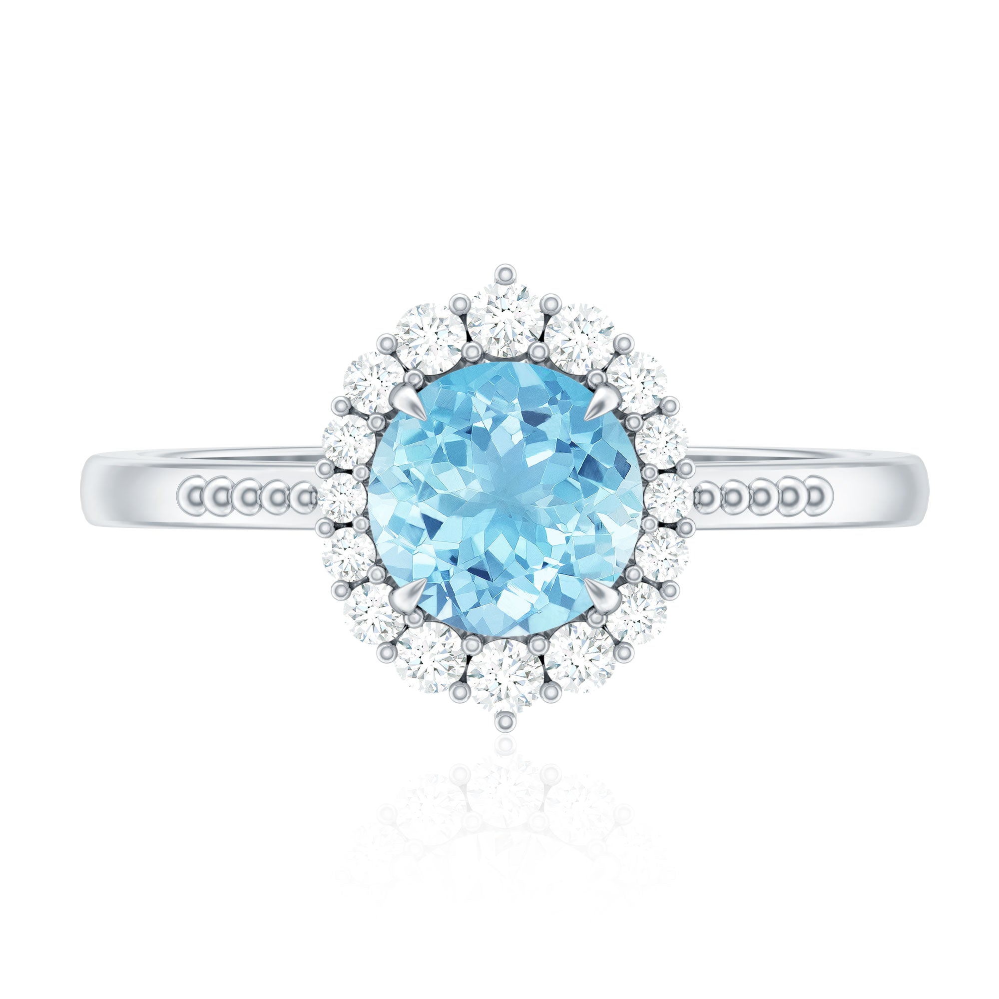 Natural Aquamarine Engagement Ring with Diamond Halo