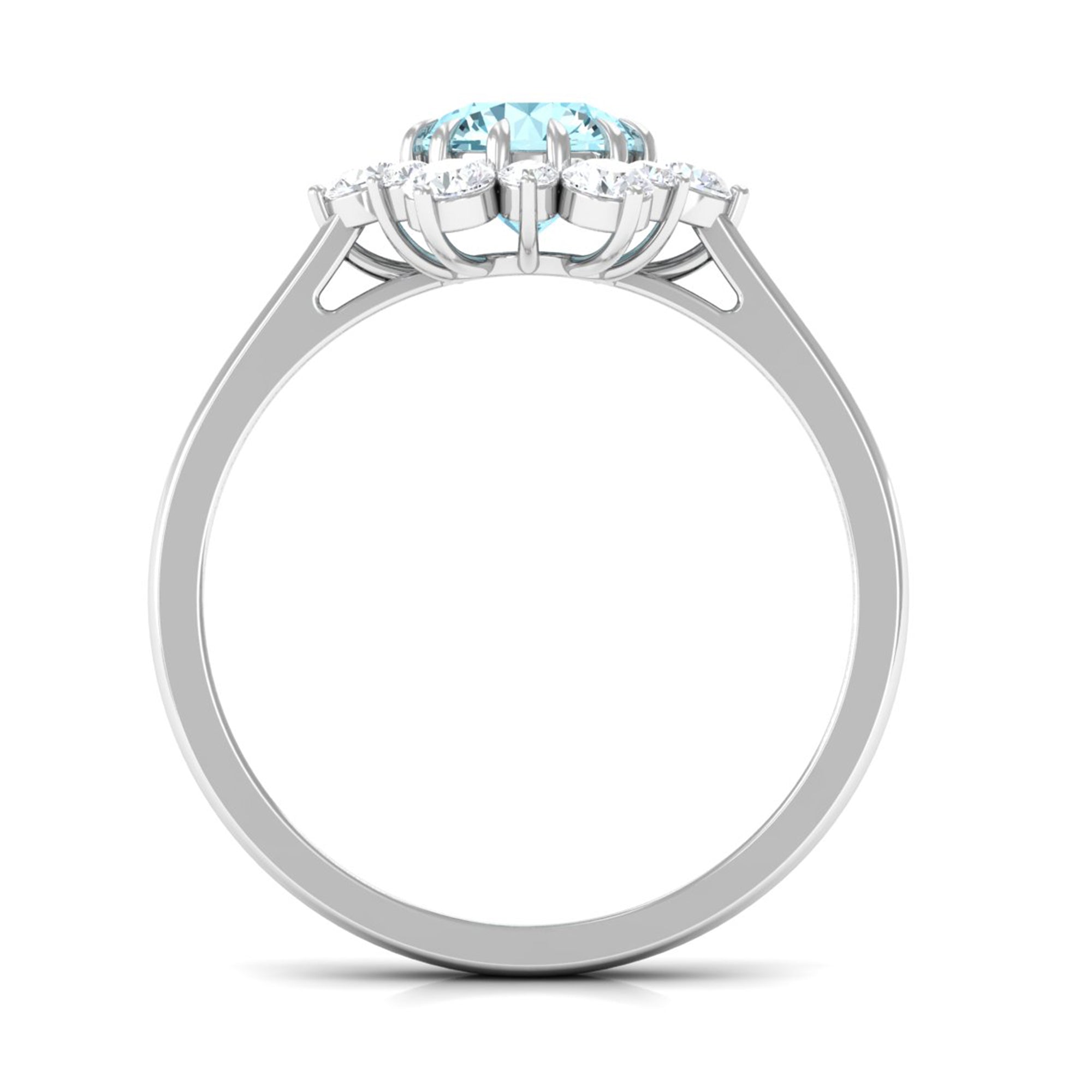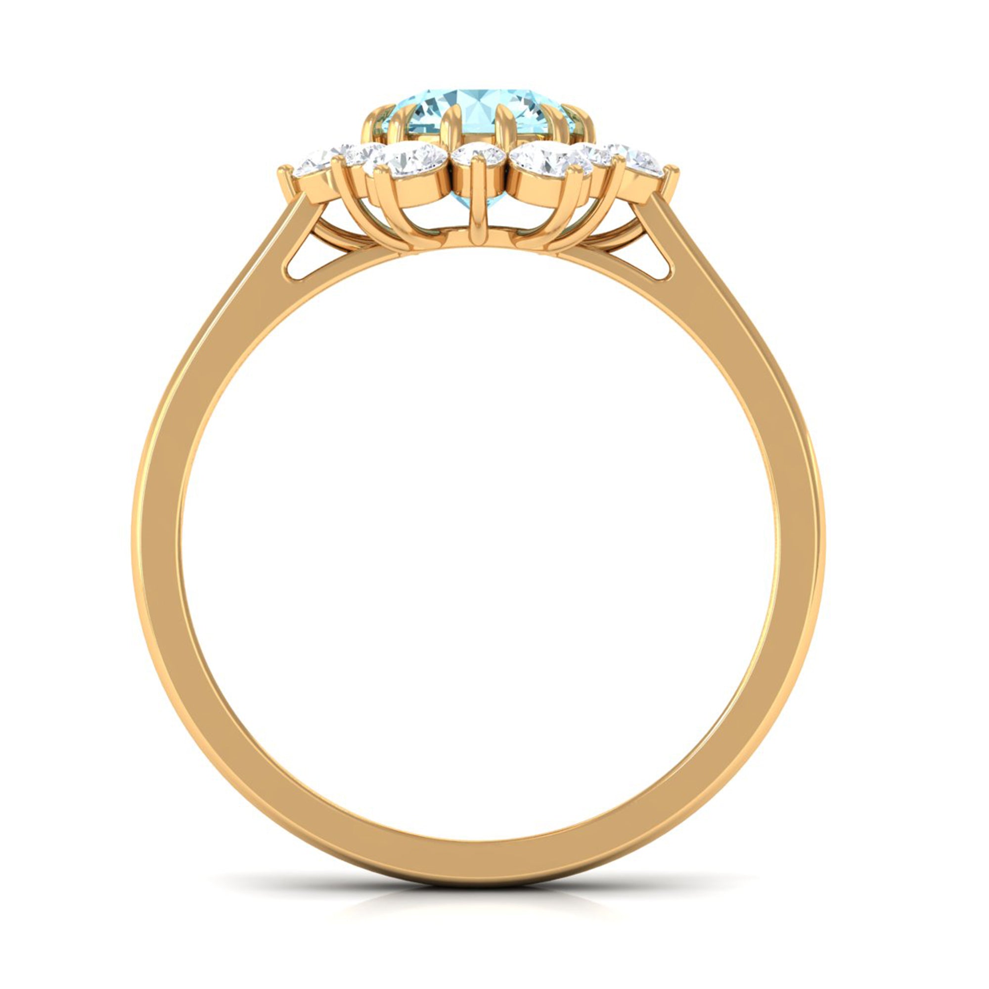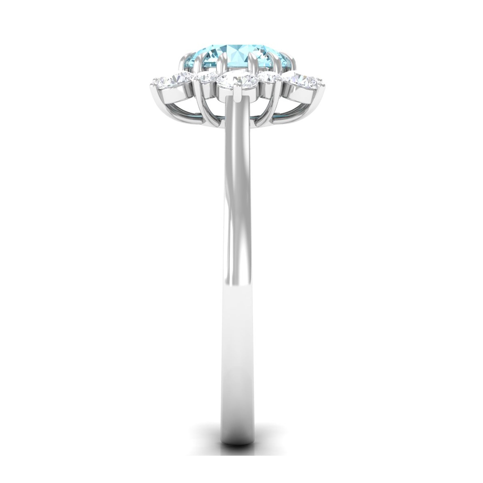 Natural Aquamarine Halo Engagement Ring with Diamond