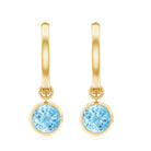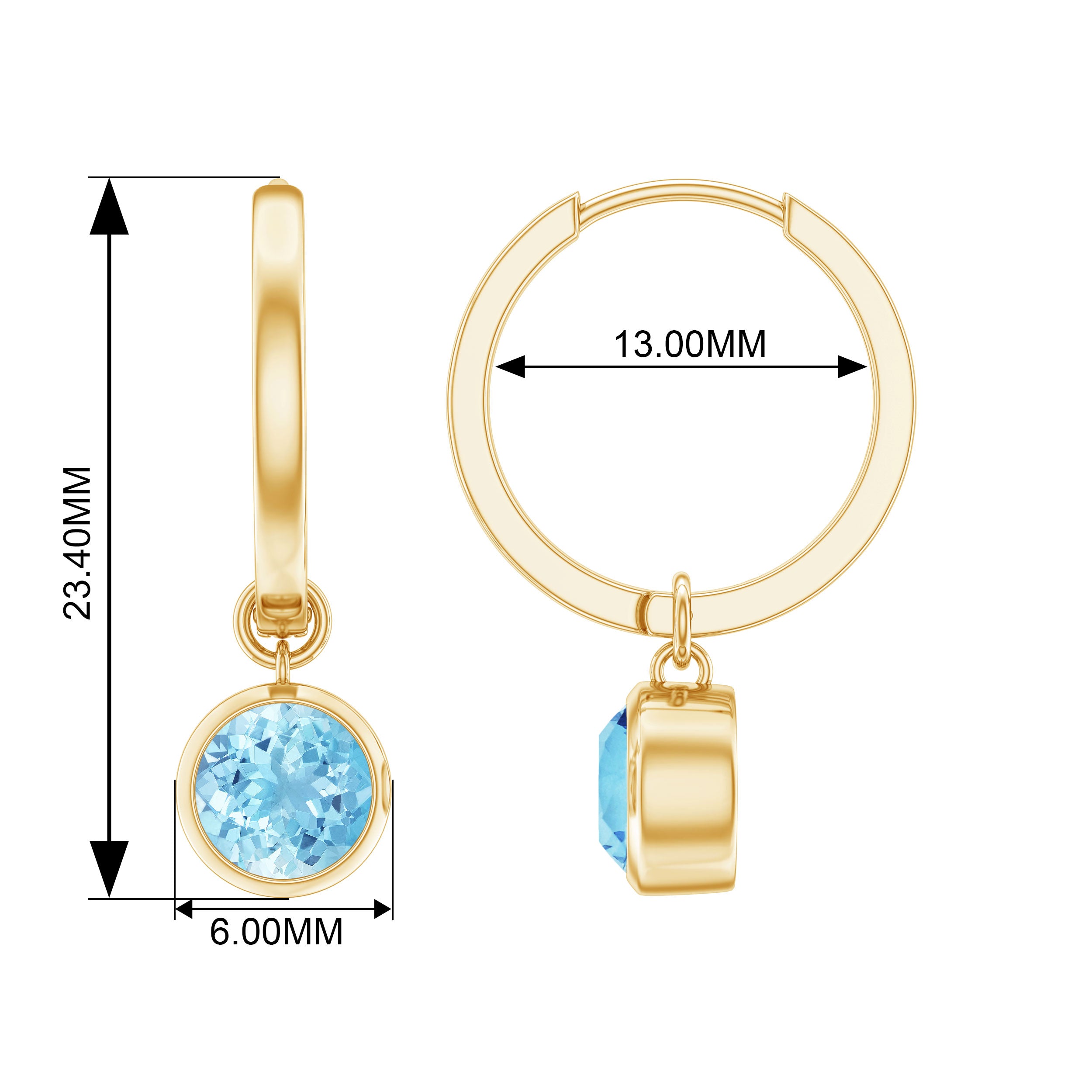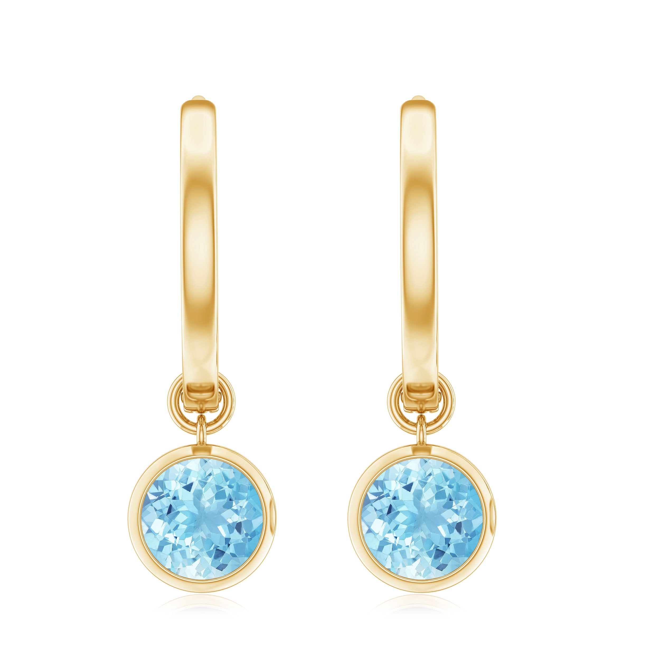 Simply stunning and effortlessly chic, these Aquamarine Drop Earrings are a perfect blend of elegance and modern flair. Featuring 6 mm Round Shape Aquamarine set in Bezel Setting that shimmer with the soft blue hue, these Hoop Drop Earrings are designed to catch the light with every movement. The Hinged Hoop adds a touch of comfort, while the Aquamarine Drop gives them a graceful, dangling look that elevates any outfit. Whether dressing up for a night out or adding a touch of sophistication to a casual day, these Aquamarine Hoop Earrings bring a fresh pop of color and sparkle to your style. The cool blue hue of the AAA Quality Aquamarine makes these Hinged Hoop Earrings versatile enough to wear with office outfits or casual dress. Presented in a signature jewelry box, these March Birthstone Earrings are a thoughtful gift for someone special or a well-deserved treat for yourself.