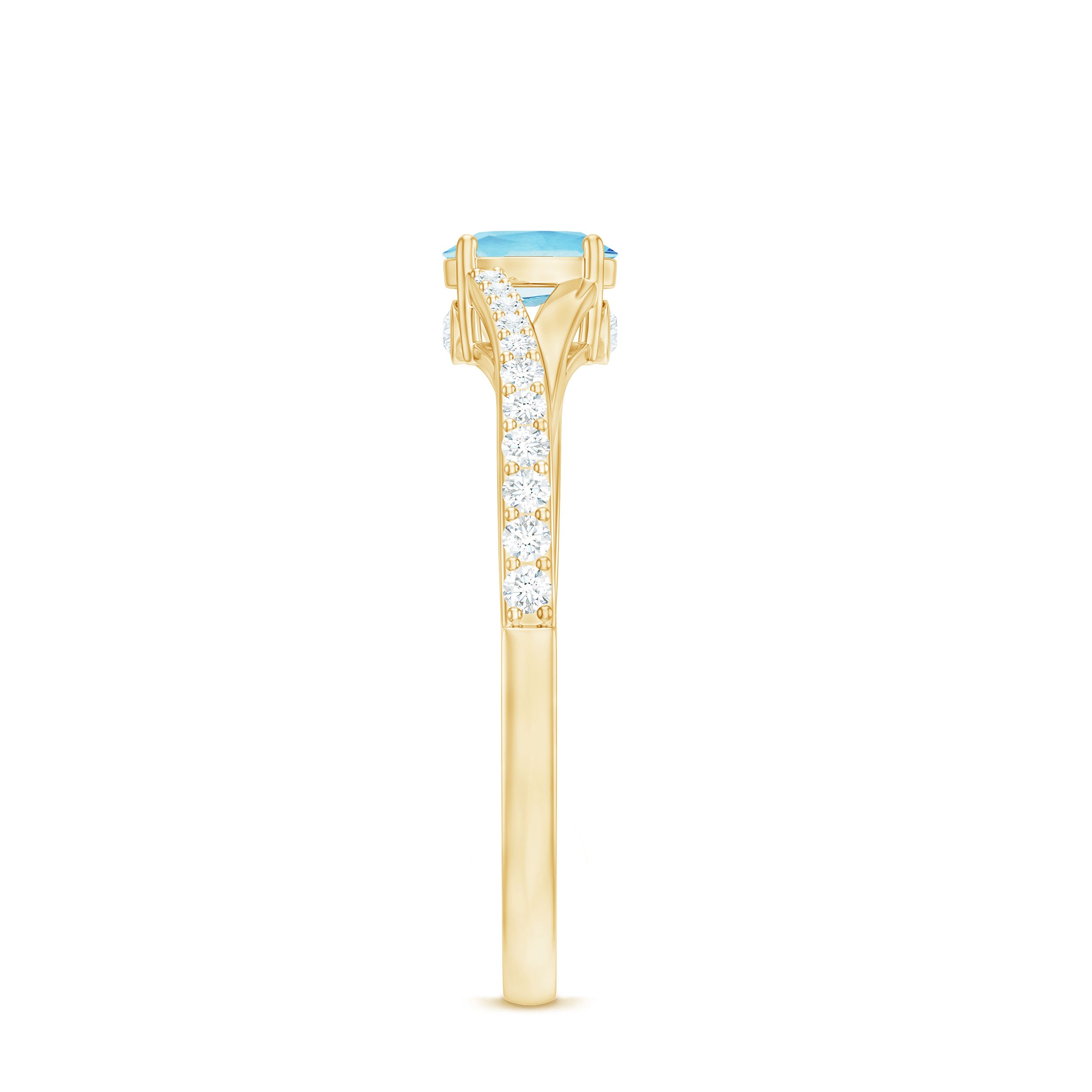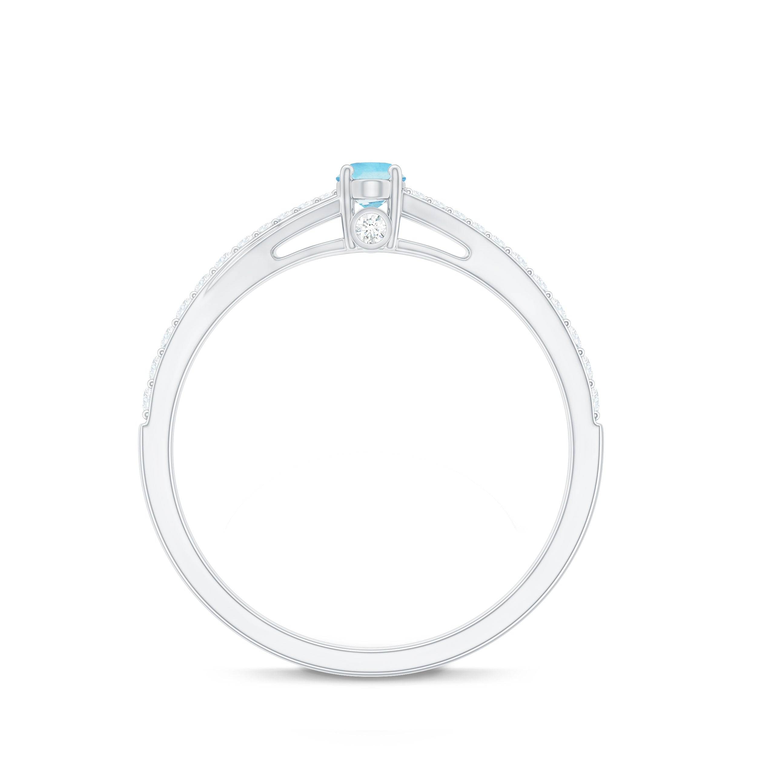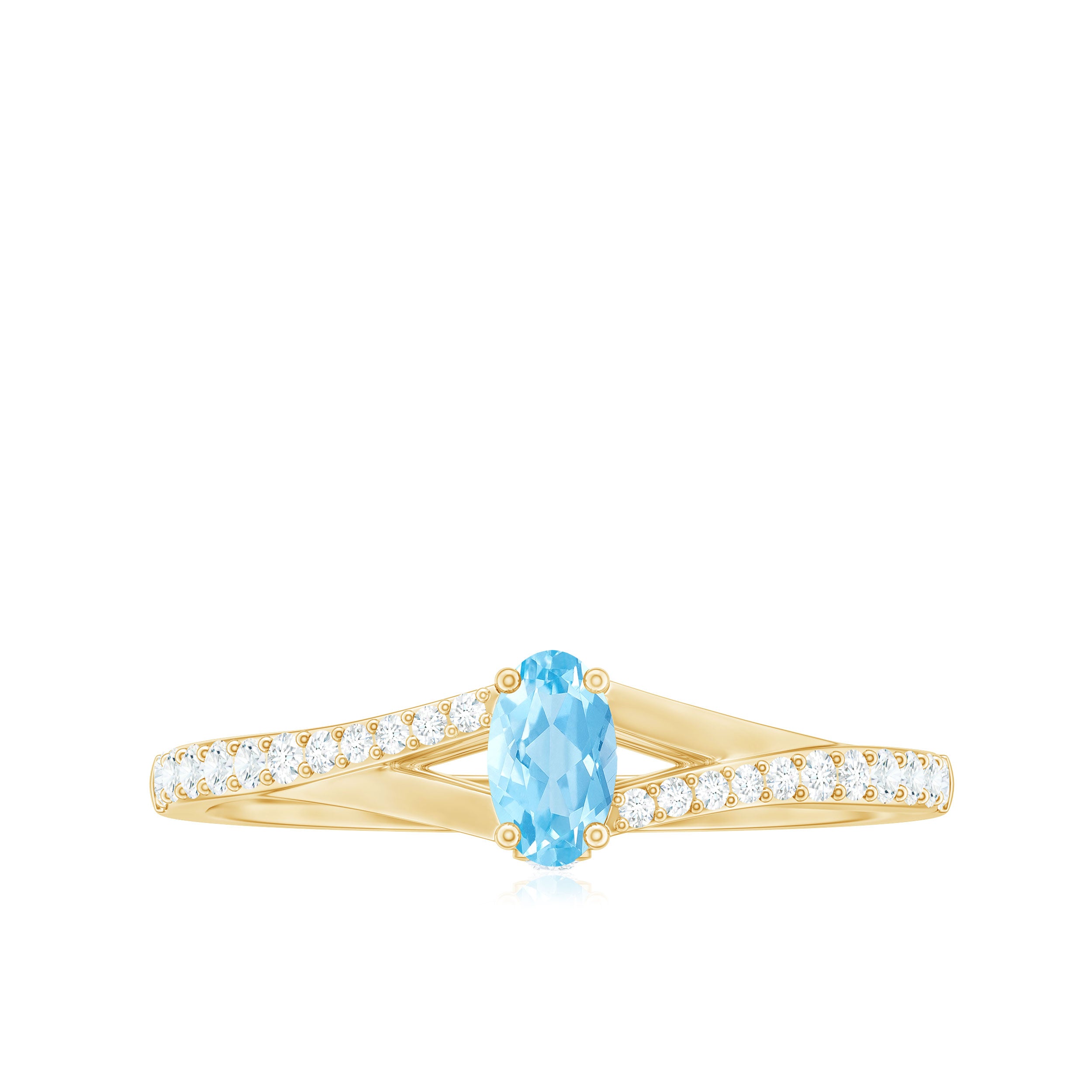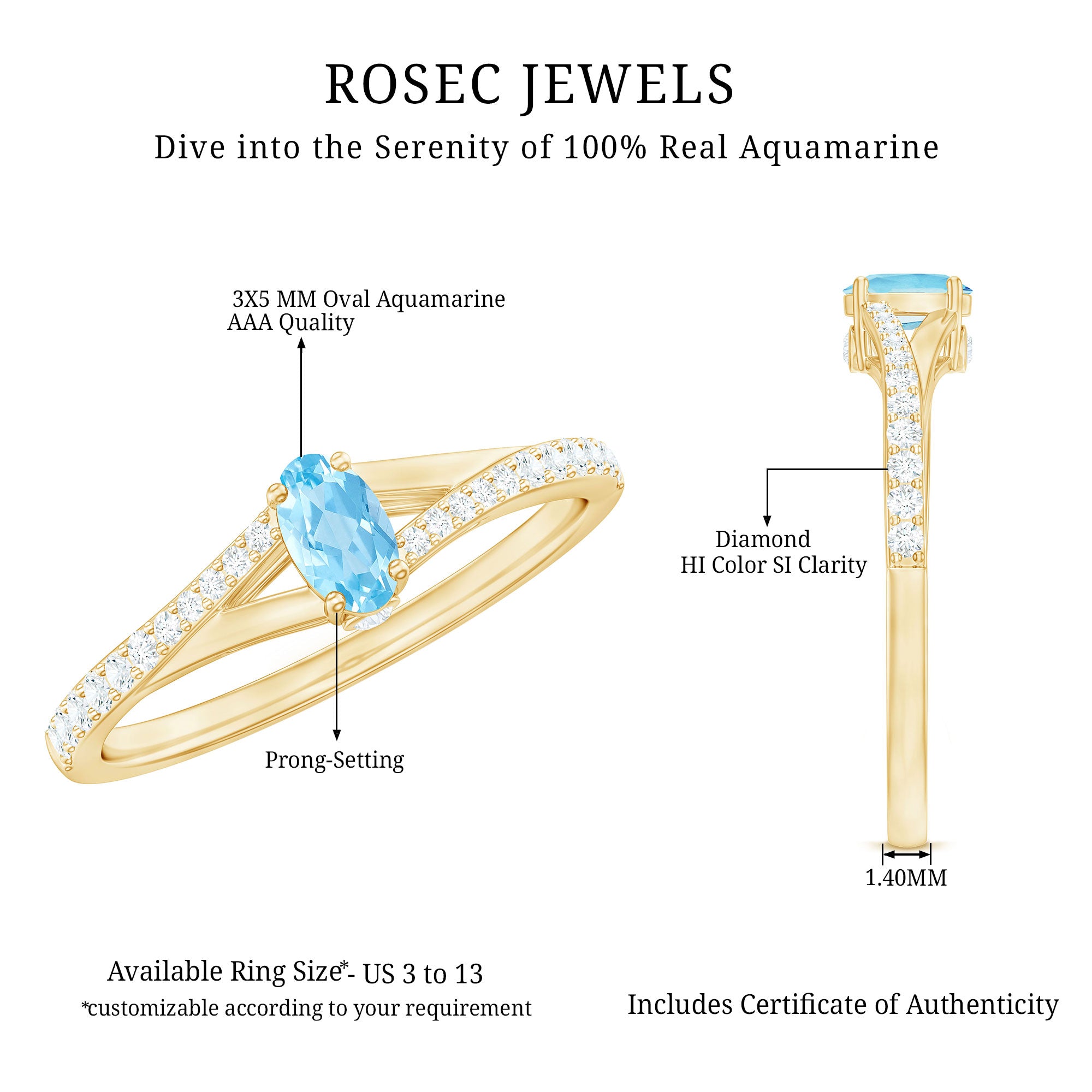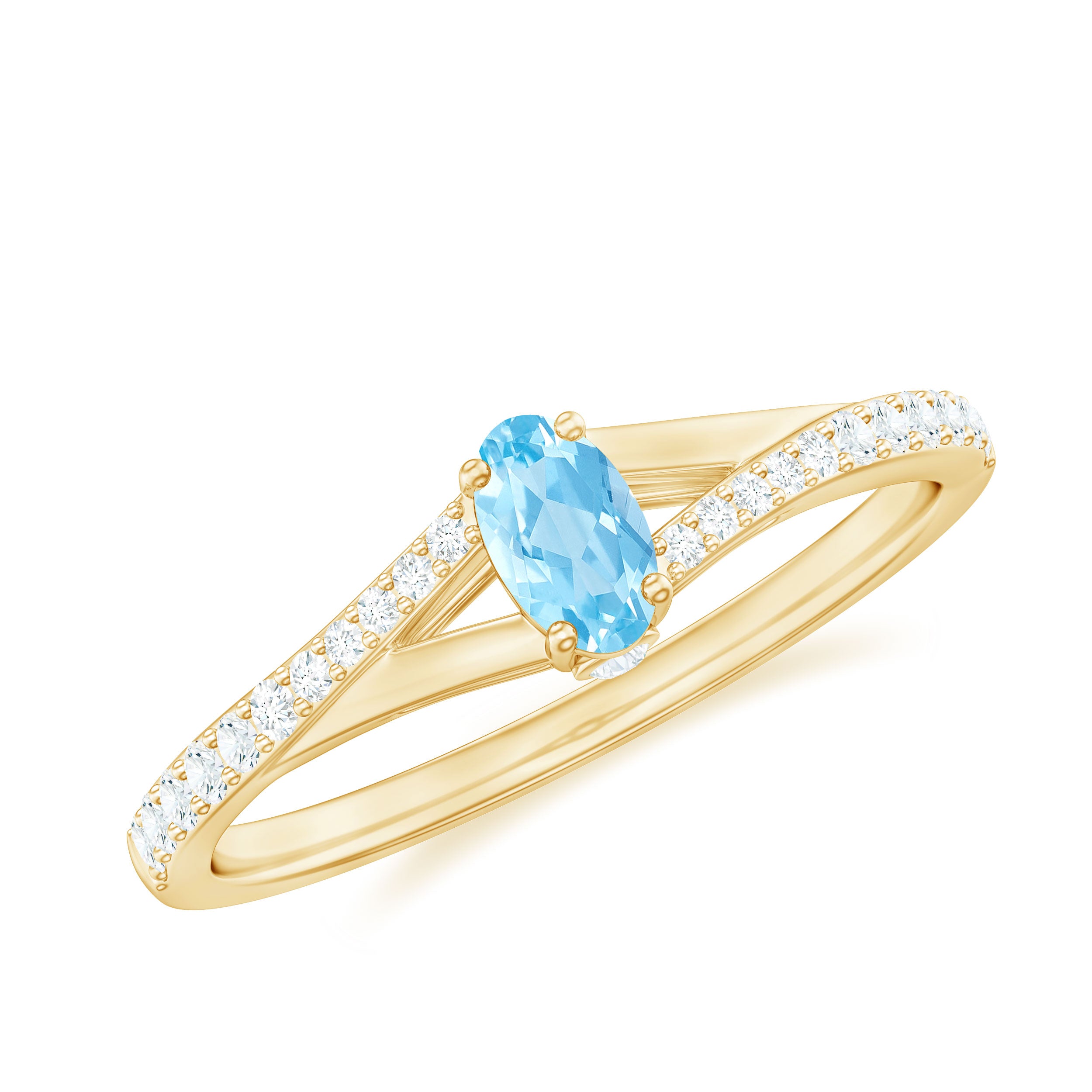 Natural Aquamarine Promise Ring with Diamond Split Shank