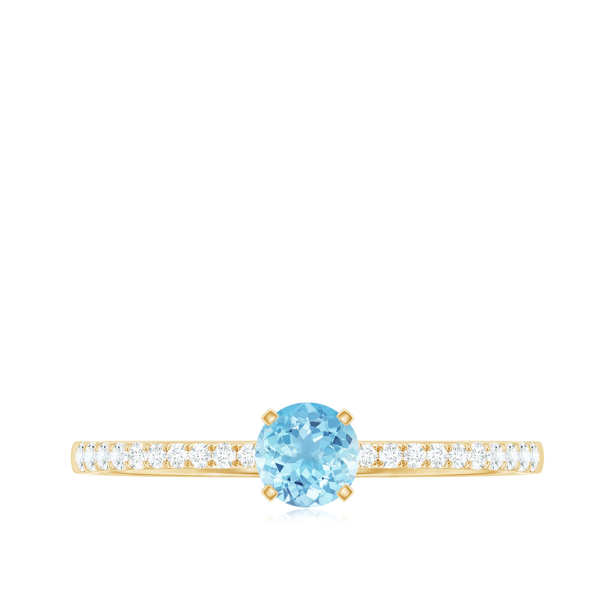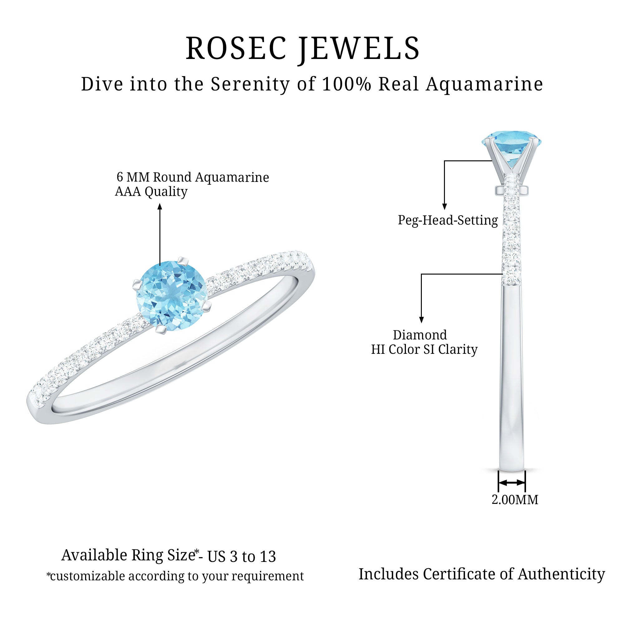 This breathtaking Solitaire Ring features an Aquamarine gemstone as a center stone flanked with sparkling Diamond gemstones. A symbol of everlasting love.