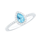 Natural Aquamarine Teardrop Engagement Ring with Diamond Halo