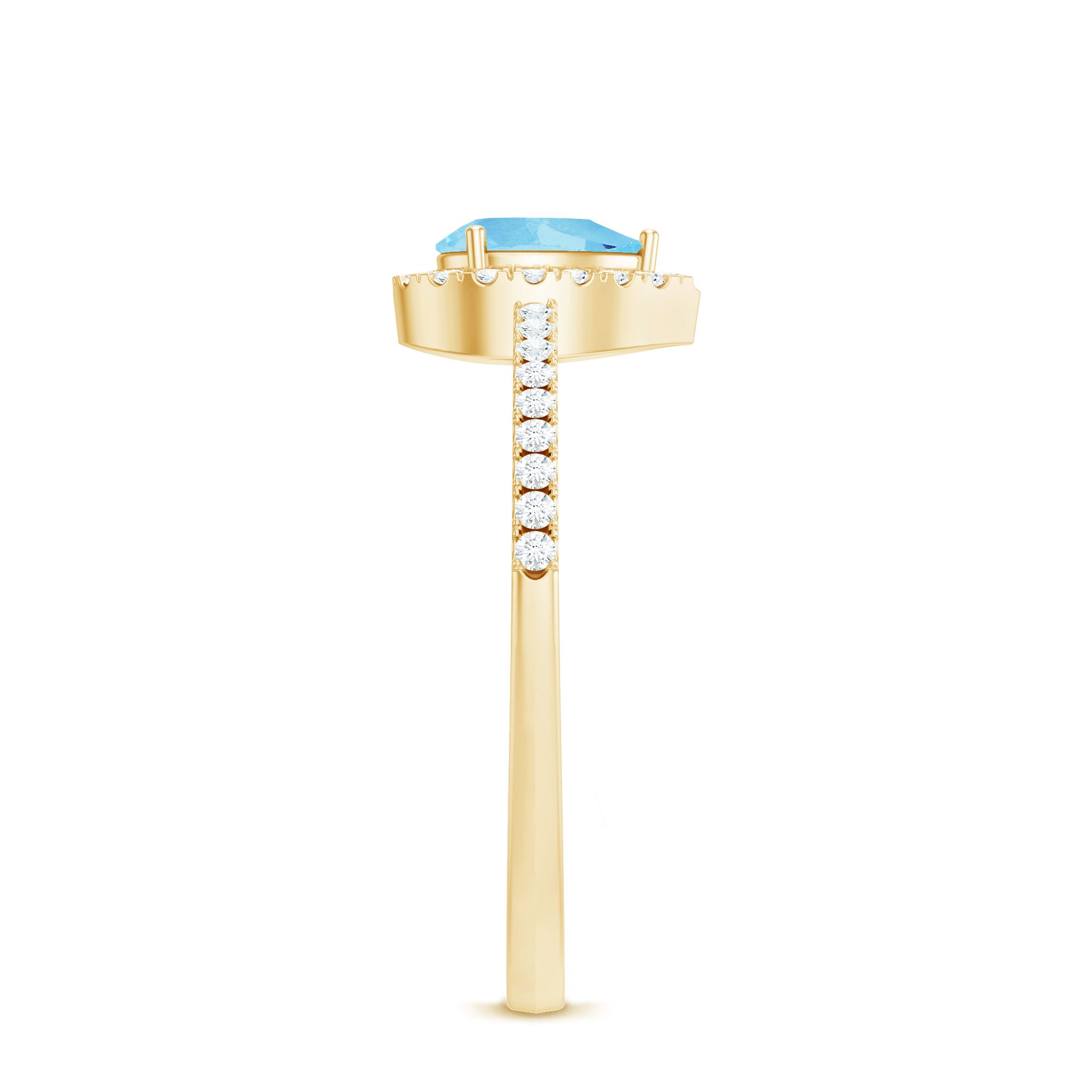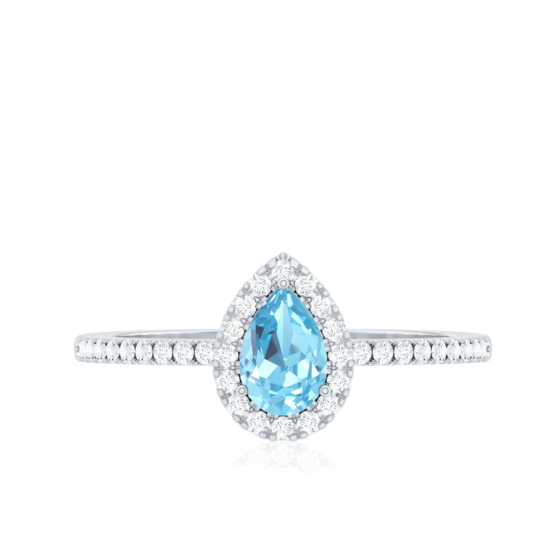 Embark on a journey of love and elegance with this Teardrop Engagement Ring, a breathtaking symbol of devotion and timeless beauty. At its center, a 4X6 mm Pear Shape Aquamarine set in 3 Prong Setting glows with serene blue brilliance, evoking the depth of a love that flows endlessly. Encircling the center stone, a Halo of sparkling Diamond stones enhances its radiance, while delicate Side Stones along the band add an extra touch of shimmer, creating a ring that captivates from every angle. The teardrop elegantly elongates the finger, offering a graceful and feminine appeal that blends modern sophistication with classic charm. Perfect for proposals, anniversaries or marking milestones in your love story, this Aquamarine Diamond Ring is a keepsake of commitment, a tangible reminder of promises made and cherished. Available in various sizes, this Pear Shaped Engagement Ring arrives in a signature jewelry box, ready to gift and destined to become a treasured piece.