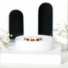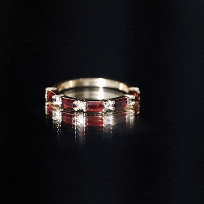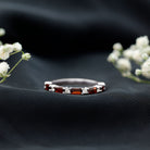 This Half Eternity Ring is a perfect symbol of your everlasting love, combining timeless elegance with modern flair. The striking arrangement of Baguette Shape Garnet gemstones, paired with sparkling Round Shape Diamond stones, creates a dazzling contrast that captures attention from every angle. Set in the East West style, the stones are laid horizontally across the band, giving this Garnet Diamond Ring a unique and contemporary twist. The half eternity design ensures a comfortable fit without sacrificing sparkle. Whether you are celebrating an anniversary or marking a special occasion, this Baguette Garnet Ring serves as a beautiful reminder of the strength and depth of your bond. Available in a range of sizes and presented in a signature jewelry box, this Red Garnet Ring is ready to make your milestone moments unforgettable.