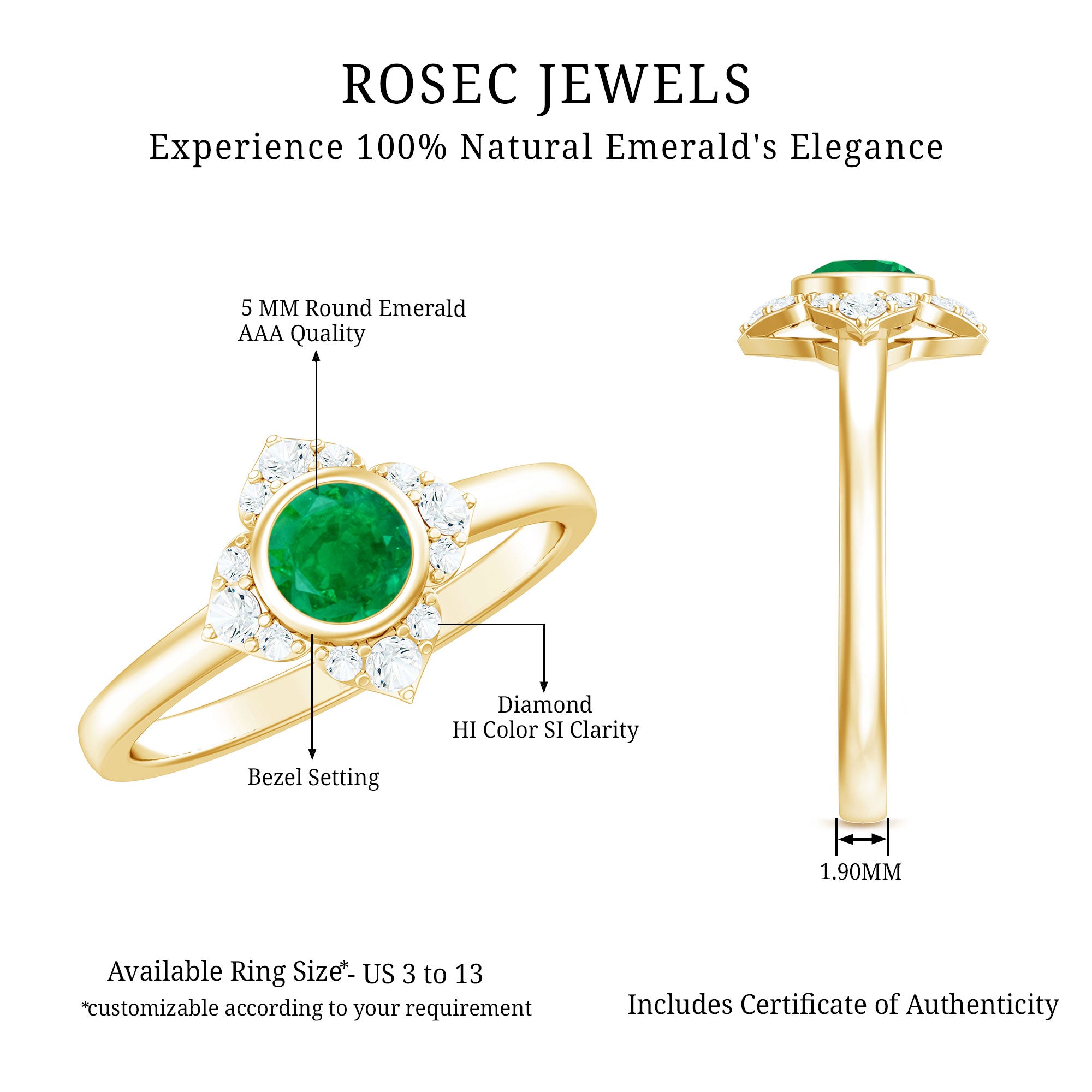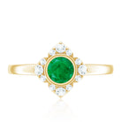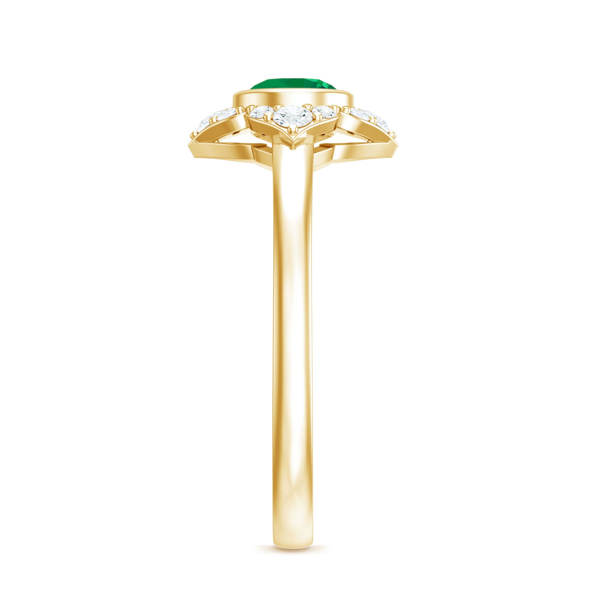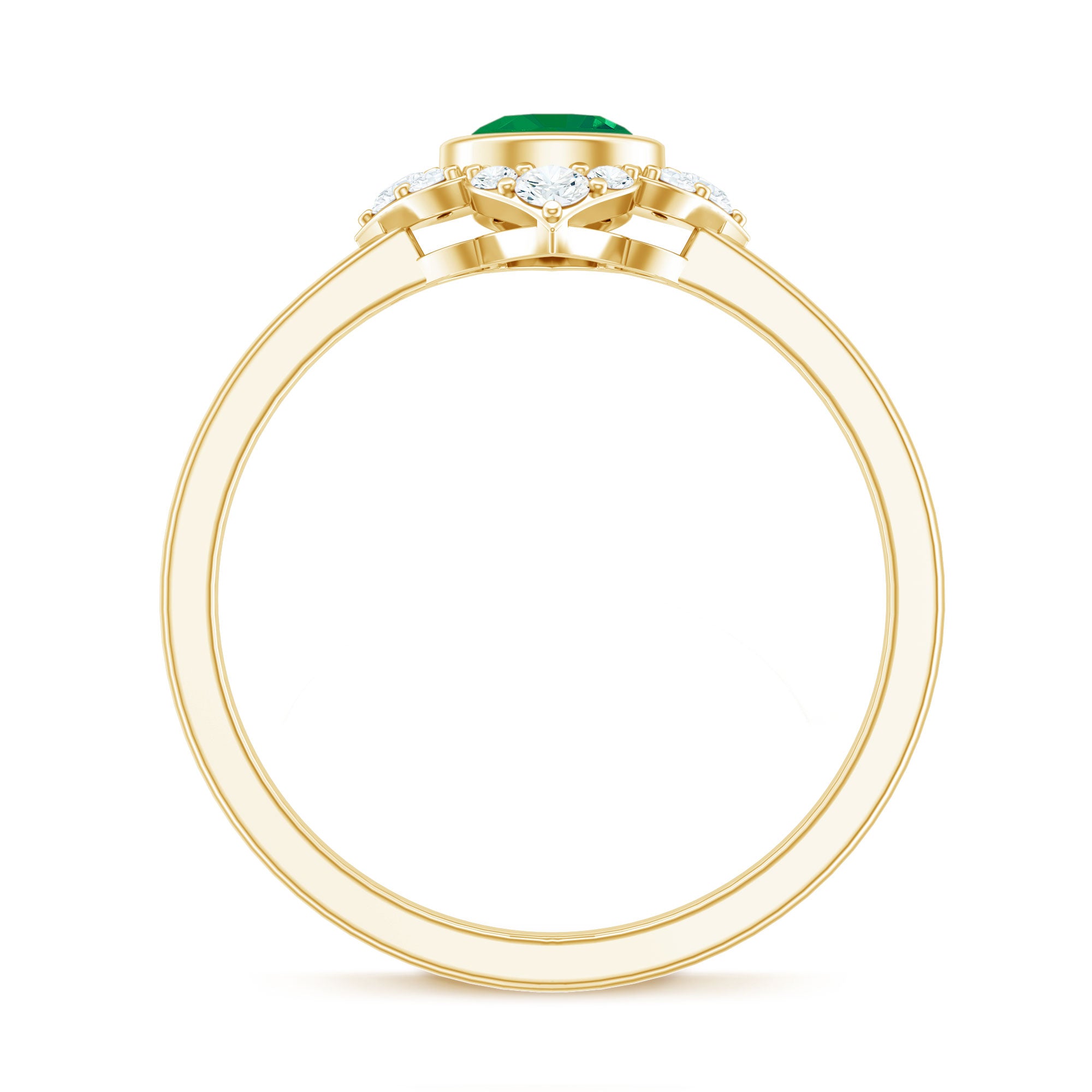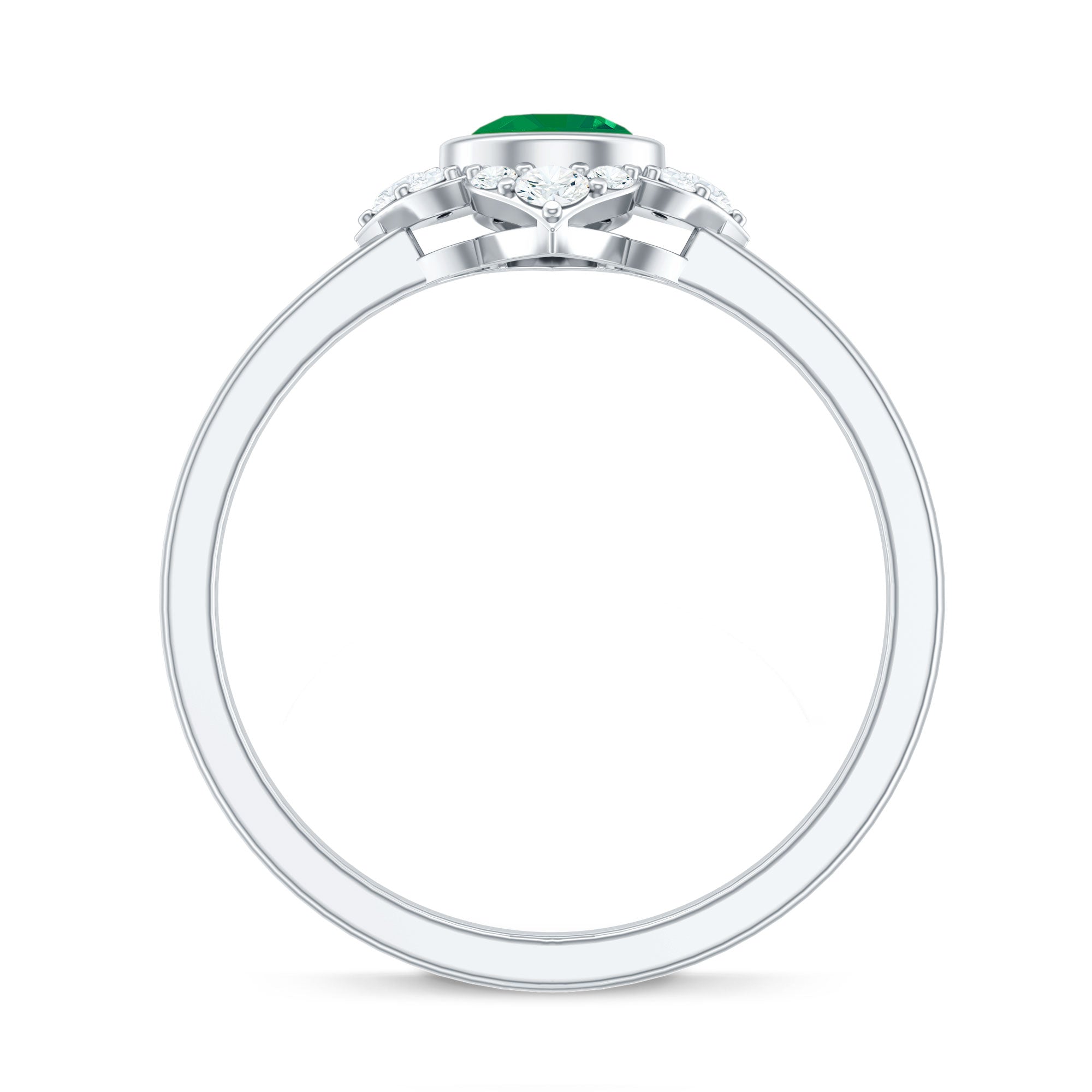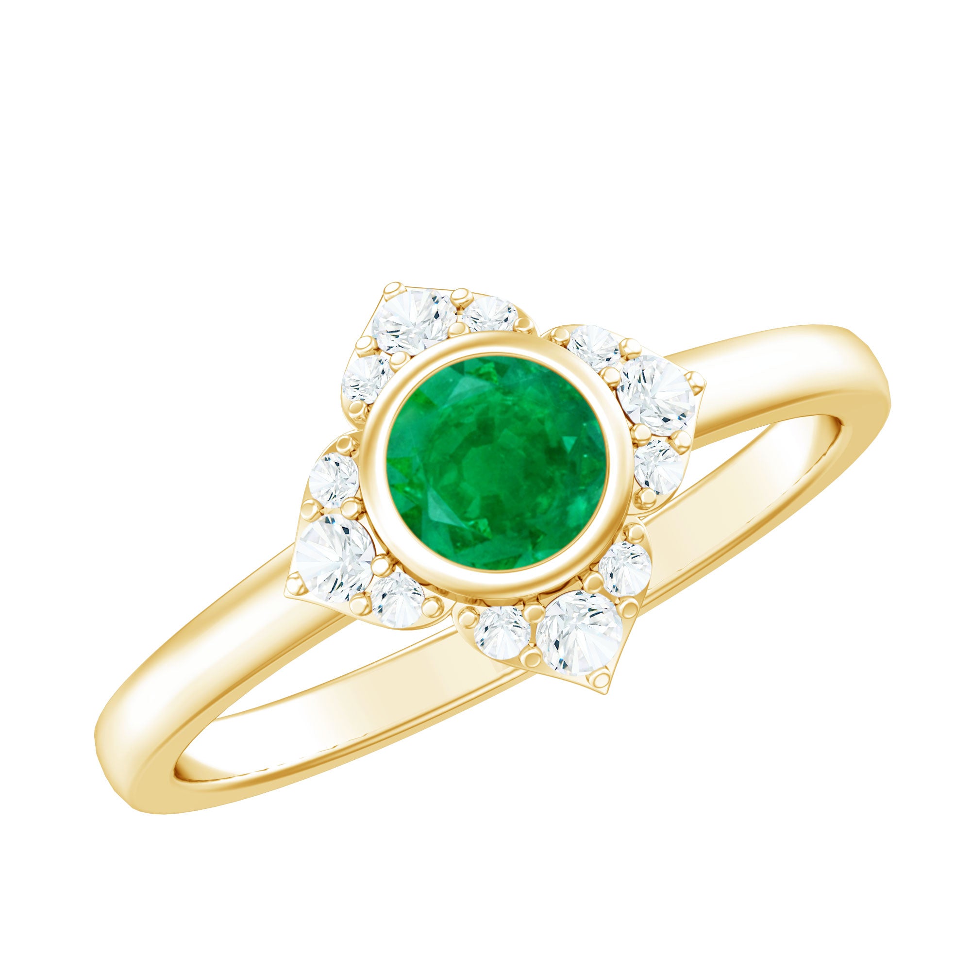 Natural Bezel Set 5mm Emerald Flower Engagement Ring with Diamond