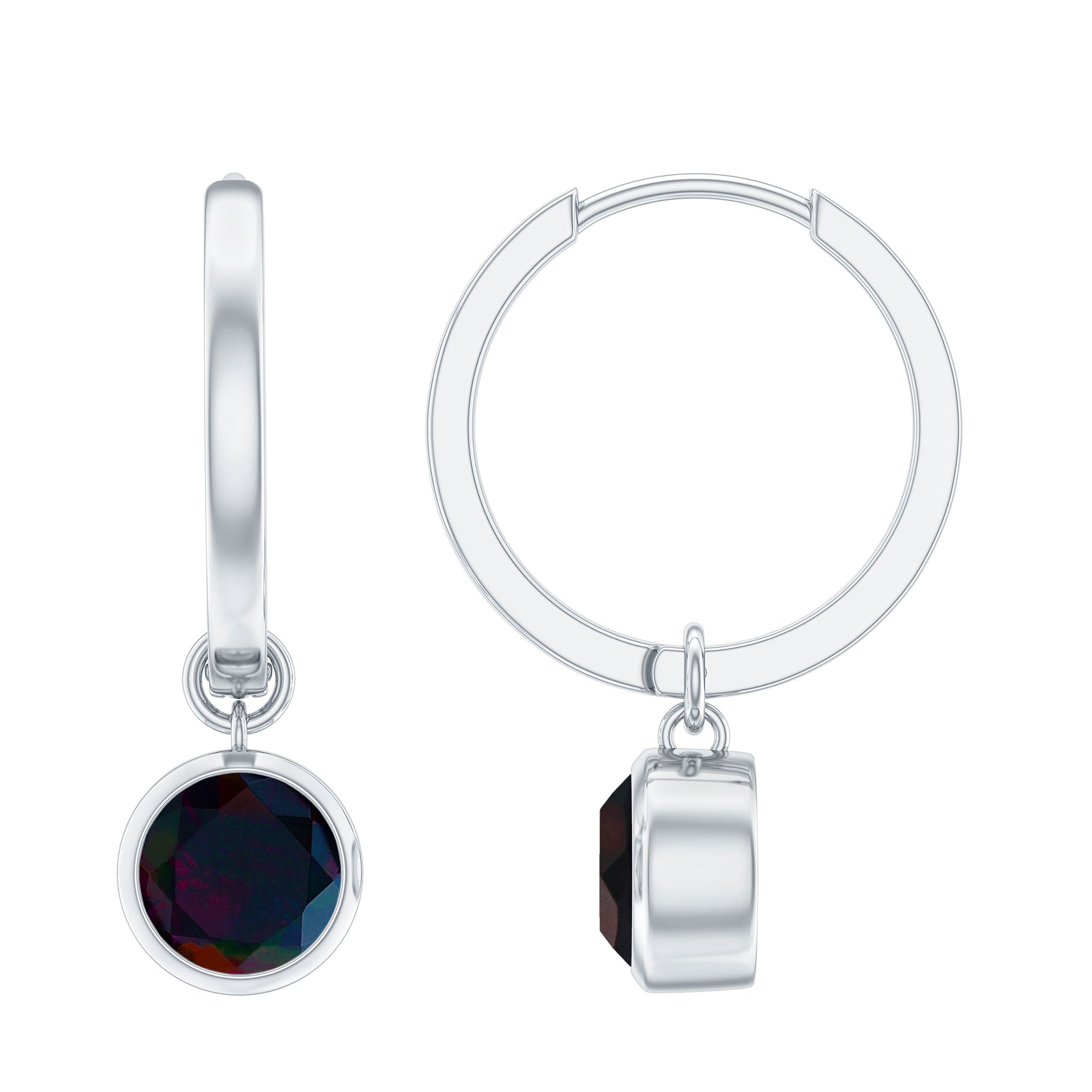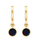 Natural Bezel Set Black Opal Dangle Hoop Earrings For Women