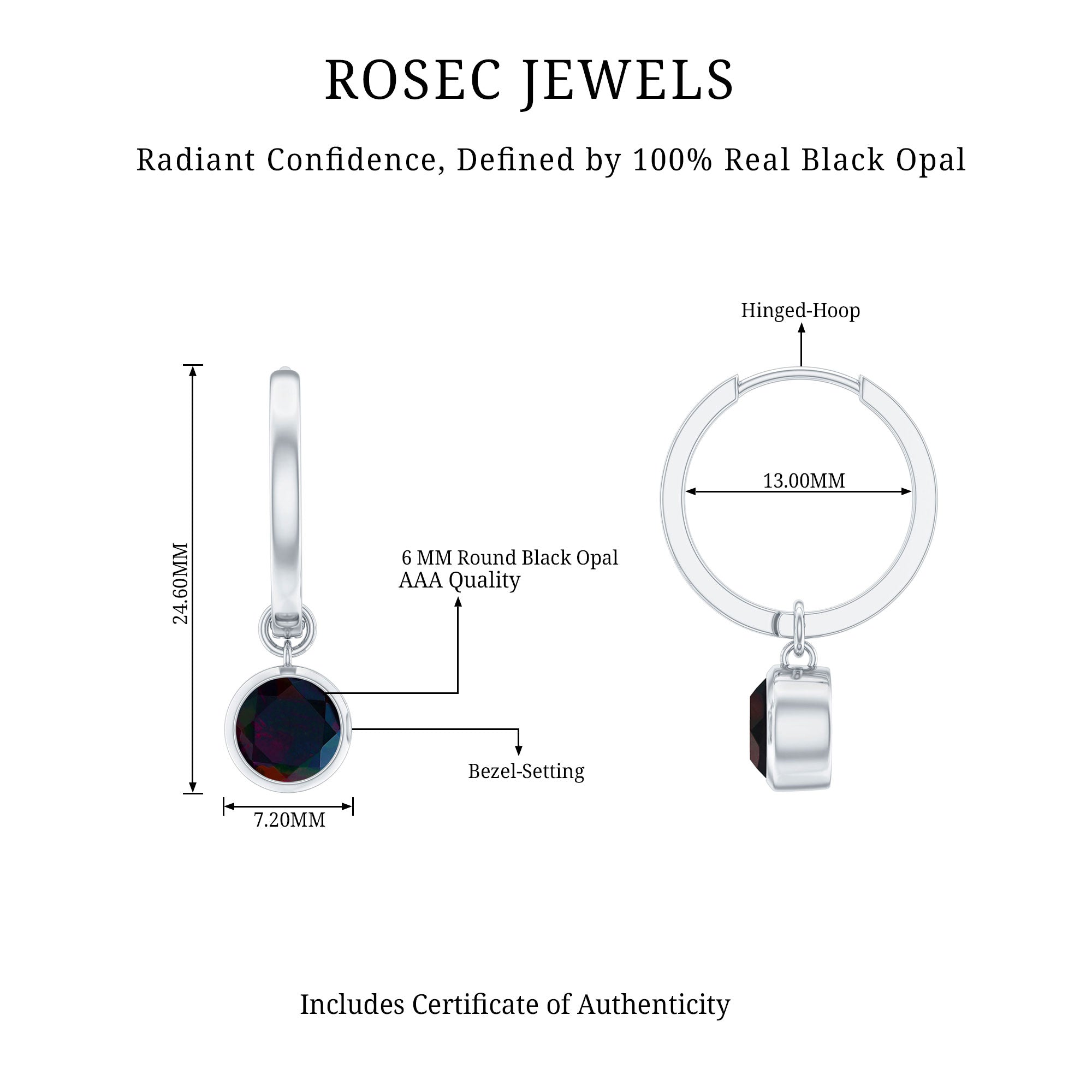 Timeless and effortlessly elegant, these Black Opal Earrings are designed to add a touch of magic to every look. Each Hoop features a luminous 6 mm Round Shape Black Opal in Bezel Setting that dangles gracefully, capturing light from every angle. The Hinged design ensures a secure and comfortable fit, making these Hoop Drop Earrings perfect for all-day wear or special occasions. Their versatile style allows them to pair beautifully with anything, from chic workwear to evening dresses, casual weekends, or a night out. Thoughtfully crafted, these Opal Drop Earrings combine classic sophistication with a modern, playful twist, making them a unique addition to any jewelry collection. Ready to gift and presented in a signature jewelry box, they make a meaningful surprise for birthdays, anniversaries, holidays or moments when you simply want to show someone how much they mean.