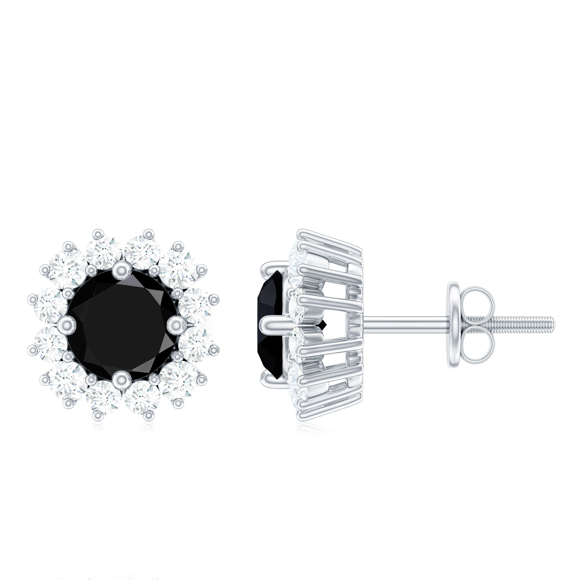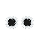 Natural Black Diamond Everyday Stud Earrings with Moissanite Halo