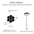 Natural Black Diamond Flower Cluster Ring in Prong Setting