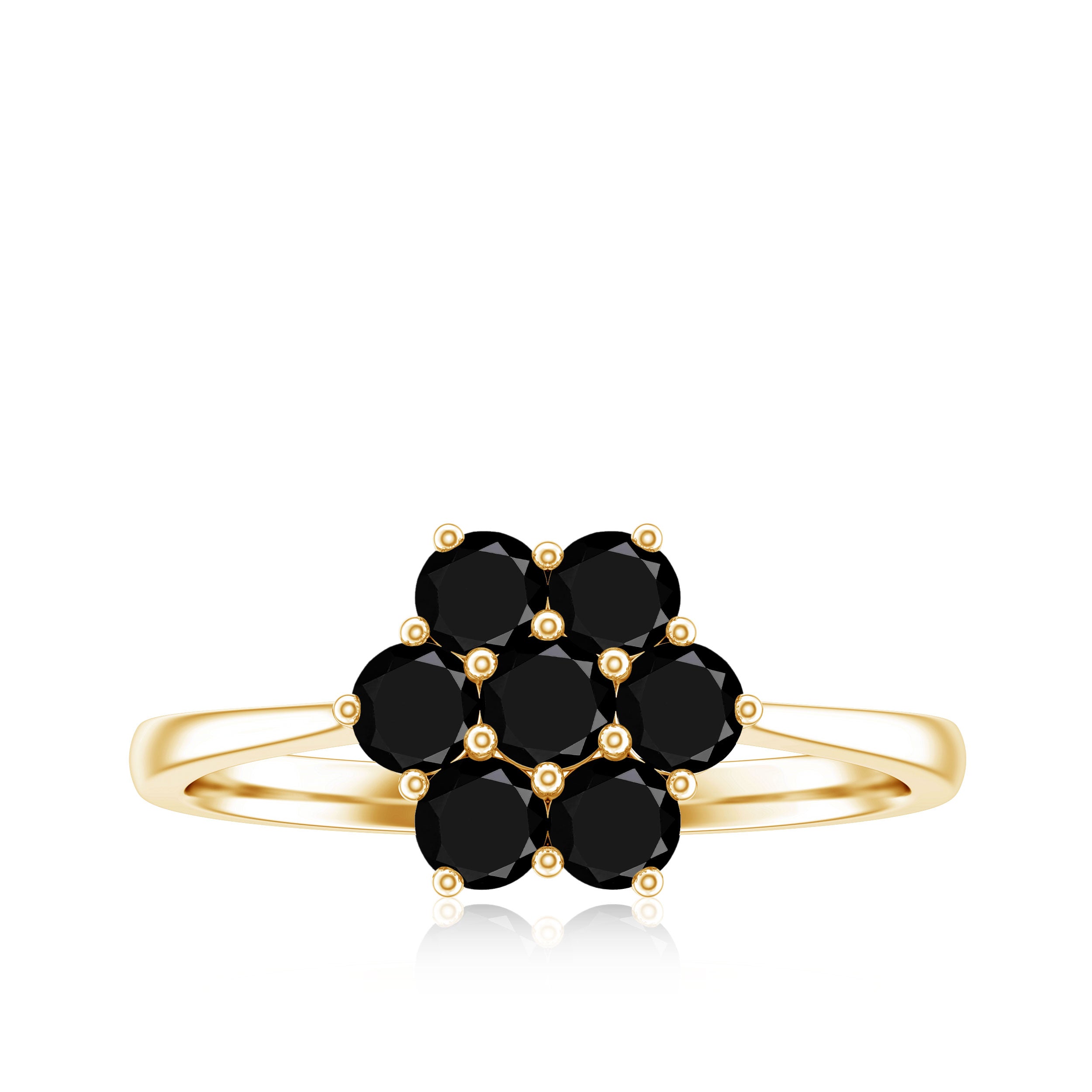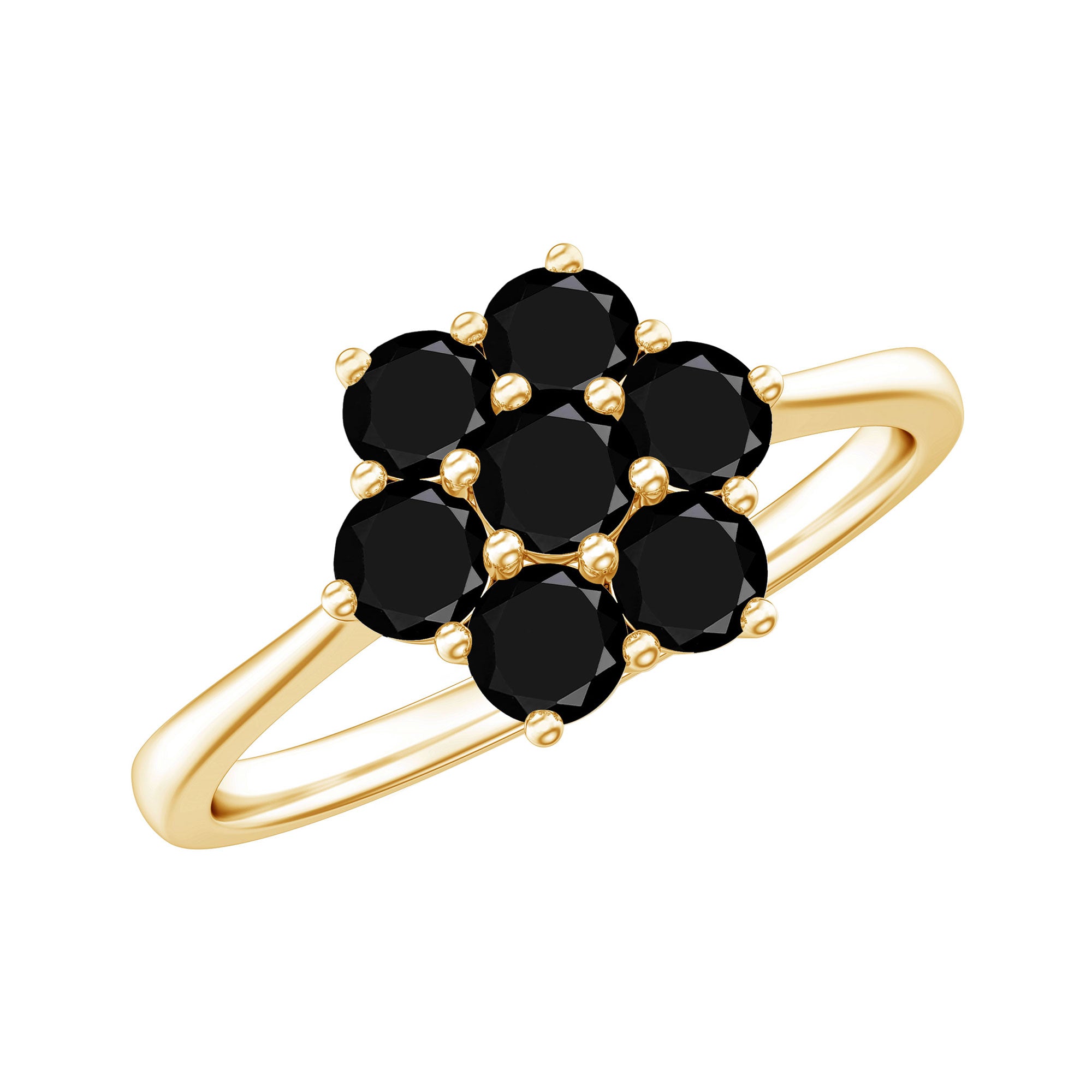 Embrace the charm of this Flower Cluster Ring, where the brilliance of Black Diamond blooms in floral arrangement, captivating hearts with its alluring beauty.