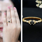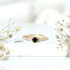 Natural Black Diamond Vintage Inspired Promise Ring with Moissanite