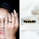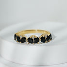 Step away from the ordinary with this striking Black Onyx Wedding Band that brings contrast and balance to your jewelry collection. Designed with a creative mix of shapes and colors, it is made to stand out in a subtle, refined way. This elegant Half Eternity Band features alternating pear shaped black onyx gemstones and round diamonds, giving it a rhythm and flow that feels both modern and classic. The deep black of the onyx contrasts beautifully with the clear shine of the diamonds, creating a look that is bold. Each stone is set in prong setting to keep the design secure and smooth against the finger. Whether paired with other rings or worn solo, this Black Onyx Stacking Ring adds a stylish edge to your look. It is an easy choice for everyday wear and also elegant enough for special moments. Made with AAA quality black onyx and HI-SI quality diamonds with expert craftsmanship, this piece offers durability along with beauty. The contrasting stones and smooth band make it a ring you will reach for again and again. For those who love a monochrome style with a touch of creativity, this black onyx and diamond ring is the perfect fit.