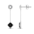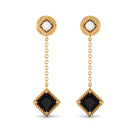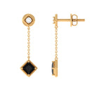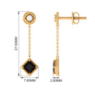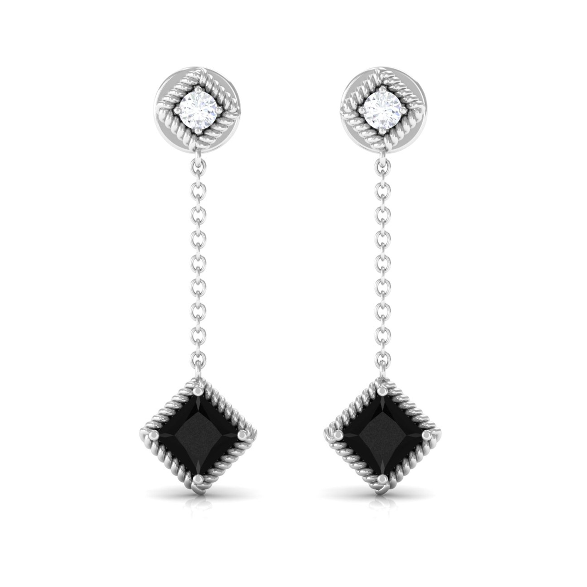 Grab attention with every movement in these Black Onyx Dangle Earrings, a striking combination of bold elegance and intricate design. These Dangle Drop Earrings feature a stunning 5 mm Princess Cut Black Onyx set in Prong Setting, suspended delicately through a long, elegant chain and dangling from a sparkling Round Diamond. Both stones are framed diagonally in a Twisted Rope design, adding texture that catches the light from every angle. The Screw Back Closure ensures a secure and comfortable fit, so you can wear them with confidence all day and night. Perfectly handcrafted, these Chain Dangle Earrings offer a modern take on classic sophistication, making them ideal for adding a touch of glamour to both casual and formal looks. Whether you are dressing up for a special event or simply want to elevate your everyday style, these Black Onyx Diamond Earrings will instantly transform your outfit. Presented in a signature jewelry box, these Black and White Earrings are ready to gift for birthdays, anniversaries or any occasion that deserves something truly special.