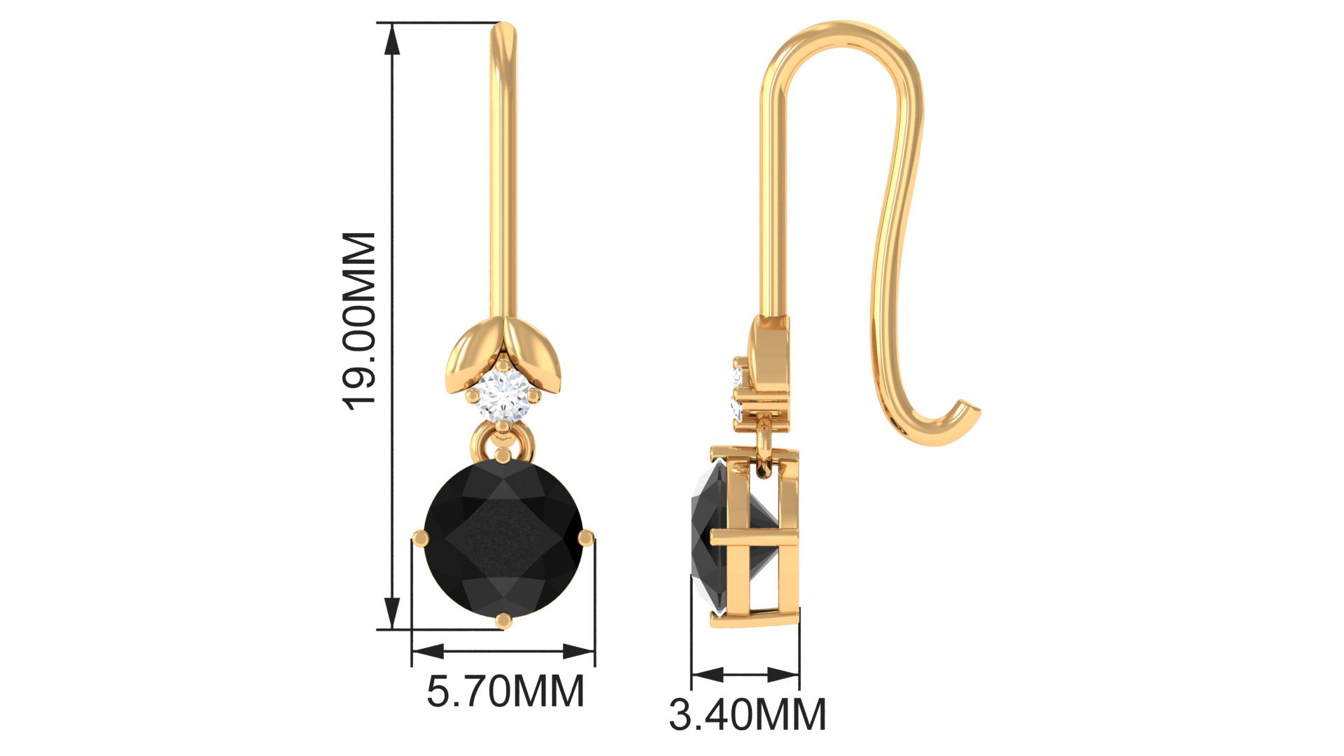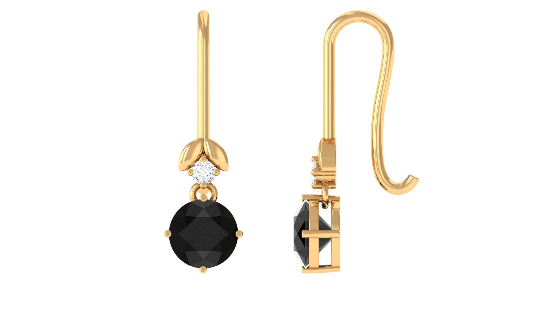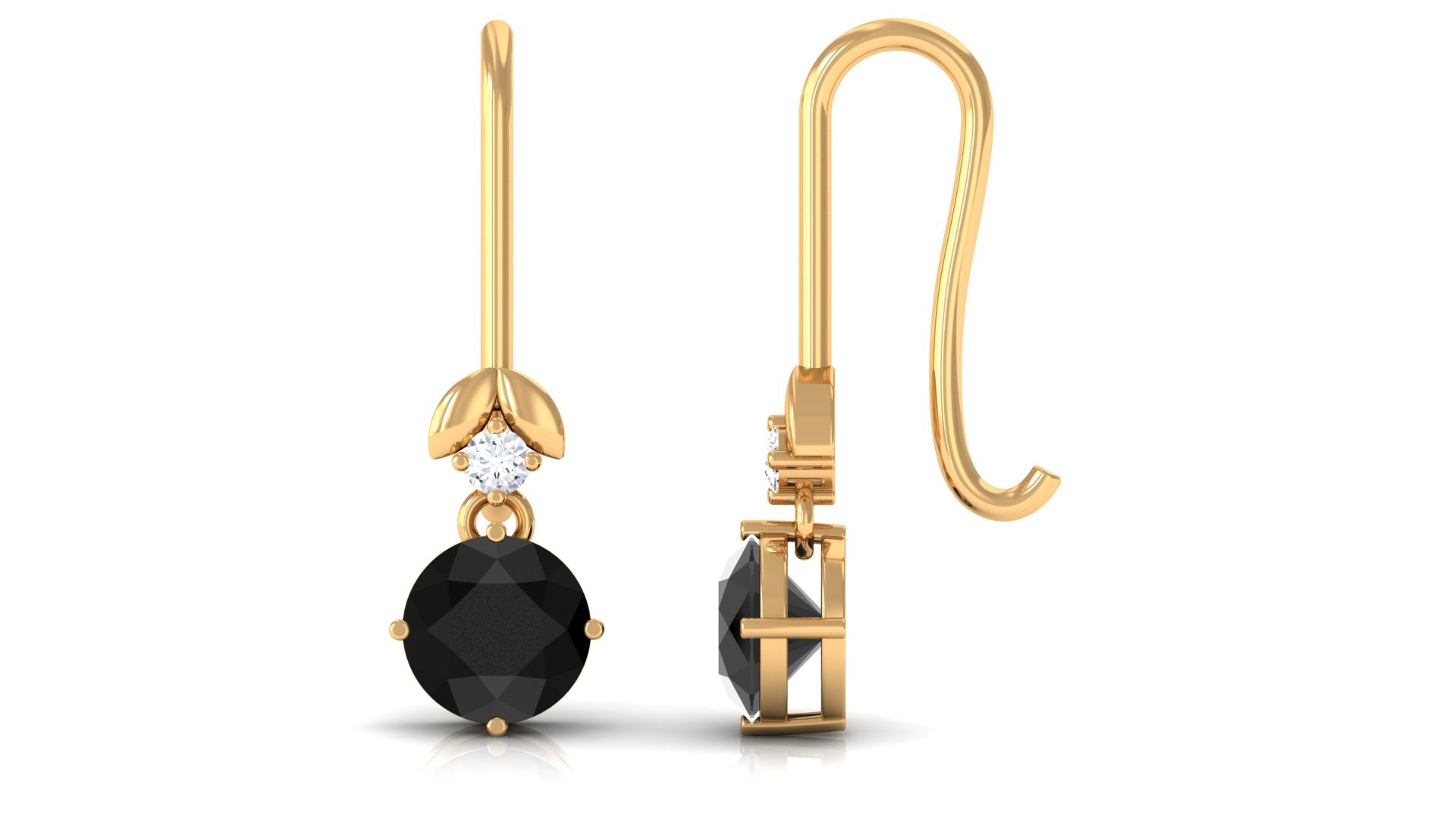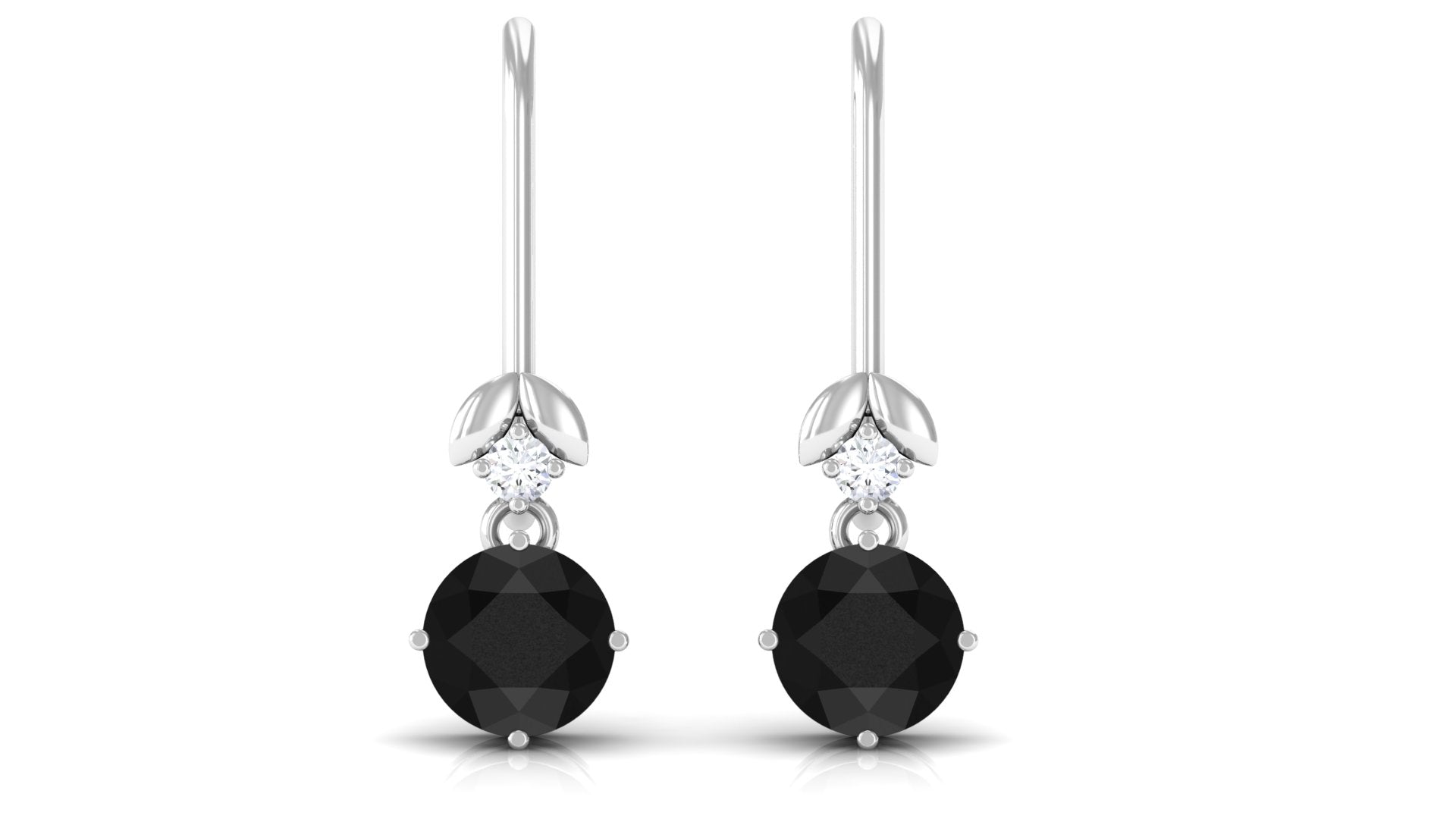 Natural Black Onyx Diamond Drop Earrings with Fish Hook