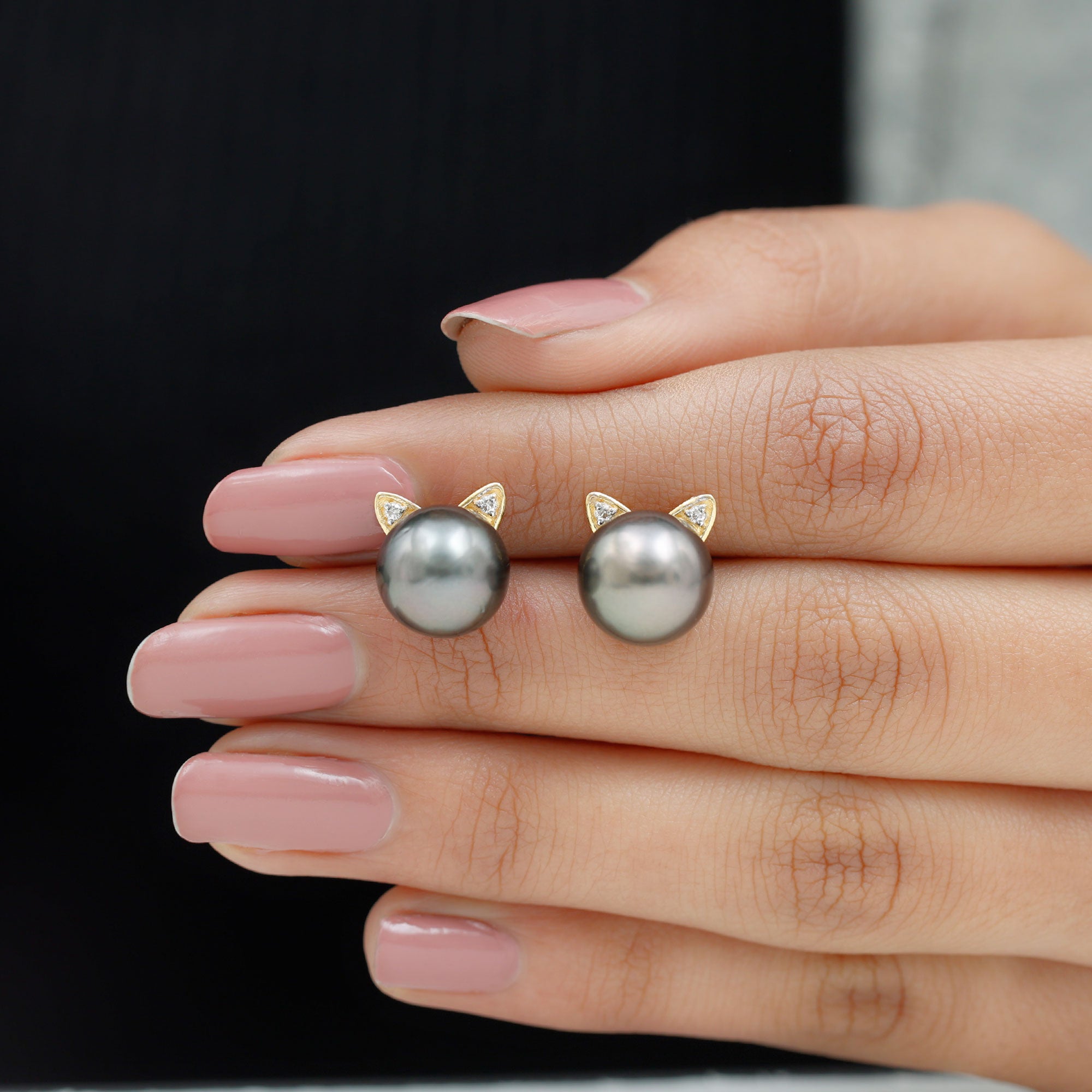 Nothing beats a pair of earrings that instantly make you smile, and these Cat Stud Earrings were made to do exactly that. With a fun little twist on everyday style, they bring a playful touch to any outfit. It features a 10MM Tahitian black pearl, creating the face of the cat, giving the Solitaire Stud Earrings a cute personality. Above the pearl, tiny metal cat ears stand proudly, each one decorated with small shining moissanite stones that add a gentle sparkle. Screw back posts keep the Tahitian Pearl Earrings safely in place, making them great for all-day wear. No slipping, no poking, just comfy, secure studs that stay right where you want them. They are light on the ears, too, so they are perfect for daily outfits, fun weekends, or even cozy movie nights. The playful design makes these Black Pearl Earrings a sweet pick for cat lovers, pearl lovers, or anyone who enjoys cute and unique jewelry. Lovely as a gift or an adorable treat for yourself, these Hello Kitty Earrings bring a little joy, a little sparkle, and a whole lot of cuteness to every moment.