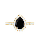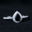 Natural Black Spinel Pear Shaped Engagement Ring with Diamond Halo
