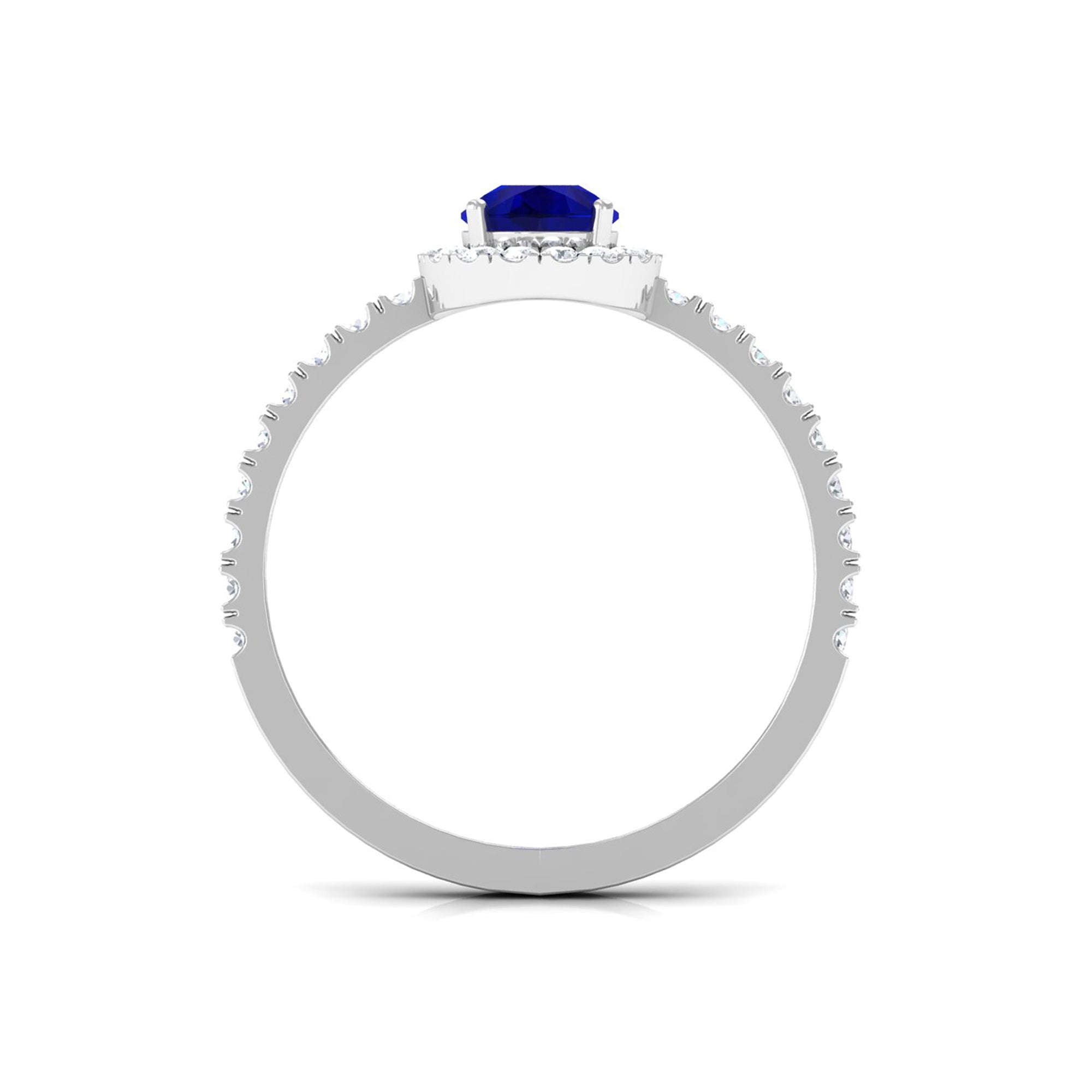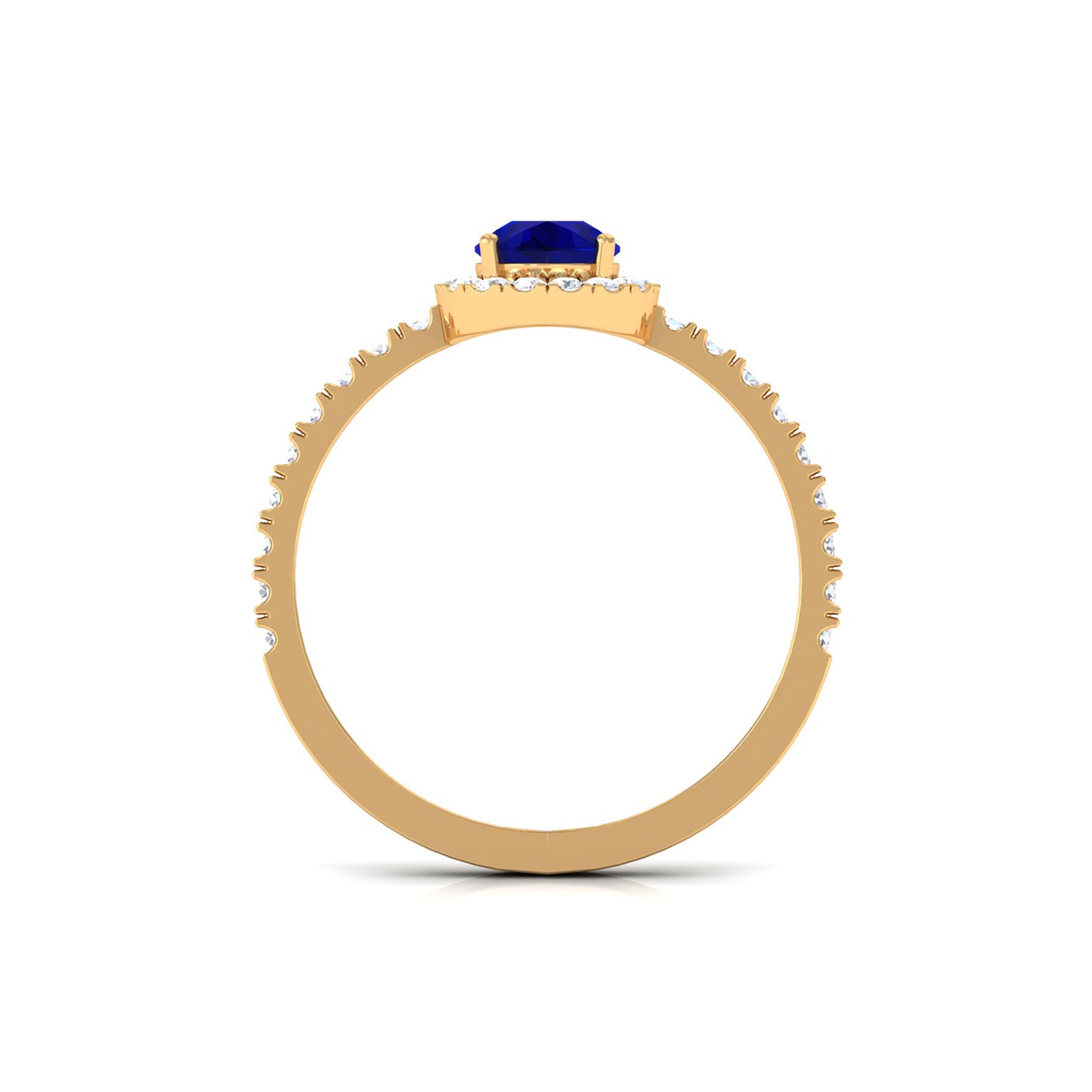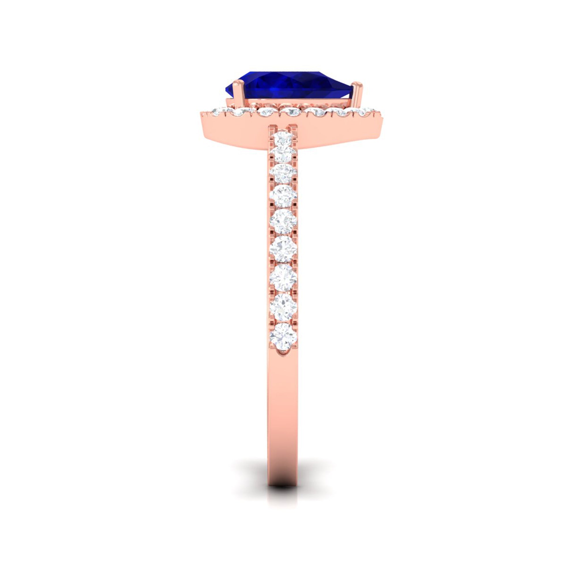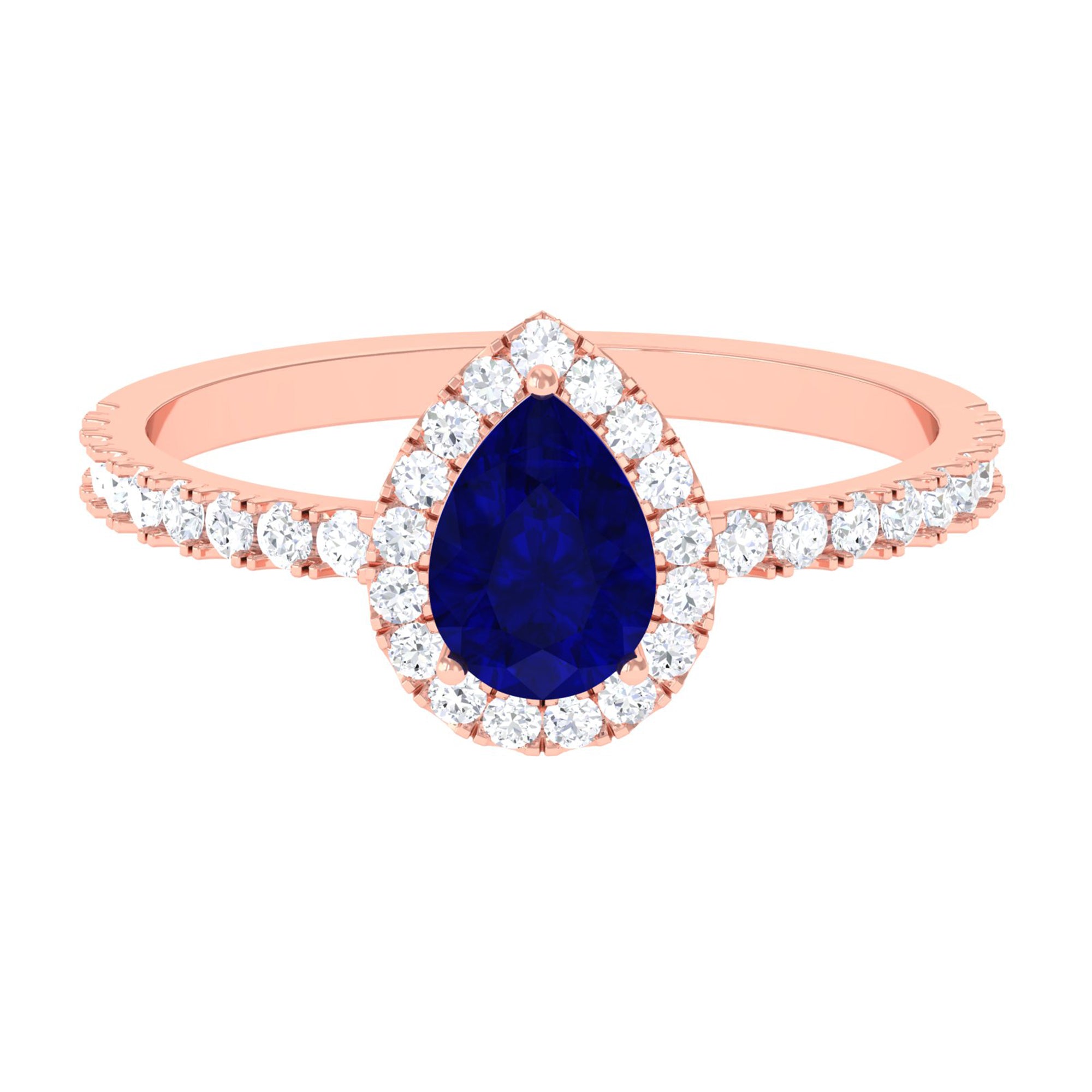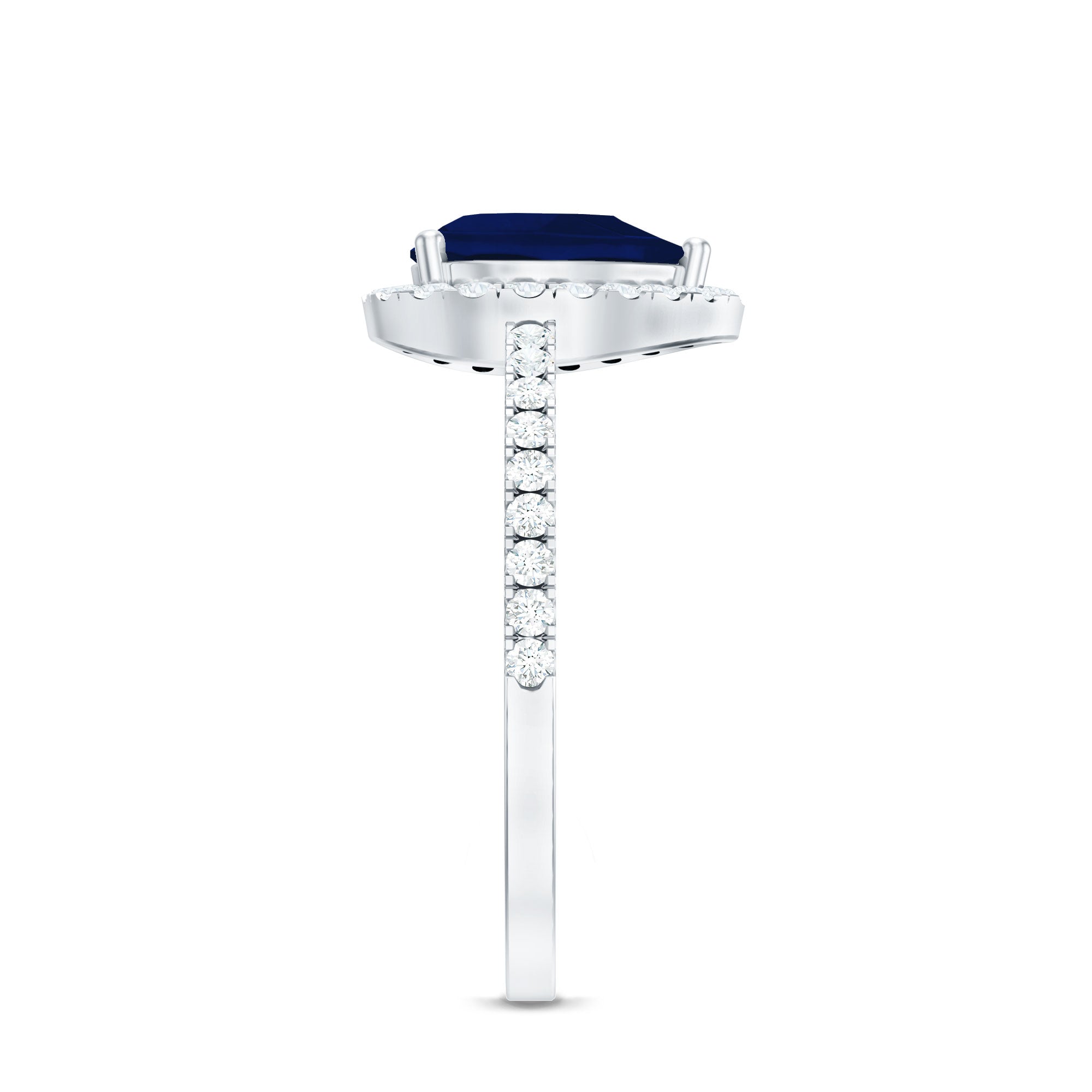 Embark the journey of your life with this Teardrop Engagement Ring adorned with Pear Cut Blue Sapphire, accentuated by and Round Shape Diamond Halo. This Blue Sapphire Engagement Ring will be an adorable piece for your lady that she will adore a lot. Fabulous and impressive Blue Sapphire Teardrop Ring is a perfect present.