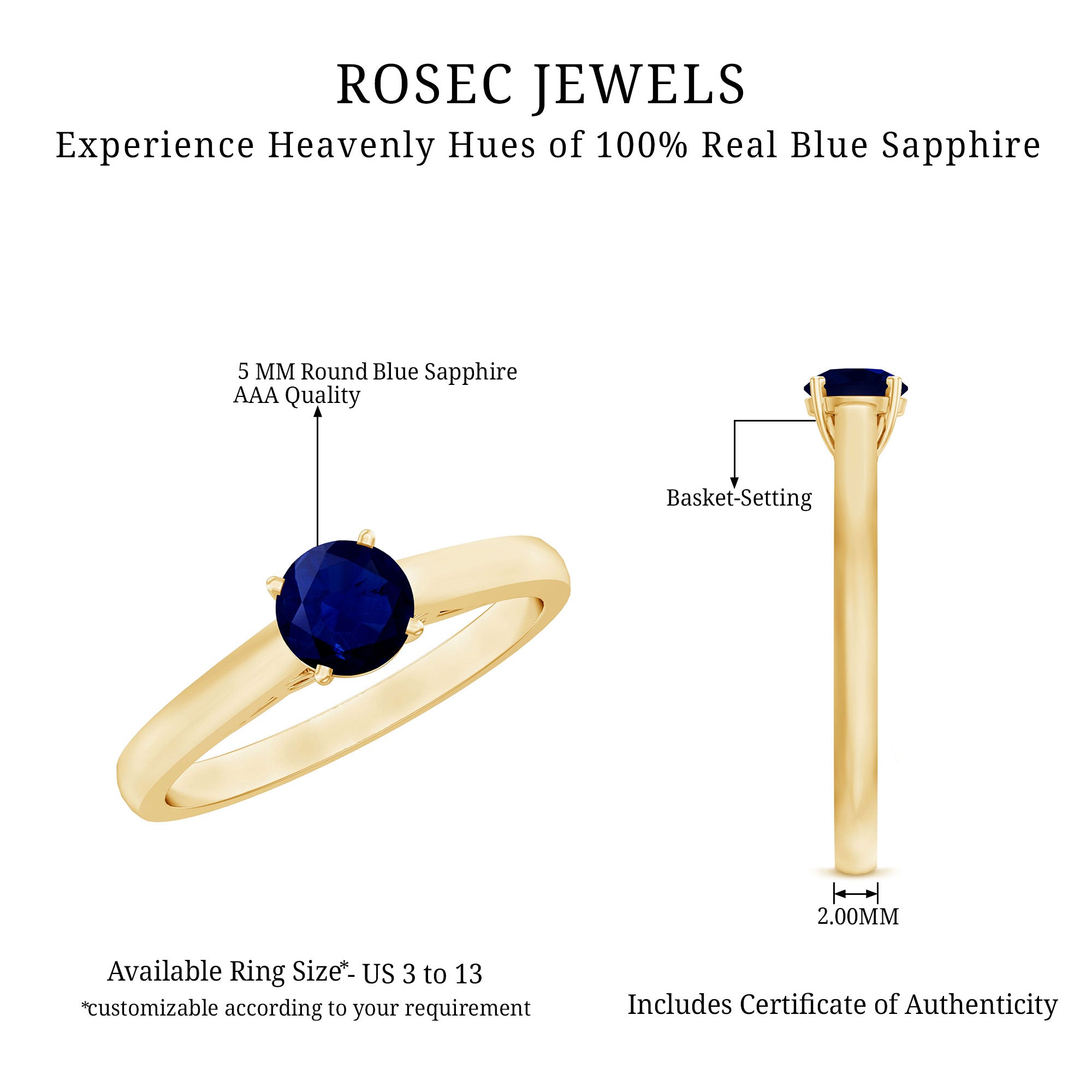 Embrace the allure with this simple yet elegant stunning Solitaire Ring adorned with a Round Shape Blue Sapphire gemstone set in Basket Setting. A perfect gifting option for September born people.