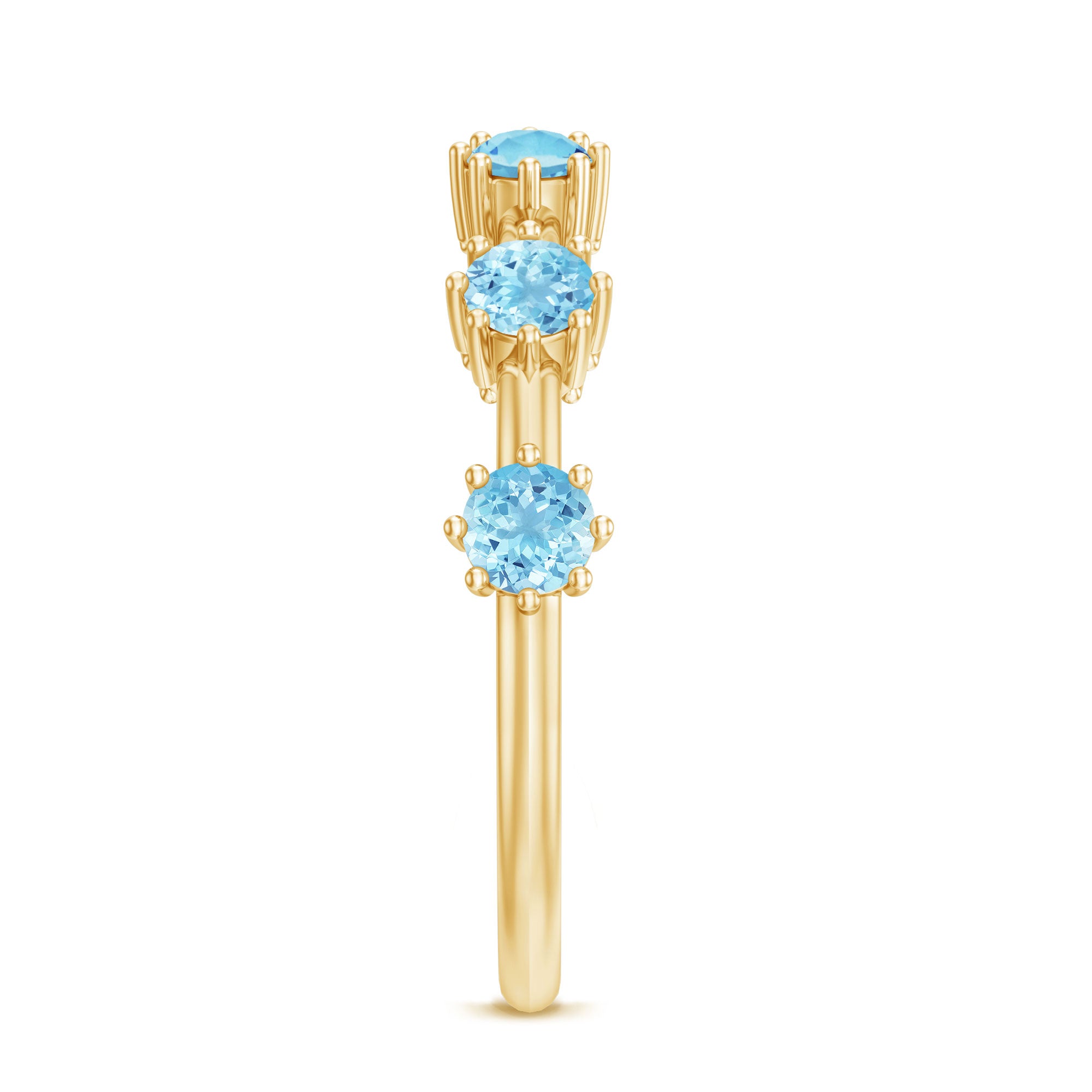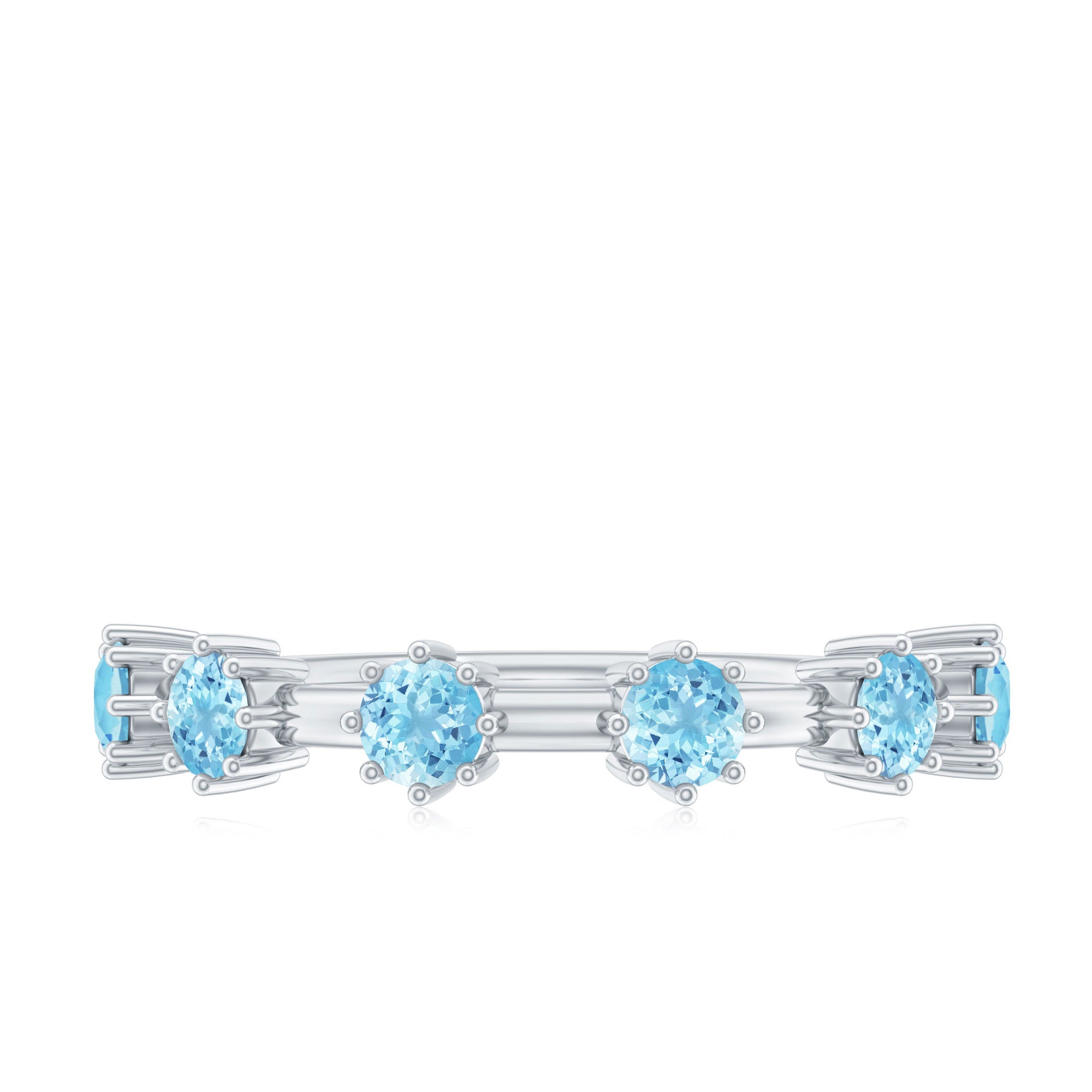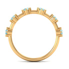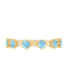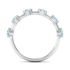 Show your love and commitment with this beautiful Aquamarine Stackable Ring, a perfect piece to symbolize an everlasting bond. This Minimalist Ring features sparkling 4 MM round cut aquamarine stones set securely in 8-prong setting, evenly spaced across the half band. The slim and simple band allows the stones to shine brightly, making it an ideal choice for stacking with other rings or wearing alone for a delicate look. Aquamarine, the birthstone for March, is known for its calming blue hue and is often associated with loyalty, clarity, and serenity, making this Half Eternity Ring not only a beautiful piece of jewelry but also a meaningful symbol of love and harmony. Perfect as a wedding, anniversary, or promise ring, this Aquamarine Eternity Ring is a thoughtful gift for your partner or a meaningful addition to your own jewelry collection. Its lightweight design makes it comfortable for daily wear, while the blue stones catch the light beautifully with every movement.
